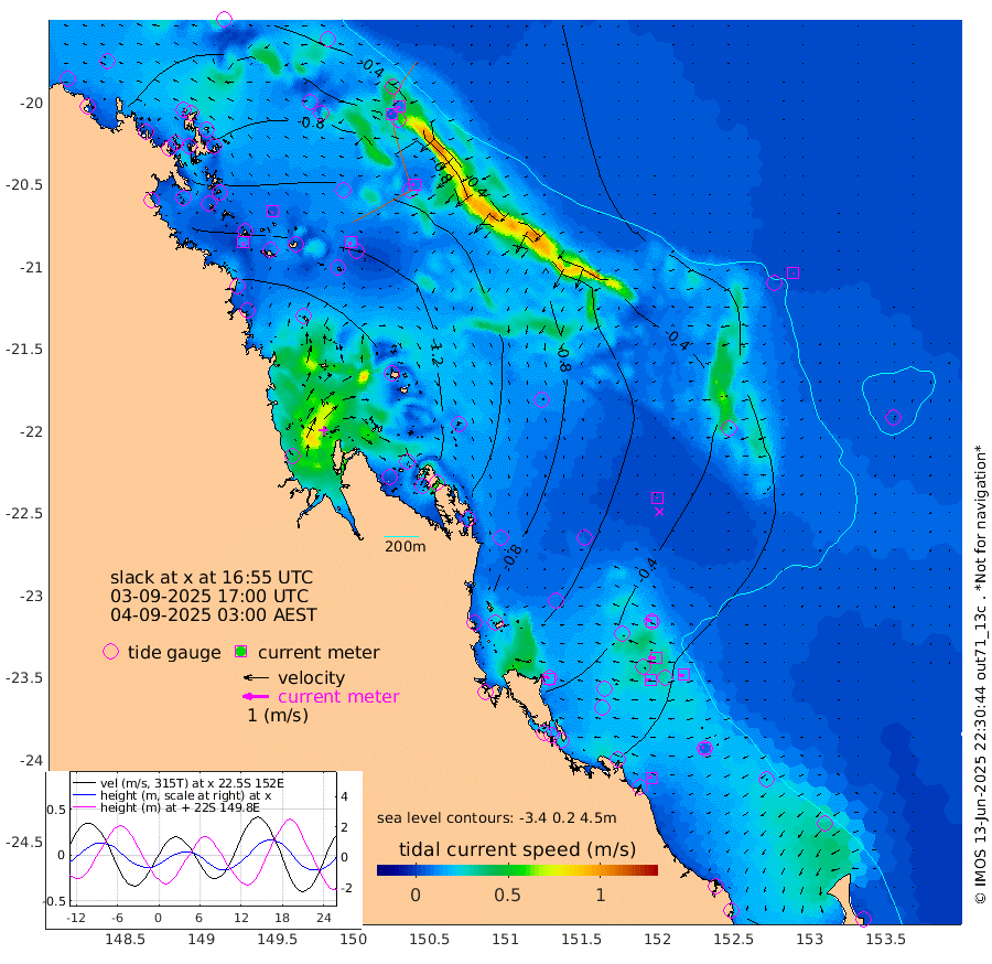 12cm/s 151T +10cm/s rms + 2cm/s 5T. Brampton I 18m 4cm/s -152T +9cm/s rms + 6cm/s 66T. Wigton I 38m 13cm/s -149T +7cm/s rms + 8cm/s 141T. Tern I 47m 9cm/s -123T +7cm/s rms + 12cm/s 54T. N Bugatti Rf 64m 6cm/s -54T +3cm/s rms + 13cm/s 178T. W Bugatti Rf 70m 10cm/s -118T +3cm/s rms + 3cm/s -130T. Creal Rf 69m 21cm/s -65T +7cm/s rms + 4cm/s 2T. North Rf 62m 18cm/s -59T +9cm/s rms + 2cm/s -56T. Cape Capricorn 26m 8cm/s -78T +5cm/s rms + 3cm/s 166T. L Musgrave I 42m 12cm/s -80T +9cm/s rms + 1cm/s -142T. Round Hill Hd 26m 2cm/s -133T +41cm/s rms + 48cm/s 116T. GBRELR 305m 2cm/s -177T +7cm/s rms + 6cm/s 123T. GBRCCH 92m 30cm/s -86T +8cm/s rms + 3cm/s -33T. GBRHIN 45m 21cm/s -91T +4cm/s rms + 2cm/s 41T. GBRHIS 46m 18cm/s -104T +16cm/s rms + 4cm/s -22T. GBROTE 59m -93cm Bell Cay -65cm Holbourne I -136cm Tern I -70cm Bugatti Rf -97cm Creal Rf -54cm White Tip I -38cm North Rf -50cm Rundle I -18cm L Musgrave I -22cm Saumarez Reef -51cm Kennedy Reef -44cm Unnamed Reef No. 2 -63cm Abbot Point -70cm Bowen -88cm Tideway Reef -80cm Hayman Island -117cm Square Reef -77cm Double Bay -90cm Molle Island -94cm Cid Harbour -78cm Hook Island -88cm Border Island -89cm Haslewood Island -96cm Shute Harbour -119cm Thomas Island -121cm Credlin Reef -120cm East Repulse Island -119cm Blacksmith Island -131cm Laguna Quays -120cm Carlisle Island (Off) -128cm St. Bees Island -120cm Scawfell Island -140cm Penrith Island -152cm Mackay Outer Harbour -161cm Hay Point -172cm Prudhoe Island -151cm Middle Island (Percy Isles) -78cm Gannet Cay -18cm Elusive Reef -190cm Mcewin Islet -158cm Mumford Island -161cm Osborn Island -159cm Marquis Island -145cm Reef Point -114cm High Peak Island -99cm Port Clinton -100cm Peaked Island -35cm Karamea Bank -65cm Johnson Patch - NW -77cm Rosslyn Bay -79cm Middle Island (Keppel Isles) -88cm Port Alma -31cm Heron Island -39cm One Tree Islet -41cm Polmaise Reef -45cm Tryon Island -34cm Rock Cod Shoal -48cm Gatcombe Head -59cm Gladstone -51cm South Trees (Storm Surge) -30cm Clews Point -24cm Round Hill Head -15cm Lady Elliot Island -12cm Breaksea Spit -21cm Bundaberg (Burnett Heads) -19cm Elliot Heads -14cm Waddy Point (Fraser Island)
