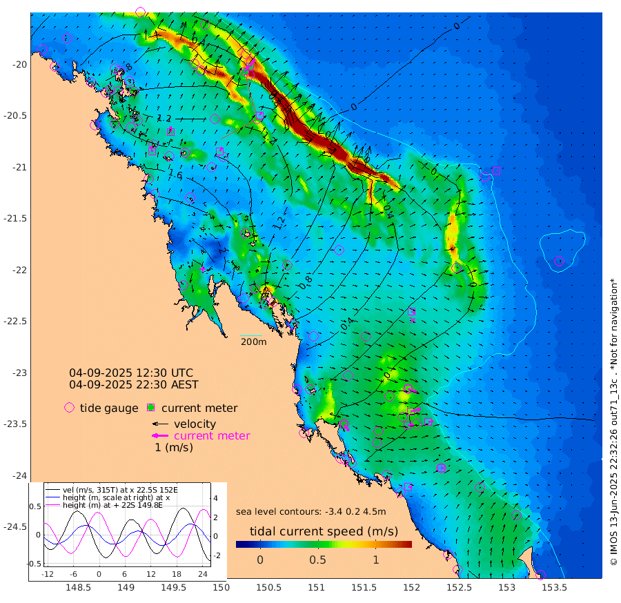 32cm/s -10T +10cm/s rms + 2cm/s 5T. Brampton I 18m 35cm/s 0T +9cm/s rms + 6cm/s 66T. Wigton I 38m 27cm/s 31T +7cm/s rms + 8cm/s 141T. Tern I 47m 55cm/s 27T +7cm/s rms + 12cm/s 54T. N Bugatti Rf 64m 46cm/s 35T +3cm/s rms + 13cm/s 178T. W Bugatti Rf 70m 23cm/s 36T +3cm/s rms + 3cm/s -130T. Creal Rf 69m 60cm/s 110T +7cm/s rms + 4cm/s 2T. North Rf 62m 50cm/s 142T +9cm/s rms + 2cm/s -56T. Cape Capricorn 26m 16cm/s 91T +5cm/s rms + 3cm/s 166T. L Musgrave I 42m 23cm/s 115T +9cm/s rms + 1cm/s -142T. Round Hill Hd 26m 6cm/s 66T +41cm/s rms + 48cm/s 116T. GBRELR 305m 25cm/s 117T +7cm/s rms + 6cm/s 123T. GBRCCH 92m 64cm/s 75T +8cm/s rms + 3cm/s -33T. GBRHIN 45m 38cm/s 90T +4cm/s rms + 2cm/s 41T. GBRHIS 46m 29cm/s 77T +16cm/s rms + 4cm/s -22T. GBROTE 59m 74cm Bell Cay 71cm Holbourne I 146cm Tern I 74cm Bugatti Rf 106cm Creal Rf 50cm White Tip I -4cm North Rf -7cm Rundle I -19cm L Musgrave I 8cm Saumarez Reef 43cm Kennedy Reef 30cm Unnamed Reef No. 2 64cm Abbot Point 75cm Bowen 103cm Tideway Reef 84cm Hayman Island 138cm Square Reef 90cm Double Bay 109cm Molle Island 108cm Cid Harbour 92cm Hook Island 107cm Border Island 111cm Haslewood Island 111cm Shute Harbour 139cm Thomas Island 136cm Credlin Reef 142cm East Repulse Island 146cm Blacksmith Island 166cm Laguna Quays 145cm Carlisle Island (Off) 166cm St. Bees Island 145cm Scawfell Island 151cm Penrith Island 177cm Mackay Outer Harbour 183cm Hay Point 190cm Prudhoe Island 146cm Middle Island (Percy Isles) 55cm Gannet Cay -1cm Elusive Reef 248cm Mcewin Islet 132cm Mumford Island 144cm Osborn Island 149cm Marquis Island 128cm Reef Point 95cm High Peak Island 58cm Port Clinton 51cm Peaked Island -15cm Karamea Bank 18cm Johnson Patch - NW 19cm Rosslyn Bay 18cm Middle Island (Keppel Isles) 32cm Port Alma -12cm Heron Island -15cm One Tree Islet -12cm Polmaise Reef -4cm Tryon Island -21cm Rock Cod Shoal -3cm Gatcombe Head 8cm Gladstone -4cm South Trees (Storm Surge) -27cm Clews Point -22cm Round Hill Head -21cm Lady Elliot Island -26cm Breaksea Spit -22cm Bundaberg (Burnett Heads) -22cm Elliot Heads -19cm Waddy Point (Fraser Island)