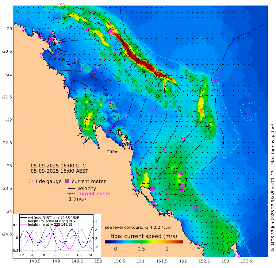 18cm/s -178T +10cm/s rms + 2cm/s 5T. Brampton I 18m 19cm/s -167T +9cm/s rms + 6cm/s 66T. Wigton I 38m 25cm/s -142T +7cm/s rms + 8cm/s 141T. Tern I 47m 37cm/s -144T +7cm/s rms + 12cm/s 54T. N Bugatti Rf 64m 30cm/s -138T +3cm/s rms + 13cm/s 178T. W Bugatti Rf 70m 19cm/s -127T +3cm/s rms + 3cm/s -130T. Creal Rf 69m 59cm/s -72T +7cm/s rms + 4cm/s 2T. North Rf 62m 44cm/s -40T +9cm/s rms + 2cm/s -56T. Cape Capricorn 26m 17cm/s -100T +5cm/s rms + 3cm/s 166T. L Musgrave I 42m 21cm/s -67T +9cm/s rms + 1cm/s -142T. Round Hill Hd 26m 7cm/s -84T +41cm/s rms + 48cm/s 116T. GBRELR 305m 26cm/s -62T +7cm/s rms + 6cm/s 123T. GBRCCH 92m 60cm/s -97T +8cm/s rms + 3cm/s -33T. GBRHIN 45m 39cm/s -91T +4cm/s rms + 2cm/s 41T. GBRHIS 46m 34cm/s -97T +16cm/s rms + 4cm/s -22T. GBROTE 59m -85cm Bell Cay -60cm Holbourne I -157cm Tern I -67cm Bugatti Rf -106cm Creal Rf -38cm White Tip I 6cm North Rf -3cm Rundle I 28cm L Musgrave I 6cm Saumarez Reef -39cm Kennedy Reef -17cm Unnamed Reef No. 2 -56cm Abbot Point -67cm Bowen -92cm Tideway Reef -80cm Hayman Island -131cm Square Reef -79cm Double Bay -93cm Molle Island -107cm Cid Harbour -82cm Hook Island -101cm Border Island -107cm Haslewood Island -106cm Shute Harbour -137cm Thomas Island -137cm Credlin Reef -144cm East Repulse Island -153cm Blacksmith Island -165cm Laguna Quays -148cm Carlisle Island (Off) -182cm St. Bees Island -161cm Scawfell Island -163cm Penrith Island -185cm Mackay Outer Harbour -195cm Hay Point -199cm Prudhoe Island -165cm Middle Island (Percy Isles) -68cm Gannet Cay 22cm Elusive Reef -267cm Mcewin Islet -171cm Mumford Island -185cm Osborn Island -193cm Marquis Island -164cm Reef Point -115cm High Peak Island -77cm Port Clinton -71cm Peaked Island 16cm Karamea Bank -25cm Johnson Patch - NW -39cm Rosslyn Bay -37cm Middle Island (Keppel Isles) -60cm Port Alma 14cm Heron Island 20cm One Tree Islet 7cm Polmaise Reef 4cm Tryon Island 19cm Rock Cod Shoal -9cm Gatcombe Head -27cm Gladstone -12cm South Trees (Storm Surge) 23cm Clews Point 22cm Round Hill Head 33cm Lady Elliot Island 41cm Breaksea Spit 19cm Bundaberg (Burnett Heads) 16cm Elliot Heads 34cm Waddy Point (Fraser Island)
