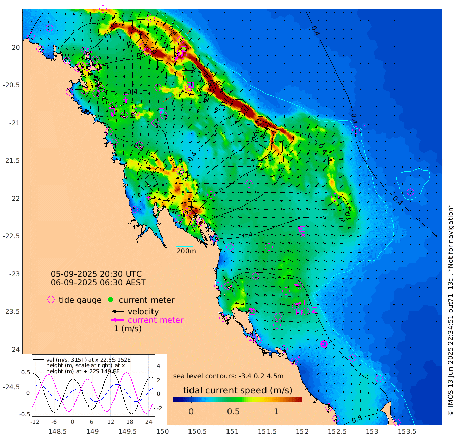 47cm/s 167T +10cm/s rms + 2cm/s 5T. Brampton I 18m 50cm/s 171T +9cm/s rms + 6cm/s 66T. Wigton I 38m 25cm/s -157T +7cm/s rms + 8cm/s 141T. Tern I 47m 67cm/s -162T +7cm/s rms + 12cm/s 54T. N Bugatti Rf 64m 76cm/s -149T +3cm/s rms + 13cm/s 178T. W Bugatti Rf 70m 31cm/s -166T +3cm/s rms + 3cm/s -130T. Creal Rf 69m 44cm/s -77T +7cm/s rms + 4cm/s 2T. North Rf 62m 43cm/s -34T +9cm/s rms + 2cm/s -56T. Cape Capricorn 26m 9cm/s -91T +5cm/s rms + 3cm/s 166T. L Musgrave I 42m 12cm/s -74T +9cm/s rms + 1cm/s -142T. Round Hill Hd 26m 7cm/s -158T +41cm/s rms + 48cm/s 116T. GBRELR 305m 29cm/s -74T +7cm/s rms + 6cm/s 123T. GBRCCH 92m 53cm/s -110T +8cm/s rms + 3cm/s -33T. GBRHIN 45m 29cm/s -95T +4cm/s rms + 2cm/s 41T. GBRHIS 46m 29cm/s -133T +16cm/s rms + 4cm/s -22T. GBROTE 59m 16cm Bell Cay 16cm Holbourne I -32cm Tern I 2cm Bugatti Rf -18cm Creal Rf 18cm White Tip I 60cm North Rf 82cm Rundle I 51cm L Musgrave I 37cm Saumarez Reef 33cm Kennedy Reef 36cm Unnamed Reef No. 2 24cm Abbot Point 15cm Bowen -13cm Tideway Reef 10cm Hayman Island -26cm Square Reef 5cm Double Bay -19cm Molle Island -10cm Cid Harbour -6cm Hook Island -18cm Border Island -20cm Haslewood Island -16cm Shute Harbour -43cm Thomas Island -26cm Credlin Reef -37cm East Repulse Island -39cm Blacksmith Island -63cm Laguna Quays -35cm Carlisle Island (Off) -35cm St. Bees Island -28cm Scawfell Island -33cm Penrith Island -64cm Mackay Outer Harbour -64cm Hay Point -65cm Prudhoe Island -26cm Middle Island (Percy Isles) 21cm Gannet Cay 34cm Elusive Reef -142cm Mcewin Islet 14cm Mumford Island -7cm Osborn Island -7cm Marquis Island 1cm Reef Point 12cm High Peak Island 44cm Port Clinton 61cm Peaked Island 69cm Karamea Bank 59cm Johnson Patch - NW 78cm Rosslyn Bay 83cm Middle Island (Keppel Isles) 78cm Port Alma 64cm Heron Island 69cm One Tree Islet 73cm Polmaise Reef 60cm Tryon Island 80cm Rock Cod Shoal 72cm Gatcombe Head 74cm Gladstone 80cm South Trees (Storm Surge) 78cm Clews Point 66cm Round Hill Head 49cm Lady Elliot Island 47cm Breaksea Spit 72cm Bundaberg (Burnett Heads) 79cm Elliot Heads 32cm Waddy Point (Fraser Island)