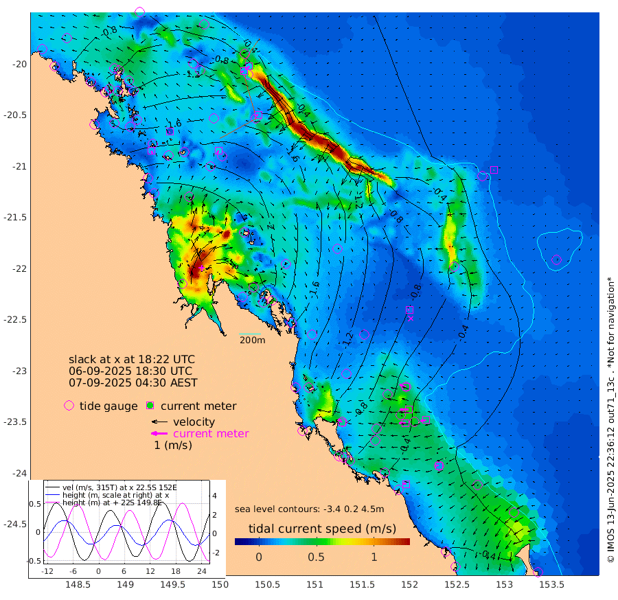 17cm/s 153T +10cm/s rms + 2cm/s 5T. Brampton I 18m 5cm/s -138T +9cm/s rms + 6cm/s 66T. Wigton I 38m 23cm/s -147T +7cm/s rms + 8cm/s 141T. Tern I 47m 21cm/s -134T +7cm/s rms + 12cm/s 54T. N Bugatti Rf 64m 15cm/s -116T +3cm/s rms + 13cm/s 178T. W Bugatti Rf 70m 17cm/s -112T +3cm/s rms + 3cm/s -130T. Creal Rf 69m 43cm/s -69T +7cm/s rms + 4cm/s 2T. North Rf 62m 32cm/s -51T +9cm/s rms + 2cm/s -56T. Cape Capricorn 26m 15cm/s -89T +5cm/s rms + 3cm/s 166T. L Musgrave I 42m 21cm/s -79T +9cm/s rms + 1cm/s -142T. Round Hill Hd 26m 5cm/s -119T +41cm/s rms + 48cm/s 116T. GBRELR 305m 8cm/s -82T +7cm/s rms + 6cm/s 123T. GBRCCH 92m 55cm/s -91T +8cm/s rms + 3cm/s -33T. GBRHIN 45m 38cm/s -90T +4cm/s rms + 2cm/s 41T. GBRHIS 46m 35cm/s -99T +16cm/s rms + 4cm/s -22T. GBROTE 59m -151cm Bell Cay -85cm Holbourne I -217cm Tern I -103cm Bugatti Rf -151cm Creal Rf -71cm White Tip I -57cm North Rf -79cm Rundle I -23cm L Musgrave I -22cm Saumarez Reef -66cm Kennedy Reef -51cm Unnamed Reef No. 2 -81cm Abbot Point -94cm Bowen -122cm Tideway Reef -115cm Hayman Island -168cm Square Reef -103cm Double Bay -135cm Molle Island -147cm Cid Harbour -114cm Hook Island -132cm Border Island -142cm Haslewood Island -142cm Shute Harbour -183cm Thomas Island -189cm Credlin Reef -197cm East Repulse Island -198cm Blacksmith Island -211cm Laguna Quays -200cm Carlisle Island (Off) -222cm St. Bees Island -205cm Scawfell Island -229cm Penrith Island -248cm Mackay Outer Harbour -265cm Hay Point -264cm Prudhoe Island -250cm Middle Island (Percy Isles) -134cm Gannet Cay -15cm Elusive Reef -345cm Mcewin Islet -258cm Mumford Island -283cm Osborn Island -292cm Marquis Island -257cm Reef Point -192cm High Peak Island -162cm Port Clinton -149cm Peaked Island -49cm Karamea Bank -105cm Johnson Patch - NW -127cm Rosslyn Bay -125cm Middle Island (Keppel Isles) -153cm Port Alma -50cm Heron Island -47cm One Tree Islet -59cm Polmaise Reef -72cm Tryon Island -53cm Rock Cod Shoal -83cm Gatcombe Head -106cm Gladstone -89cm South Trees (Storm Surge) -40cm Clews Point -38cm Round Hill Head -18cm Lady Elliot Island -13cm Breaksea Spit -38cm Bundaberg (Burnett Heads) -41cm Elliot Heads -13cm Waddy Point (Fraser Island)