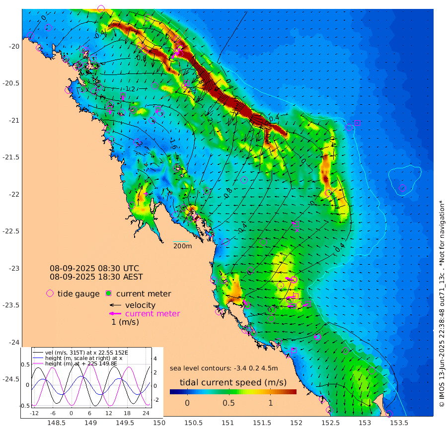 42cm/s 169T +10cm/s rms + 2cm/s 5T. Brampton I 18m 43cm/s 178T +9cm/s rms + 6cm/s 66T. Wigton I 38m 37cm/s -151T +7cm/s rms + 8cm/s 141T. Tern I 47m 70cm/s -155T +7cm/s rms + 12cm/s 54T. N Bugatti Rf 64m 74cm/s -147T +3cm/s rms + 13cm/s 178T. W Bugatti Rf 70m 34cm/s -148T +3cm/s rms + 3cm/s -130T. Creal Rf 69m 73cm/s -76T +7cm/s rms + 4cm/s 2T. North Rf 62m 60cm/s -38T +9cm/s rms + 2cm/s -56T. Cape Capricorn 26m 25cm/s -96T +5cm/s rms + 3cm/s 166T. L Musgrave I 42m 24cm/s -69T +9cm/s rms + 1cm/s -142T. Round Hill Hd 26m 8cm/s -117T +41cm/s rms + 48cm/s 116T. GBRELR 305m 41cm/s -69T +7cm/s rms + 6cm/s 123T. GBRCCH 92m 81cm/s -101T +8cm/s rms + 3cm/s -33T. GBRHIN 45m 51cm/s -93T +4cm/s rms + 2cm/s 41T. GBRHIS 46m 46cm/s -111T +16cm/s rms + 4cm/s -22T. GBROTE 59m -60cm Bell Cay -21cm Holbourne I -145cm Tern I -43cm Bugatti Rf -91cm Creal Rf -7cm White Tip I 44cm North Rf 47cm Rundle I 58cm L Musgrave I 44cm Saumarez Reef 1cm Kennedy Reef 22cm Unnamed Reef No. 2 -15cm Abbot Point -31cm Bowen -68cm Tideway Reef -48cm Hayman Island -102cm Square Reef -46cm Double Bay -73cm Molle Island -90cm Cid Harbour -56cm Hook Island -88cm Border Island -95cm Haslewood Island -87cm Shute Harbour -132cm Thomas Island -125cm Credlin Reef -146cm East Repulse Island -154cm Blacksmith Island -172cm Laguna Quays -146cm Carlisle Island (Off) -178cm St. Bees Island -158cm Scawfell Island -155cm Penrith Island -194cm Mackay Outer Harbour -204cm Hay Point -191cm Prudhoe Island -153cm Middle Island (Percy Isles) -50cm Gannet Cay 48cm Elusive Reef -345cm Mcewin Islet -138cm Mumford Island -184cm Osborn Island -196cm Marquis Island -161cm Reef Point -95cm High Peak Island -37cm Port Clinton -11cm Peaked Island 58cm Karamea Bank 18cm Johnson Patch - NW 10cm Rosslyn Bay 18cm Middle Island (Keppel Isles) -13cm Port Alma 52cm Heron Island 66cm One Tree Islet 52cm Polmaise Reef 38cm Tryon Island 61cm Rock Cod Shoal 33cm Gatcombe Head 14cm Gladstone 32cm South Trees (Storm Surge) 69cm Clews Point 58cm Round Hill Head 63cm Lady Elliot Island 65cm Breaksea Spit 59cm Bundaberg (Burnett Heads) 58cm Elliot Heads 52cm Waddy Point (Fraser Island)