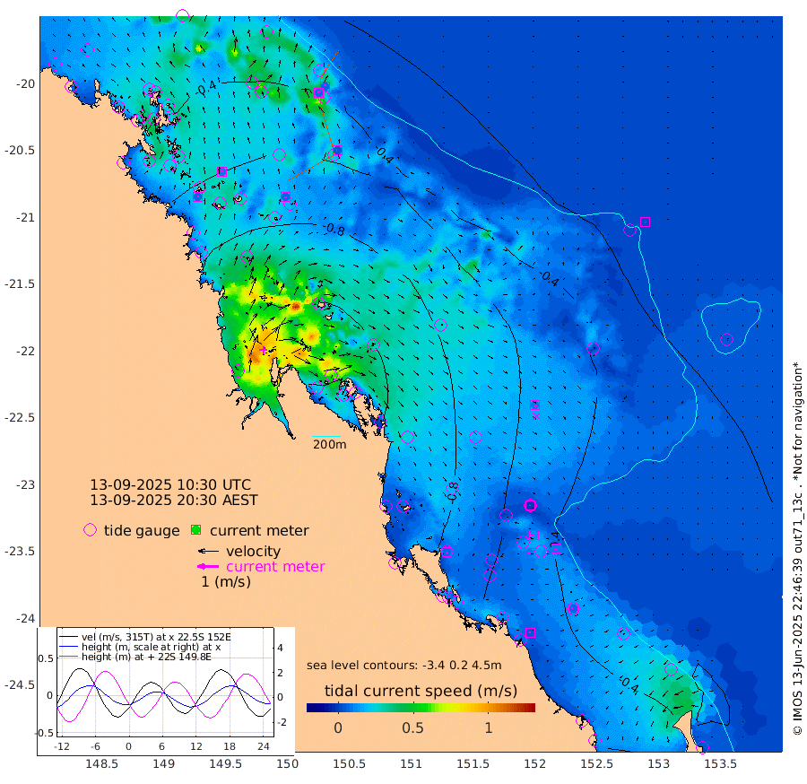 7cm/s 66T +10cm/s rms + 2cm/s 5T. Brampton I 18m 10cm/s -4T +9cm/s rms + 6cm/s 66T. Wigton I 38m 6cm/s -174T +7cm/s rms + 8cm/s 141T. Tern I 47m 8cm/s 0T +7cm/s rms + 12cm/s 54T. N Bugatti Rf 64m 8cm/s 20T +3cm/s rms + 13cm/s 178T. W Bugatti Rf 70m 4cm/s -105T +3cm/s rms + 3cm/s -130T. Creal Rf 69m 1cm/s -24T +7cm/s rms + 4cm/s 2T. North Rf 62m 8cm/s -161T +9cm/s rms + 2cm/s -56T. Cape Capricorn 26m 7cm/s -73T +5cm/s rms + 3cm/s 166T. L Musgrave I 42m 5cm/s -86T +9cm/s rms + 1cm/s -142T. Round Hill Hd 26m 2cm/s 148T +41cm/s rms + 48cm/s 116T. GBRELR 305m 10cm/s 139T +7cm/s rms + 6cm/s 123T. GBRCCH 92m 11cm/s -71T +8cm/s rms + 3cm/s -33T. GBRHIN 45m 10cm/s -92T +4cm/s rms + 2cm/s 41T. GBRHIS 46m 10cm/s -94T +16cm/s rms + 4cm/s -22T. GBROTE 59m -75cm Bell Cay -25cm Holbourne I -85cm Tern I -35cm Bugatti Rf -55cm Creal Rf -22cm White Tip I -46cm North Rf -64cm Rundle I -28cm L Musgrave I -3cm Saumarez Reef -17cm Kennedy Reef -19cm Unnamed Reef No. 2 -19cm Abbot Point -24cm Bowen -31cm Tideway Reef -33cm Hayman Island -37cm Square Reef -46cm Double Bay -38cm Molle Island -39cm Cid Harbour -39cm Hook Island -36cm Border Island -43cm Haslewood Island -44cm Shute Harbour -59cm Thomas Island -66cm Credlin Reef -74cm East Repulse Island -60cm Blacksmith Island -71cm Laguna Quays -79cm Carlisle Island (Off) -83cm St. Bees Island -74cm Scawfell Island -84cm Penrith Island -96cm Mackay Outer Harbour -106cm Hay Point -101cm Prudhoe Island -119cm Middle Island (Percy Isles) -79cm Gannet Cay -12cm Elusive Reef -168cm Mcewin Islet -113cm Mumford Island -133cm Osborn Island -147cm Marquis Island -125cm Reef Point -97cm High Peak Island -102cm Port Clinton -79cm Peaked Island -46cm Karamea Bank -69cm Johnson Patch - NW -88cm Rosslyn Bay -84cm Middle Island (Keppel Isles) -103cm Port Alma -44cm Heron Island -42cm One Tree Islet -50cm Polmaise Reef -49cm Tryon Island -56cm Rock Cod Shoal -66cm Gatcombe Head -81cm Gladstone -73cm South Trees (Storm Surge) -41cm Clews Point -41cm Round Hill Head -24cm Lady Elliot Island -23cm Breaksea Spit -41cm Bundaberg (Burnett Heads) -40cm Elliot Heads -20cm Waddy Point (Fraser Island)