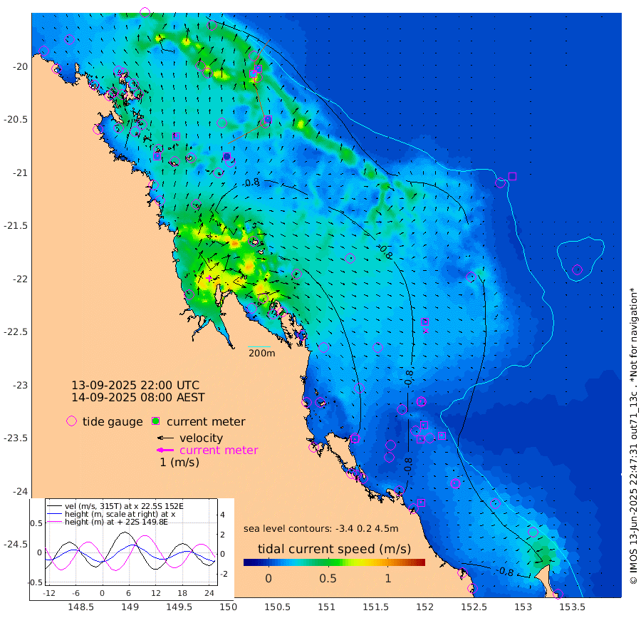 10cm/s 28T +10cm/s rms + 2cm/s 5T. Brampton I 18m 15cm/s -15T +9cm/s rms + 6cm/s 66T. Wigton I 38m 1cm/s 77T +7cm/s rms + 8cm/s 141T. Tern I 47m 10cm/s -7T +7cm/s rms + 12cm/s 54T. N Bugatti Rf 64m 20cm/s 34T +3cm/s rms + 13cm/s 178T. W Bugatti Rf 70m 7cm/s -6T +3cm/s rms + 3cm/s -130T. Creal Rf 69m 7cm/s -51T +7cm/s rms + 4cm/s 2T. North Rf 62m 4cm/s -163T +9cm/s rms + 2cm/s -56T. Cape Capricorn 26m 8cm/s -79T +5cm/s rms + 3cm/s 166T. L Musgrave I 42m 8cm/s -67T +9cm/s rms + 1cm/s -142T. Round Hill Hd 26m 1cm/s 127T +41cm/s rms + 48cm/s 116T. GBRELR 305m 10cm/s 97T +7cm/s rms + 6cm/s 123T. GBRCCH 92m 8cm/s -69T +8cm/s rms + 3cm/s -33T. GBRHIN 45m 7cm/s -74T +4cm/s rms + 2cm/s 41T. GBRHIS 46m 11cm/s -33T +16cm/s rms + 4cm/s -22T. GBROTE 59m -89cm Bell Cay -67cm Holbourne I -95cm Tern I -63cm Bugatti Rf -73cm Creal Rf -57cm White Tip I -70cm North Rf -88cm Rundle I -50cm L Musgrave I -34cm Saumarez Reef -65cm Kennedy Reef -59cm Unnamed Reef No. 2 -60cm Abbot Point -62cm Bowen -63cm Tideway Reef -67cm Hayman Island -69cm Square Reef -79cm Double Bay -79cm Molle Island -69cm Cid Harbour -73cm Hook Island -64cm Border Island -67cm Haslewood Island -71cm Shute Harbour -76cm Thomas Island -83cm Credlin Reef -86cm East Repulse Island -82cm Blacksmith Island -82cm Laguna Quays -92cm Carlisle Island (Off) -97cm St. Bees Island -79cm Scawfell Island -94cm Penrith Island -99cm Mackay Outer Harbour -106cm Hay Point -101cm Prudhoe Island -130cm Middle Island (Percy Isles) -87cm Gannet Cay -45cm Elusive Reef -138cm Mcewin Islet -119cm Mumford Island -128cm Osborn Island -138cm Marquis Island -125cm Reef Point -106cm High Peak Island -117cm Port Clinton -97cm Peaked Island -69cm Karamea Bank -95cm Johnson Patch - NW -107cm Rosslyn Bay -104cm Middle Island (Keppel Isles) -122cm Port Alma -69cm Heron Island -69cm One Tree Islet -74cm Polmaise Reef -75cm Tryon Island -78cm Rock Cod Shoal -86cm Gatcombe Head -101cm Gladstone -96cm South Trees (Storm Surge) -64cm Clews Point -62cm Round Hill Head -47cm Lady Elliot Island -48cm Breaksea Spit -71cm Bundaberg (Burnett Heads) -73cm Elliot Heads -32cm Waddy Point (Fraser Island)
