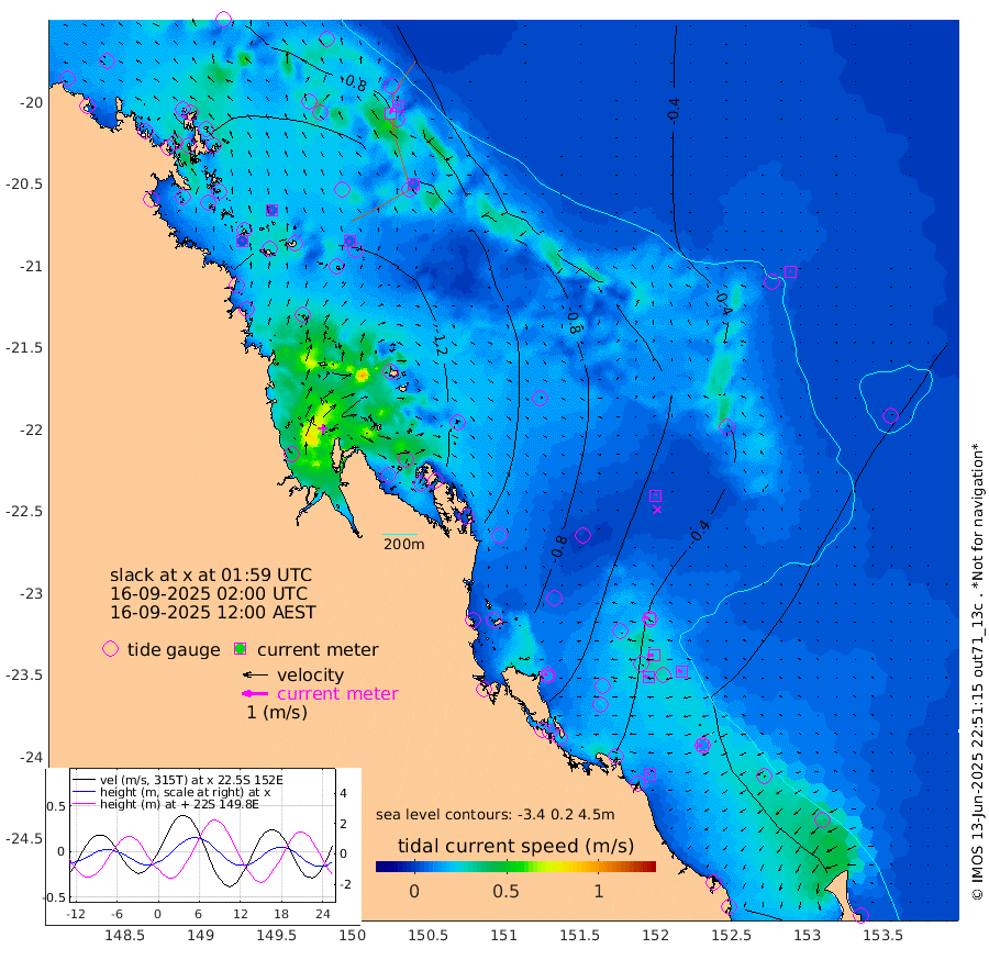5cm/s 14T +10cm/s rms + 2cm/s 5T. Brampton I 18m 7cm/s -57T +9cm/s rms + 6cm/s 66T. Wigton I 38m 7cm/s -126T +7cm/s rms + 8cm/s 141T. Tern I 47m 11cm/s -44T +7cm/s rms + 12cm/s 54T. N Bugatti Rf 64m 22cm/s 20T +3cm/s rms + 13cm/s 178T. W Bugatti Rf 70m 7cm/s -41T +3cm/s rms + 3cm/s -130T. Creal Rf 69m 25cm/s -66T +7cm/s rms + 4cm/s 2T. North Rf 62m 14cm/s -52T +9cm/s rms + 2cm/s -56T. Cape Capricorn 26m 12cm/s -94T +5cm/s rms + 3cm/s 166T. L Musgrave I 42m 12cm/s -73T +9cm/s rms + 1cm/s -142T. Round Hill Hd 26m 4cm/s -56T +41cm/s rms + 48cm/s 116T. GBRELR 305m 4cm/s 13T +7cm/s rms + 6cm/s 123T. GBRCCH 92m 23cm/s -90T +8cm/s rms + 3cm/s -33T. GBRHIN 45m 18cm/s -86T +4cm/s rms + 2cm/s 41T. GBRHIS 46m 17cm/s -64T +16cm/s rms + 4cm/s -22T. GBROTE 59m -90cm Bell Cay -95cm Holbourne I -128cm Tern I -78cm Bugatti Rf -92cm Creal Rf -68cm White Tip I -42cm North Rf -59cm Rundle I -18cm L Musgrave I -19cm Saumarez Reef -82cm Kennedy Reef -72cm Unnamed Reef No. 2 -98cm Abbot Point -101cm Bowen -100cm Tideway Reef -104cm Hayman Island -112cm Square Reef -111cm Double Bay -118cm Molle Island -109cm Cid Harbour -100cm Hook Island -100cm Border Island -105cm Haslewood Island -111cm Shute Harbour -115cm Thomas Island -122cm Credlin Reef -137cm East Repulse Island -120cm Blacksmith Island -127cm Laguna Quays -136cm Carlisle Island (Off) -135cm St. Bees Island -120cm Scawfell Island -131cm Penrith Island -137cm Mackay Outer Harbour -144cm Hay Point -139cm Prudhoe Island -129cm Middle Island (Percy Isles) -78cm Gannet Cay -31cm Elusive Reef -160cm Mcewin Islet -140cm Mumford Island -152cm Osborn Island -155cm Marquis Island -146cm Reef Point -111cm High Peak Island -98cm Port Clinton -89cm Peaked Island -42cm Karamea Bank -55cm Johnson Patch - NW -84cm Rosslyn Bay -86cm Middle Island (Keppel Isles) -98cm Port Alma -34cm Heron Island -31cm One Tree Islet -39cm Polmaise Reef -42cm Tryon Island -50cm Rock Cod Shoal -55cm Gatcombe Head -68cm Gladstone -61cm South Trees (Storm Surge) -29cm Clews Point -25cm Round Hill Head -11cm Lady Elliot Island -7cm Breaksea Spit -31cm Bundaberg (Burnett Heads) -31cm Elliot Heads 1cm Waddy Point (Fraser Island)