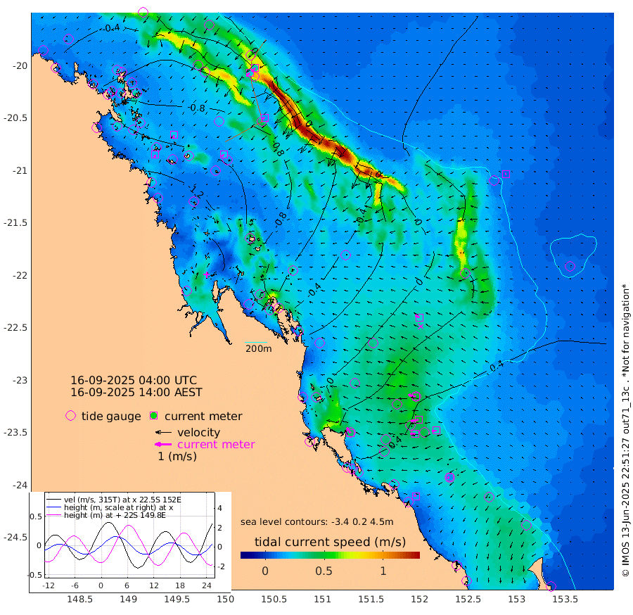 16cm/s -172T +10cm/s rms + 2cm/s 5T. Brampton I 18m 22cm/s -171T +9cm/s rms + 6cm/s 66T. Wigton I 38m 20cm/s -134T +7cm/s rms + 8cm/s 141T. Tern I 47m 30cm/s -146T +7cm/s rms + 12cm/s 54T. N Bugatti Rf 64m 25cm/s -134T +3cm/s rms + 13cm/s 178T. W Bugatti Rf 70m 15cm/s -128T +3cm/s rms + 3cm/s -130T. Creal Rf 69m 47cm/s -76T +7cm/s rms + 4cm/s 2T. North Rf 62m 39cm/s -36T +9cm/s rms + 2cm/s -56T. Cape Capricorn 26m 11cm/s -115T +5cm/s rms + 3cm/s 166T. L Musgrave I 42m 13cm/s -73T +9cm/s rms + 1cm/s -142T. Round Hill Hd 26m 7cm/s -73T +41cm/s rms + 48cm/s 116T. GBRELR 305m 26cm/s -60T +7cm/s rms + 6cm/s 123T. GBRCCH 92m 48cm/s -100T +8cm/s rms + 3cm/s -33T. GBRHIN 45m 31cm/s -91T +4cm/s rms + 2cm/s 41T. GBRHIS 46m 27cm/s -96T +16cm/s rms + 4cm/s -22T. GBROTE 59m -32cm Bell Cay -38cm Holbourne I -93cm Tern I -36cm Bugatti Rf -59cm Creal Rf -18cm White Tip I 34cm North Rf 34cm Rundle I 45cm L Musgrave I 22cm Saumarez Reef -22cm Kennedy Reef -9cm Unnamed Reef No. 2 -46cm Abbot Point -53cm Bowen -65cm Tideway Reef -58cm Hayman Island -85cm Square Reef -52cm Double Bay -69cm Molle Island -81cm Cid Harbour -51cm Hook Island -71cm Border Island -80cm Haslewood Island -75cm Shute Harbour -92cm Thomas Island -91cm Credlin Reef -111cm East Repulse Island -106cm Blacksmith Island -113cm Laguna Quays -104cm Carlisle Island (Off) -117cm St. Bees Island -105cm Scawfell Island -100cm Penrith Island -115cm Mackay Outer Harbour -119cm Hay Point -112cm Prudhoe Island -68cm Middle Island (Percy Isles) -18cm Gannet Cay 27cm Elusive Reef -153cm Mcewin Islet -78cm Mumford Island -100cm Osborn Island -102cm Marquis Island -93cm Reef Point -52cm High Peak Island -7cm Port Clinton -8cm Peaked Island 38cm Karamea Bank 32cm Johnson Patch - NW 13cm Rosslyn Bay 10cm Middle Island (Keppel Isles) 3cm Port Alma 42cm Heron Island 55cm One Tree Islet 44cm Polmaise Reef 33cm Tryon Island 38cm Rock Cod Shoal 30cm Gatcombe Head 23cm Gladstone 31cm South Trees (Storm Surge) 52cm Clews Point 48cm Round Hill Head 50cm Lady Elliot Island 57cm Breaksea Spit 46cm Bundaberg (Burnett Heads) 44cm Elliot Heads 48cm Waddy Point (Fraser Island)