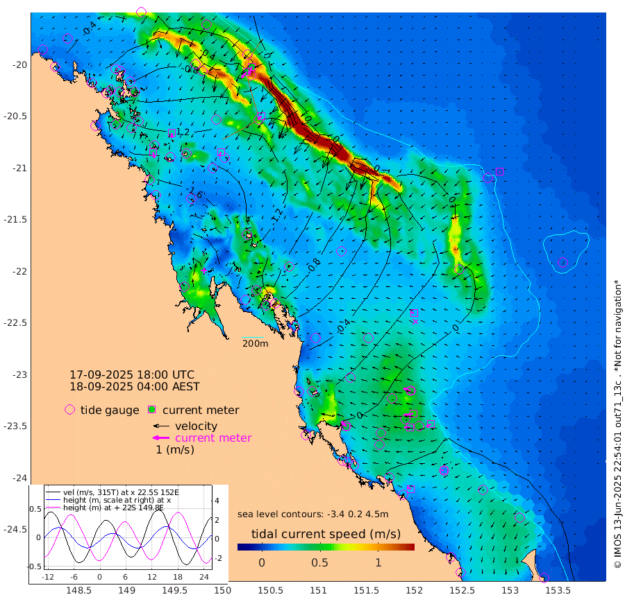 33cm/s 165T +10cm/s rms + 2cm/s 5T. Brampton I 18m 30cm/s 175T +9cm/s rms + 6cm/s 66T. Wigton I 38m 25cm/s -152T +7cm/s rms + 8cm/s 141T. Tern I 47m 48cm/s -156T +7cm/s rms + 12cm/s 54T. N Bugatti Rf 64m 48cm/s -141T +3cm/s rms + 13cm/s 178T. W Bugatti Rf 70m 23cm/s -143T +3cm/s rms + 3cm/s -130T. Creal Rf 69m 47cm/s -71T +7cm/s rms + 4cm/s 2T. North Rf 62m 43cm/s -40T +9cm/s rms + 2cm/s -56T. Cape Capricorn 26m 11cm/s -90T +5cm/s rms + 3cm/s 166T. L Musgrave I 42m 20cm/s -73T +9cm/s rms + 1cm/s -142T. Round Hill Hd 26m 5cm/s -129T +41cm/s rms + 48cm/s 116T. GBRELR 305m 18cm/s -74T +7cm/s rms + 6cm/s 123T. GBRCCH 92m 56cm/s -100T +8cm/s rms + 3cm/s -33T. GBRHIN 45m 35cm/s -92T +4cm/s rms + 2cm/s 41T. GBRHIS 46m 30cm/s -114T +16cm/s rms + 4cm/s -22T. GBROTE 59m -73cm Bell Cay -47cm Holbourne I -137cm Tern I -64cm Bugatti Rf -97cm Creal Rf -40cm White Tip I -1cm North Rf 1cm Rundle I 13cm L Musgrave I -3cm Saumarez Reef -20cm Kennedy Reef -21cm Unnamed Reef No. 2 -50cm Abbot Point -61cm Bowen -88cm Tideway Reef -72cm Hayman Island -120cm Square Reef -70cm Double Bay -94cm Molle Island -102cm Cid Harbour -74cm Hook Island -94cm Border Island -106cm Haslewood Island -99cm Shute Harbour -131cm Thomas Island -132cm Credlin Reef -147cm East Repulse Island -141cm Blacksmith Island -157cm Laguna Quays -145cm Carlisle Island (Off) -166cm St. Bees Island -149cm Scawfell Island -149cm Penrith Island -172cm Mackay Outer Harbour -179cm Hay Point -176cm Prudhoe Island -129cm Middle Island (Percy Isles) -55cm Gannet Cay 4cm Elusive Reef -241cm Mcewin Islet -125cm Mumford Island -152cm Osborn Island -163cm Marquis Island -139cm Reef Point -96cm High Peak Island -53cm Port Clinton -49cm Peaked Island 6cm Karamea Bank -16cm Johnson Patch - NW -24cm Rosslyn Bay -25cm Middle Island (Keppel Isles) -35cm Port Alma 5cm Heron Island 15cm One Tree Islet 11cm Polmaise Reef -8cm Tryon Island 7cm Rock Cod Shoal -3cm Gatcombe Head -12cm Gladstone -1cm South Trees (Storm Surge) 24cm Clews Point 16cm Round Hill Head 13cm Lady Elliot Island 19cm Breaksea Spit 21cm Bundaberg (Burnett Heads) 19cm Elliot Heads 7cm Waddy Point (Fraser Island)