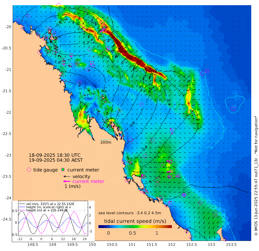 35cm/s 165T +10cm/s rms + 2cm/s 5T. Brampton I 18m 32cm/s 176T +9cm/s rms + 6cm/s 66T. Wigton I 38m 29cm/s -151T +7cm/s rms + 8cm/s 141T. Tern I 47m 52cm/s -156T +7cm/s rms + 12cm/s 54T. N Bugatti Rf 64m 52cm/s -141T +3cm/s rms + 13cm/s 178T. W Bugatti Rf 70m 26cm/s -142T +3cm/s rms + 3cm/s -130T. Creal Rf 69m 53cm/s -72T +7cm/s rms + 4cm/s 2T. North Rf 62m 47cm/s -41T +9cm/s rms + 2cm/s -56T. Cape Capricorn 26m 13cm/s -94T +5cm/s rms + 3cm/s 166T. L Musgrave I 42m 22cm/s -74T +9cm/s rms + 1cm/s -142T. Round Hill Hd 26m 6cm/s -127T +41cm/s rms + 48cm/s 116T. GBRELR 305m 21cm/s -74T +7cm/s rms + 6cm/s 123T. GBRCCH 92m 64cm/s -99T +8cm/s rms + 3cm/s -33T. GBRHIN 45m 41cm/s -92T +4cm/s rms + 2cm/s 41T. GBRHIS 46m 36cm/s -112T +16cm/s rms + 4cm/s -22T. GBROTE 59m -88cm Bell Cay -53cm Holbourne I -161cm Tern I -71cm Bugatti Rf -111cm Creal Rf -43cm White Tip I -3cm North Rf -4cm Rundle I 15cm L Musgrave I 1cm Saumarez Reef -23cm Kennedy Reef -22cm Unnamed Reef No. 2 -55cm Abbot Point -67cm Bowen -97cm Tideway Reef -80cm Hayman Island -131cm Square Reef -85cm Double Bay -106cm Molle Island -114cm Cid Harbour -85cm Hook Island -103cm Border Island -120cm Haslewood Island -112cm Shute Harbour -150cm Thomas Island -149cm Credlin Reef -169cm East Repulse Island -160cm Blacksmith Island -180cm Laguna Quays -167cm Carlisle Island (Off) -192cm St. Bees Island -170cm Scawfell Island -172cm Penrith Island -201cm Mackay Outer Harbour -210cm Hay Point -207cm Prudhoe Island -161cm Middle Island (Percy Isles) -70cm Gannet Cay 7cm Elusive Reef -291cm Mcewin Islet -150cm Mumford Island -181cm Osborn Island -196cm Marquis Island -168cm Reef Point -118cm High Peak Island -72cm Port Clinton -61cm Peaked Island 5cm Karamea Bank -24cm Johnson Patch - NW -36cm Rosslyn Bay -36cm Middle Island (Keppel Isles) -51cm Port Alma 3cm Heron Island 16cm One Tree Islet 9cm Polmaise Reef -10cm Tryon Island 5cm Rock Cod Shoal -10cm Gatcombe Head -22cm Gladstone -9cm South Trees (Storm Surge) 25cm Clews Point 16cm Round Hill Head 16cm Lady Elliot Island 22cm Breaksea Spit 19cm Bundaberg (Burnett Heads) 18cm Elliot Heads 11cm Waddy Point (Fraser Island)