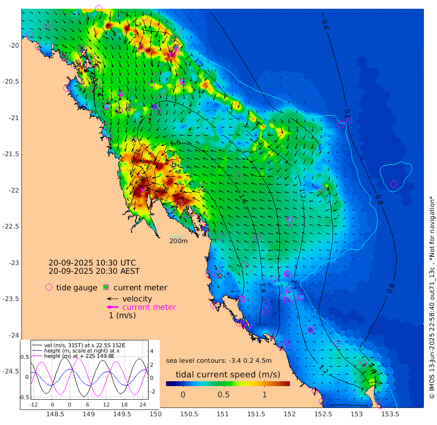 26cm/s 179T +10cm/s rms + 2cm/s 5T. Brampton I 18m 40cm/s 165T +9cm/s rms + 6cm/s 66T. Wigton I 38m 4cm/s 176T +7cm/s rms + 8cm/s 141T. Tern I 47m 43cm/s -175T +7cm/s rms + 12cm/s 54T. N Bugatti Rf 64m 67cm/s -154T +3cm/s rms + 13cm/s 178T. W Bugatti Rf 70m 23cm/s 166T +3cm/s rms + 3cm/s -130T. Creal Rf 69m 12cm/s -141T +7cm/s rms + 4cm/s 2T. North Rf 62m 16cm/s 0T +9cm/s rms + 2cm/s -56T. Cape Capricorn 26m 4cm/s 172T +5cm/s rms + 3cm/s 166T. L Musgrave I 42m 10cm/s 110T +9cm/s rms + 1cm/s -142T. Round Hill Hd 26m 2cm/s -168T +41cm/s rms + 48cm/s 116T. GBRELR 305m 28cm/s -72T +7cm/s rms + 6cm/s 123T. GBRCCH 92m 13cm/s 170T +8cm/s rms + 3cm/s -33T. GBRHIN 45m 7cm/s 107T +4cm/s rms + 2cm/s 41T. GBRHIS 46m 13cm/s 155T +16cm/s rms + 4cm/s -22T. GBROTE 59m 174cm Bell Cay 138cm Holbourne I 188cm Tern I 127cm Bugatti Rf 147cm Creal Rf 117cm White Tip I 139cm North Rf 178cm Rundle I 99cm L Musgrave I 91cm Saumarez Reef 120cm Kennedy Reef 120cm Unnamed Reef No. 2 132cm Abbot Point 134cm Bowen 134cm Tideway Reef 143cm Hayman Island 165cm Square Reef 154cm Double Bay 144cm Molle Island 137cm Cid Harbour 138cm Hook Island 124cm Border Island 130cm Haslewood Island 143cm Shute Harbour 148cm Thomas Island 169cm Credlin Reef 154cm East Repulse Island 145cm Blacksmith Island 150cm Laguna Quays 166cm Carlisle Island (Off) 176cm St. Bees Island 159cm Scawfell Island 189cm Penrith Island 180cm Mackay Outer Harbour 194cm Hay Point 214cm Prudhoe Island 231cm Middle Island (Percy Isles) 157cm Gannet Cay 82cm Elusive Reef 169cm Mcewin Islet 253cm Mumford Island 230cm Osborn Island 239cm Marquis Island 218cm Reef Point 199cm High Peak Island 222cm Port Clinton 228cm Peaked Island 140cm Karamea Bank 184cm Johnson Patch - NW 212cm Rosslyn Bay 218cm Middle Island (Keppel Isles) 232cm Port Alma 134cm Heron Island 148cm One Tree Islet 152cm Polmaise Reef 141cm Tryon Island 150cm Rock Cod Shoal 166cm Gatcombe Head 186cm Gladstone 178cm South Trees (Storm Surge) 135cm Clews Point 121cm Round Hill Head 93cm Lady Elliot Island 84cm Breaksea Spit 127cm Bundaberg (Burnett Heads) 131cm Elliot Heads 67cm Waddy Point (Fraser Island)