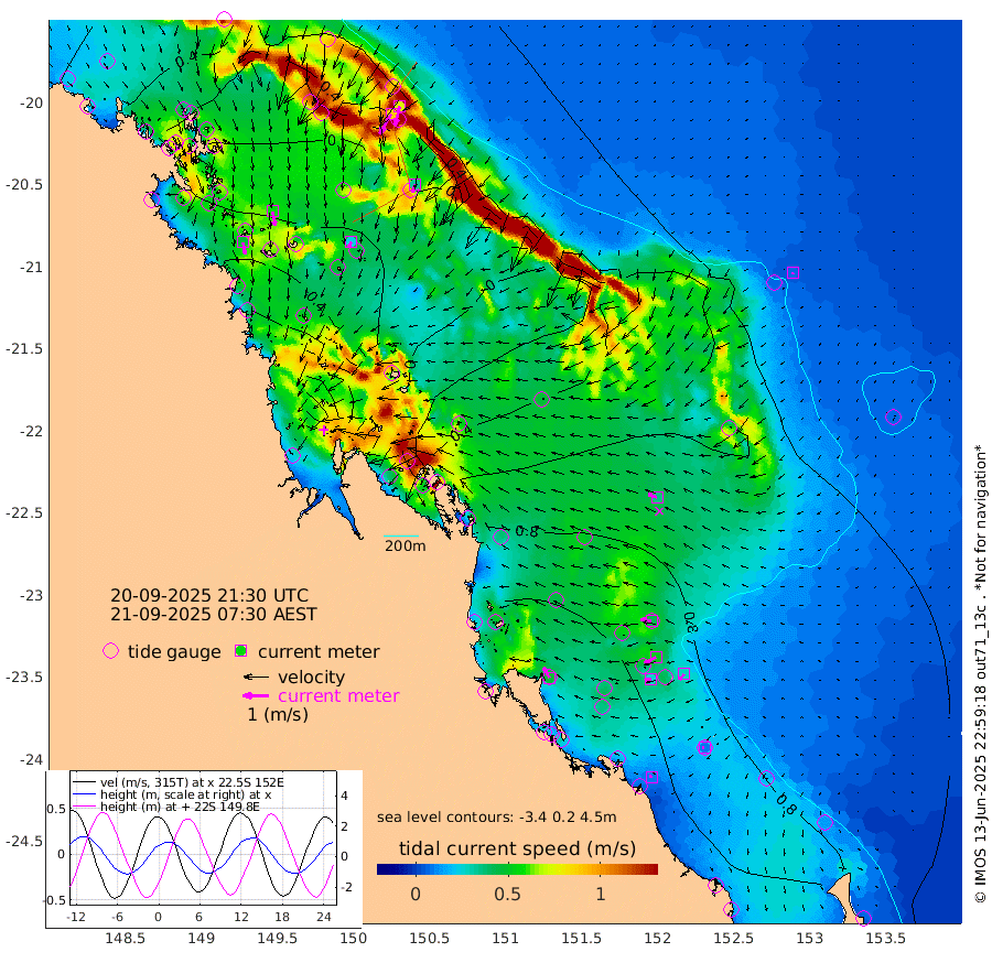 48cm/s 169T +10cm/s rms + 2cm/s 5T. Brampton I 18m 57cm/s 170T +9cm/s rms + 6cm/s 66T. Wigton I 38m 24cm/s -158T +7cm/s rms + 8cm/s 141T. Tern I 47m 75cm/s -166T +7cm/s rms + 12cm/s 54T. N Bugatti Rf 64m 89cm/s -149T +3cm/s rms + 13cm/s 178T. W Bugatti Rf 70m 34cm/s -169T +3cm/s rms + 3cm/s -130T. Creal Rf 69m 43cm/s -80T +7cm/s rms + 4cm/s 2T. North Rf 62m 46cm/s -30T +9cm/s rms + 2cm/s -56T. Cape Capricorn 26m 9cm/s -113T +5cm/s rms + 3cm/s 166T. L Musgrave I 42m 10cm/s -78T +9cm/s rms + 1cm/s -142T. Round Hill Hd 26m 6cm/s -152T +41cm/s rms + 48cm/s 116T. GBRELR 305m 36cm/s -72T +7cm/s rms + 6cm/s 123T. GBRCCH 92m 51cm/s -114T +8cm/s rms + 3cm/s -33T. GBRHIN 45m 26cm/s -95T +4cm/s rms + 2cm/s 41T. GBRHIS 46m 28cm/s -138T +16cm/s rms + 4cm/s -22T. GBROTE 59m 61cm Bell Cay 47cm Holbourne I 19cm Tern I 34cm Bugatti Rf 22cm Creal Rf 45cm White Tip I 93cm North Rf 123cm Rundle I 75cm L Musgrave I 63cm Saumarez Reef 66cm Kennedy Reef 61cm Unnamed Reef No. 2 48cm Abbot Point 40cm Bowen 21cm Tideway Reef 40cm Hayman Island 21cm Square Reef 33cm Double Bay 7cm Molle Island 15cm Cid Harbour 28cm Hook Island 10cm Border Island 1cm Haslewood Island 15cm Shute Harbour -4cm Thomas Island 15cm Credlin Reef -12cm East Repulse Island -11cm Blacksmith Island -26cm Laguna Quays -5cm Carlisle Island (Off) -6cm St. Bees Island -7cm Scawfell Island 12cm Penrith Island -17cm Mackay Outer Harbour -13cm Hay Point 5cm Prudhoe Island 47cm Middle Island (Percy Isles) 60cm Gannet Cay 54cm Elusive Reef -92cm Mcewin Islet 82cm Mumford Island 46cm Osborn Island 40cm Marquis Island 45cm Reef Point 60cm High Peak Island 106cm Port Clinton 127cm Peaked Island 102cm Karamea Bank 112cm Johnson Patch - NW 128cm Rosslyn Bay 134cm Middle Island (Keppel Isles) 133cm Port Alma 94cm Heron Island 113cm One Tree Islet 114cm Polmaise Reef 95cm Tryon Island 108cm Rock Cod Shoal 110cm Gatcombe Head 118cm Gladstone 121cm South Trees (Storm Surge) 115cm Clews Point 95cm Round Hill Head 73cm Lady Elliot Island 70cm Breaksea Spit 101cm Bundaberg (Burnett Heads) 103cm Elliot Heads 51cm Waddy Point (Fraser Island)