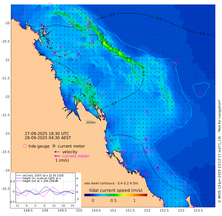 13cm/s -8T +10cm/s rms + 2cm/s 5T. Brampton I 18m 19cm/s -9T +9cm/s rms + 6cm/s 66T. Wigton I 38m 7cm/s 31T +7cm/s rms + 8cm/s 141T. Tern I 47m 11cm/s 10T +7cm/s rms + 12cm/s 54T. N Bugatti Rf 64m 18cm/s 34T +3cm/s rms + 13cm/s 178T. W Bugatti Rf 70m 12cm/s -3T +3cm/s rms + 3cm/s -130T. Creal Rf 69m 9cm/s 71T +7cm/s rms + 4cm/s 2T. North Rf 62m 9cm/s 143T +9cm/s rms + 2cm/s -56T. Cape Capricorn 26m 3cm/s 21T +5cm/s rms + 3cm/s 166T. L Musgrave I 42m 4cm/s -35T +9cm/s rms + 1cm/s -142T. Round Hill Hd 26m 1cm/s 33T +41cm/s rms + 48cm/s 116T. GBRELR 305m 14cm/s 100T +7cm/s rms + 6cm/s 123T. GBRCCH 92m 13cm/s 62T +8cm/s rms + 3cm/s -33T. GBRHIN 45m 7cm/s 71T +4cm/s rms + 2cm/s 41T. GBRHIS 46m 12cm/s 44T +16cm/s rms + 4cm/s -22T. GBROTE 59m -49cm Bell Cay -33cm Holbourne I -35cm Tern I -40cm Bugatti Rf -38cm Creal Rf -41cm White Tip I -60cm North Rf -69cm Rundle I -52cm L Musgrave I -56cm Saumarez Reef -36cm Kennedy Reef -41cm Unnamed Reef No. 2 -37cm Abbot Point -36cm Bowen -34cm Tideway Reef -37cm Hayman Island -44cm Square Reef -27cm Double Bay -30cm Molle Island -43cm Cid Harbour -32cm Hook Island -34cm Border Island -36cm Haslewood Island -33cm Shute Harbour -29cm Thomas Island -43cm Credlin Reef -33cm East Repulse Island -40cm Blacksmith Island -24cm Laguna Quays -37cm Carlisle Island (Off) -55cm St. Bees Island -44cm Scawfell Island -42cm Penrith Island -28cm Mackay Outer Harbour -29cm Hay Point -27cm Prudhoe Island -42cm Middle Island (Percy Isles) -43cm Gannet Cay -42cm Elusive Reef 2cm Mcewin Islet -57cm Mumford Island -52cm Osborn Island -61cm Marquis Island -54cm Reef Point -52cm High Peak Island -58cm Port Clinton -73cm Peaked Island -62cm Karamea Bank -71cm Johnson Patch - NW -73cm Rosslyn Bay -76cm Middle Island (Keppel Isles) -77cm Port Alma -65cm Heron Island -64cm One Tree Islet -64cm Polmaise Reef -69cm Tryon Island -67cm Rock Cod Shoal -65cm Gatcombe Head -71cm Gladstone -71cm South Trees (Storm Surge) -61cm Clews Point -61cm Round Hill Head -54cm Lady Elliot Island -52cm Breaksea Spit -64cm Bundaberg (Burnett Heads) -74cm Elliot Heads -43cm Waddy Point (Fraser Island)