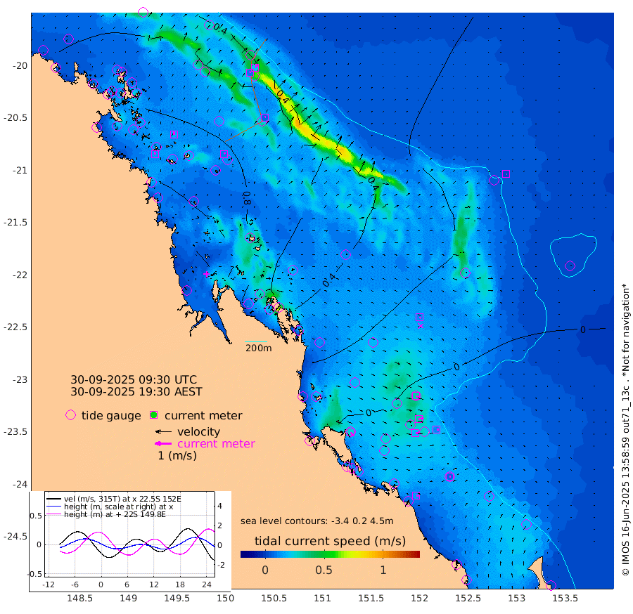 13cm/s -9T +10cm/s rms + 2cm/s 5T. Brampton I 18m 17cm/s 4T +9cm/s rms + 6cm/s 66T. Wigton I 38m 10cm/s 30T +7cm/s rms + 8cm/s 141T. Tern I 47m 21cm/s 34T +7cm/s rms + 12cm/s 54T. N Bugatti Rf 64m 8cm/s 49T +3cm/s rms + 13cm/s 178T. W Bugatti Rf 70m 8cm/s 42T +3cm/s rms + 3cm/s -130T. Creal Rf 69m 31cm/s 116T +7cm/s rms + 4cm/s 2T. North Rf 62m 26cm/s 141T +9cm/s rms + 2cm/s -56T. Cape Capricorn 26m 7cm/s 90T +5cm/s rms + 3cm/s 166T. L Musgrave I 42m 14cm/s 114T +9cm/s rms + 1cm/s -142T. Round Hill Hd 26m 3cm/s 85T +41cm/s rms + 48cm/s 116T. GBRELR 305m 11cm/s 132T +7cm/s rms + 6cm/s 123T. GBRCCH 92m 30cm/s 76T +8cm/s rms + 3cm/s -33T. GBRHIN 45m 18cm/s 92T +4cm/s rms + 2cm/s 41T. GBRHIS 46m 11cm/s 83T +16cm/s rms + 4cm/s -22T. GBROTE 59m 45cm Bell Cay 73cm Holbourne I 85cm Tern I 59cm Bugatti Rf 68cm Creal Rf 52cm White Tip I 7cm North Rf 6cm Rundle I -3cm L Musgrave I 18cm Saumarez Reef 55cm Kennedy Reef 48cm Unnamed Reef No. 2 72cm Abbot Point 75cm Bowen 83cm Tideway Reef 74cm Hayman Island 100cm Square Reef 86cm Double Bay 90cm Molle Island 76cm Cid Harbour 78cm Hook Island 77cm Border Island 76cm Haslewood Island 83cm Shute Harbour 88cm Thomas Island 87cm Credlin Reef 88cm East Repulse Island 85cm Blacksmith Island 98cm Laguna Quays 89cm Carlisle Island (Off) 97cm St. Bees Island 84cm Scawfell Island 88cm Penrith Island 97cm Mackay Outer Harbour 98cm Hay Point 109cm Prudhoe Island 74cm Middle Island (Percy Isles) 29cm Gannet Cay 19cm Elusive Reef 98cm Mcewin Islet 76cm Mumford Island 65cm Osborn Island 63cm Marquis Island 58cm Reef Point 50cm High Peak Island 36cm Port Clinton 41cm Peaked Island 2cm Karamea Bank 13cm Johnson Patch - NW 15cm Rosslyn Bay 19cm Middle Island (Keppel Isles) 17cm Port Alma 0cm Heron Island 6cm One Tree Islet 1cm Polmaise Reef 2cm Tryon Island -3cm Rock Cod Shoal 2cm Gatcombe Head 4cm Gladstone 0cm South Trees (Storm Surge) -6cm Clews Point -8cm Round Hill Head -4cm Lady Elliot Island -7cm Breaksea Spit -7cm Bundaberg (Burnett Heads) -10cm Elliot Heads -5cm Waddy Point (Fraser Island)