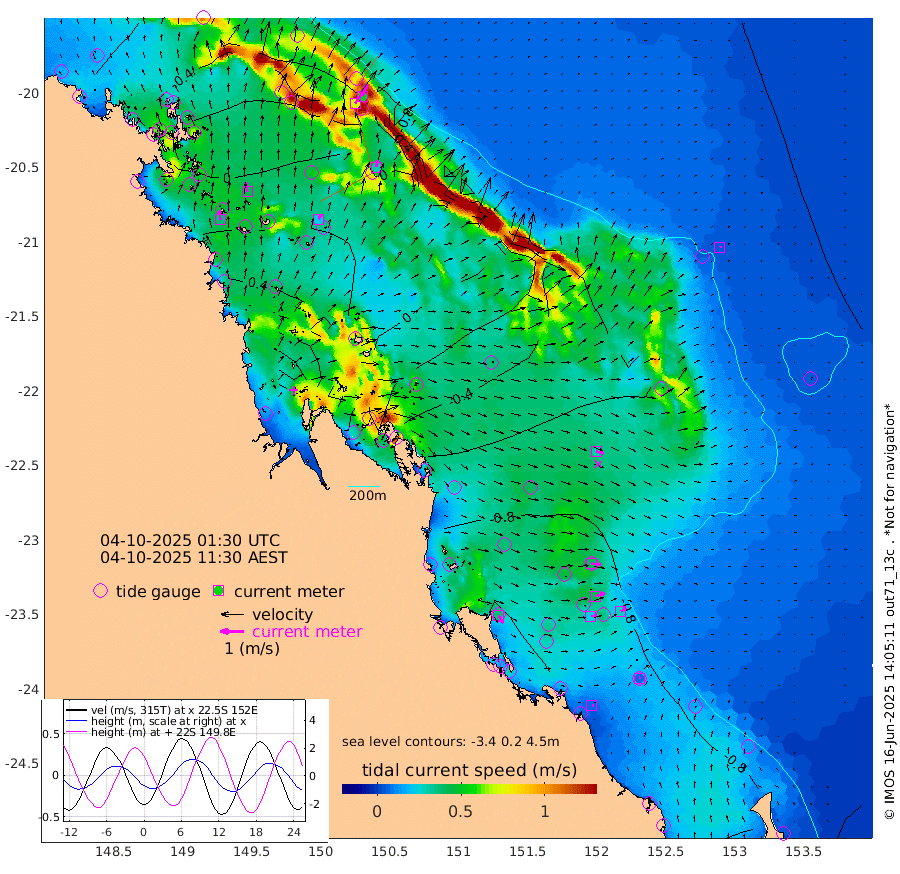 38cm/s -7T +10cm/s rms + 2cm/s 5T. Brampton I 18m 43cm/s -9T +9cm/s rms + 6cm/s 66T. Wigton I 38m 21cm/s 24T +7cm/s rms + 8cm/s 141T. Tern I 47m 54cm/s 16T +7cm/s rms + 12cm/s 54T. N Bugatti Rf 64m 73cm/s 34T +3cm/s rms + 13cm/s 178T. W Bugatti Rf 70m 29cm/s 12T +3cm/s rms + 3cm/s -130T. Creal Rf 69m 40cm/s 97T +7cm/s rms + 4cm/s 2T. North Rf 62m 38cm/s 147T +9cm/s rms + 2cm/s -56T. Cape Capricorn 26m 6cm/s 61T +5cm/s rms + 3cm/s 166T. L Musgrave I 42m 8cm/s 105T +9cm/s rms + 1cm/s -142T. Round Hill Hd 26m 5cm/s 41T +41cm/s rms + 48cm/s 116T. GBRELR 305m 31cm/s 105T +7cm/s rms + 6cm/s 123T. GBRCCH 92m 43cm/s 71T +8cm/s rms + 3cm/s -33T. GBRHIN 45m 24cm/s 82T +4cm/s rms + 2cm/s 41T. GBRHIS 46m 27cm/s 51T +16cm/s rms + 4cm/s -22T. GBROTE 59m -47cm Bell Cay -52cm Holbourne I -7cm Tern I -35cm Bugatti Rf -16cm Creal Rf -49cm White Tip I -86cm North Rf -108cm Rundle I -73cm L Musgrave I -61cm Saumarez Reef -60cm Kennedy Reef -68cm Unnamed Reef No. 2 -59cm Abbot Point -52cm Bowen -26cm Tideway Reef -48cm Hayman Island -18cm Square Reef -39cm Double Bay -31cm Molle Island -29cm Cid Harbour -30cm Hook Island -24cm Border Island -20cm Haslewood Island -24cm Shute Harbour 3cm Thomas Island -18cm Credlin Reef -6cm East Repulse Island 0cm Blacksmith Island 19cm Laguna Quays -11cm Carlisle Island (Off) 5cm St. Bees Island -2cm Scawfell Island -12cm Penrith Island 20cm Mackay Outer Harbour 20cm Hay Point 22cm Prudhoe Island -13cm Middle Island (Percy Isles) -48cm Gannet Cay -63cm Elusive Reef 90cm Mcewin Islet -46cm Mumford Island -31cm Osborn Island -30cm Marquis Island -38cm Reef Point -45cm High Peak Island -73cm Port Clinton -86cm Peaked Island -93cm Karamea Bank -85cm Johnson Patch - NW -105cm Rosslyn Bay -110cm Middle Island (Keppel Isles) -106cm Port Alma -88cm Heron Island -96cm One Tree Islet -95cm Polmaise Reef -85cm Tryon Island -106cm Rock Cod Shoal -95cm Gatcombe Head -99cm Gladstone -103cm South Trees (Storm Surge) -96cm Clews Point -86cm Round Hill Head -70cm Lady Elliot Island -68cm Breaksea Spit -93cm Bundaberg (Burnett Heads) -99cm Elliot Heads -51cm Waddy Point (Fraser Island)