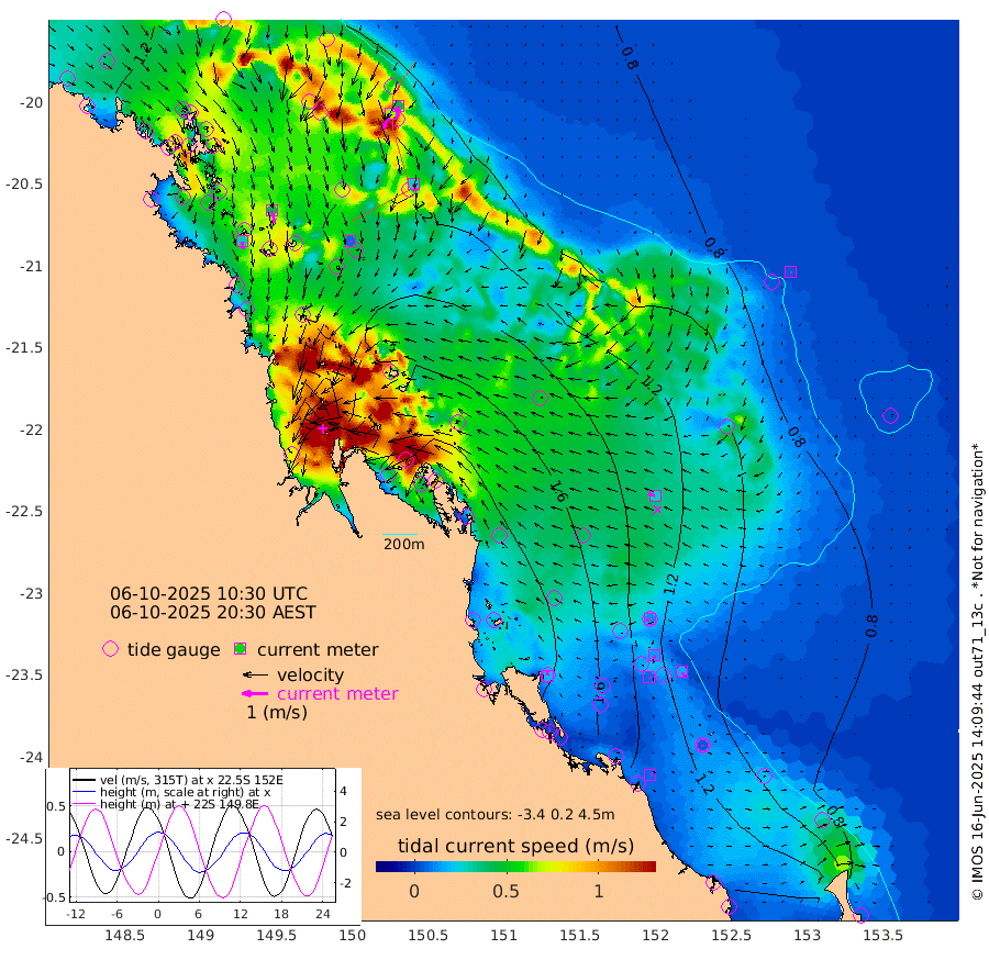 31cm/s 173T +10cm/s rms + 2cm/s 5T. Brampton I 18m 48cm/s 166T +9cm/s rms + 6cm/s 66T. Wigton I 38m 7cm/s 163T +7cm/s rms + 8cm/s 141T. Tern I 47m 48cm/s -174T +7cm/s rms + 12cm/s 54T. N Bugatti Rf 64m 67cm/s -154T +3cm/s rms + 13cm/s 178T. W Bugatti Rf 70m 28cm/s 166T +3cm/s rms + 3cm/s -130T. Creal Rf 69m 11cm/s -127T +7cm/s rms + 4cm/s 2T. North Rf 62m 18cm/s -8T +9cm/s rms + 2cm/s -56T. Cape Capricorn 26m 4cm/s 159T +5cm/s rms + 3cm/s 166T. L Musgrave I 42m 8cm/s 99T +9cm/s rms + 1cm/s -142T. Round Hill Hd 26m 4cm/s 172T +41cm/s rms + 48cm/s 116T. GBRELR 305m 27cm/s -73T +7cm/s rms + 6cm/s 123T. GBRCCH 92m 14cm/s 178T +8cm/s rms + 3cm/s -33T. GBRHIN 45m 6cm/s 113T +4cm/s rms + 2cm/s 41T. GBRHIS 46m 16cm/s 157T +16cm/s rms + 4cm/s -22T. GBROTE 59m 170cm Bell Cay 117cm Holbourne I 179cm Tern I 115cm Bugatti Rf 136cm Creal Rf 104cm White Tip I 136cm North Rf 178cm Rundle I 95cm L Musgrave I 87cm Saumarez Reef 107cm Kennedy Reef 107cm Unnamed Reef No. 2 120cm Abbot Point 122cm Bowen 119cm Tideway Reef 132cm Hayman Island 149cm Square Reef 122cm Double Bay 129cm Molle Island 138cm Cid Harbour 118cm Hook Island 118cm Border Island 128cm Haslewood Island 131cm Shute Harbour 137cm Thomas Island 164cm Credlin Reef 155cm East Repulse Island 145cm Blacksmith Island 140cm Laguna Quays 165cm Carlisle Island (Off) 169cm St. Bees Island 157cm Scawfell Island 186cm Penrith Island 171cm Mackay Outer Harbour 185cm Hay Point 191cm Prudhoe Island 215cm Middle Island (Percy Isles) 156cm Gannet Cay 72cm Elusive Reef 162cm Mcewin Islet 248cm Mumford Island 244cm Osborn Island 255cm Marquis Island 234cm Reef Point 200cm High Peak Island 213cm Port Clinton 219cm Peaked Island 139cm Karamea Bank 177cm Johnson Patch - NW 214cm Rosslyn Bay 220cm Middle Island (Keppel Isles) 238cm Port Alma 134cm Heron Island 136cm One Tree Islet 148cm Polmaise Reef 144cm Tryon Island 155cm Rock Cod Shoal 168cm Gatcombe Head 191cm Gladstone 183cm South Trees (Storm Surge) 133cm Clews Point 121cm Round Hill Head 89cm Lady Elliot Island 77cm Breaksea Spit 129cm Bundaberg (Burnett Heads) 138cm Elliot Heads 61cm Waddy Point (Fraser Island)