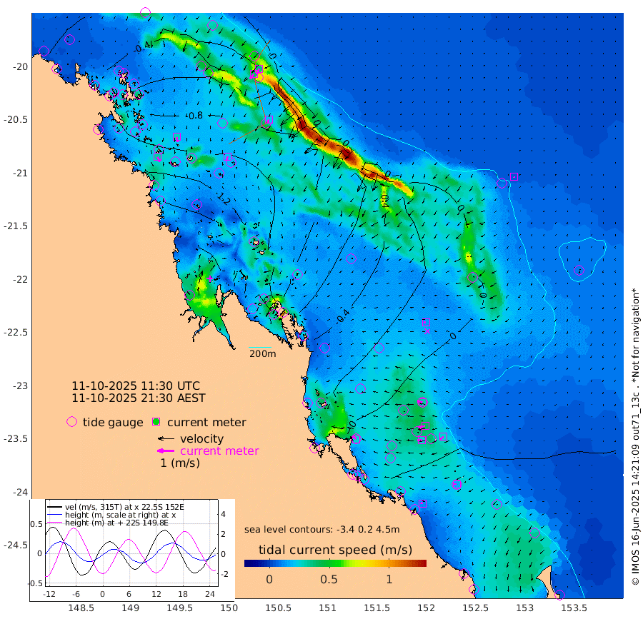 30cm/s 153T +10cm/s rms + 2cm/s 5T. Brampton I 18m 29cm/s 169T +9cm/s rms + 6cm/s 66T. Wigton I 38m 20cm/s -165T +7cm/s rms + 8cm/s 141T. Tern I 47m 36cm/s -156T +7cm/s rms + 12cm/s 54T. N Bugatti Rf 64m 37cm/s -146T +3cm/s rms + 13cm/s 178T. W Bugatti Rf 70m 20cm/s -166T +3cm/s rms + 3cm/s -130T. Creal Rf 69m 30cm/s -72T +7cm/s rms + 4cm/s 2T. North Rf 62m 27cm/s -44T +9cm/s rms + 2cm/s -56T. Cape Capricorn 26m 16cm/s -85T +5cm/s rms + 3cm/s 166T. L Musgrave I 42m 12cm/s -77T +9cm/s rms + 1cm/s -142T. Round Hill Hd 26m 5cm/s -170T +41cm/s rms + 48cm/s 116T. GBRELR 305m 14cm/s -90T +7cm/s rms + 6cm/s 123T. GBRCCH 92m 41cm/s -101T +8cm/s rms + 3cm/s -33T. GBRHIN 45m 27cm/s -95T +4cm/s rms + 2cm/s 41T. GBRHIS 46m 26cm/s -125T +16cm/s rms + 4cm/s -22T. GBROTE 59m -42cm Bell Cay -26cm Holbourne I -89cm Tern I -35cm Bugatti Rf -56cm Creal Rf -20cm White Tip I 9cm North Rf 13cm Rundle I 17cm L Musgrave I 28cm Saumarez Reef -11cm Kennedy Reef -10cm Unnamed Reef No. 2 -27cm Abbot Point -35cm Bowen -51cm Tideway Reef -45cm Hayman Island -60cm Square Reef -49cm Double Bay -68cm Molle Island -60cm Cid Harbour -49cm Hook Island -60cm Border Island -64cm Haslewood Island -63cm Shute Harbour -84cm Thomas Island -82cm Credlin Reef -105cm East Repulse Island -89cm Blacksmith Island -107cm Laguna Quays -99cm Carlisle Island (Off) -99cm St. Bees Island -95cm Scawfell Island -97cm Penrith Island -119cm Mackay Outer Harbour -125cm Hay Point -110cm Prudhoe Island -85cm Middle Island (Percy Isles) -39cm Gannet Cay 4cm Elusive Reef -208cm Mcewin Islet -77cm Mumford Island -113cm Osborn Island -118cm Marquis Island -101cm Reef Point -60cm High Peak Island -30cm Port Clinton -6cm Peaked Island 14cm Karamea Bank 5cm Johnson Patch - NW -6cm Rosslyn Bay -2cm Middle Island (Keppel Isles) -13cm Port Alma 15cm Heron Island 21cm One Tree Islet 20cm Polmaise Reef 4cm Tryon Island 12cm Rock Cod Shoal 7cm Gatcombe Head 2cm Gladstone 9cm South Trees (Storm Surge) 25cm Clews Point 20cm Round Hill Head 20cm Lady Elliot Island 16cm Breaksea Spit 27cm Bundaberg (Burnett Heads) 32cm Elliot Heads 8cm Waddy Point (Fraser Island)