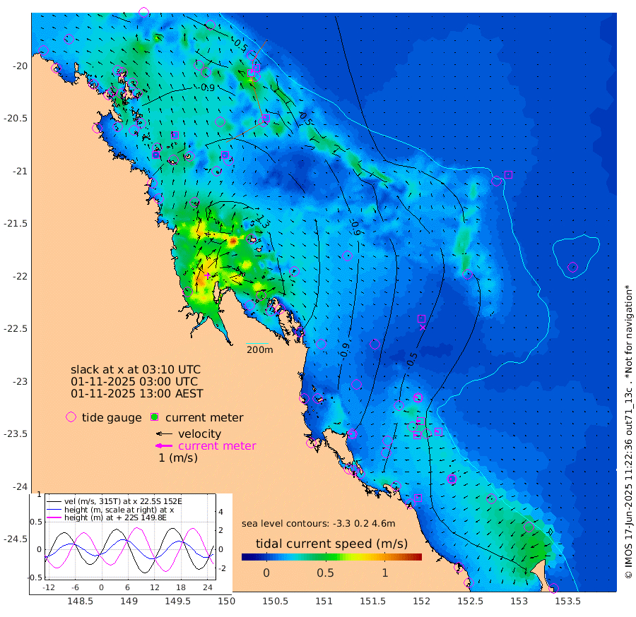 4cm/s 4T +10cm/s rms + 2cm/s 5T. Brampton I 18m 12cm/s -38T +9cm/s rms + 6cm/s 66T. Wigton I 38m 10cm/s -131T +7cm/s rms + 8cm/s 141T. Tern I 47m 11cm/s -48T +7cm/s rms + 12cm/s 54T. N Bugatti Rf 64m 22cm/s 25T +3cm/s rms + 13cm/s 178T. W Bugatti Rf 70m 13cm/s -58T +3cm/s rms + 3cm/s -130T. Creal Rf 69m 23cm/s -65T +7cm/s rms + 4cm/s 2T. North Rf 62m 14cm/s -62T +9cm/s rms + 2cm/s -56T. Cape Capricorn 26m 8cm/s -102T +5cm/s rms + 3cm/s 166T. L Musgrave I 42m 12cm/s -77T +9cm/s rms + 1cm/s -142T. Round Hill Hd 26m 3cm/s -57T +41cm/s rms + 48cm/s 116T. GBRELR 305m 2cm/s -7T +7cm/s rms + 6cm/s 123T. GBRCCH 92m 25cm/s -90T +8cm/s rms + 3cm/s -33T. GBRHIN 45m 21cm/s -88T +4cm/s rms + 2cm/s 41T. GBRHIS 46m 20cm/s -72T +16cm/s rms + 4cm/s -22T. GBROTE 59m -103cm Bell Cay -73cm Holbourne I -141cm Tern I -72cm Bugatti Rf -98cm Creal Rf -55cm White Tip I -45cm North Rf -67cm Rundle I -18cm L Musgrave I -21cm Saumarez Reef -62cm Kennedy Reef -48cm Unnamed Reef No. 2 -76cm Abbot Point -82cm Bowen -89cm Tideway Reef -93cm Hayman Island -115cm Square Reef -81cm Double Bay -91cm Molle Island -108cm Cid Harbour -81cm Hook Island -98cm Border Island -100cm Haslewood Island -102cm Shute Harbour -117cm Thomas Island -129cm Credlin Reef -132cm East Repulse Island -134cm Blacksmith Island -132cm Laguna Quays -135cm Carlisle Island (Off) -153cm St. Bees Island -141cm Scawfell Island -150cm Penrith Island -153cm Mackay Outer Harbour -164cm Hay Point -160cm Prudhoe Island -153cm Middle Island (Percy Isles) -89cm Gannet Cay -13cm Elusive Reef -195cm Mcewin Islet -183cm Mumford Island -194cm Osborn Island -199cm Marquis Island -178cm Reef Point -129cm High Peak Island -111cm Port Clinton -112cm Peaked Island -39cm Karamea Bank -70cm Johnson Patch - NW -98cm Rosslyn Bay -100cm Middle Island (Keppel Isles) -117cm Port Alma -37cm Heron Island -38cm One Tree Islet -48cm Polmaise Reef -48cm Tryon Island -46cm Rock Cod Shoal -63cm Gatcombe Head -82cm Gladstone -71cm South Trees (Storm Surge) -36cm Clews Point -29cm Round Hill Head -10cm Lady Elliot Island -4cm Breaksea Spit -34cm Bundaberg (Burnett Heads) -40cm Elliot Heads 0cm Waddy Point (Fraser Island)