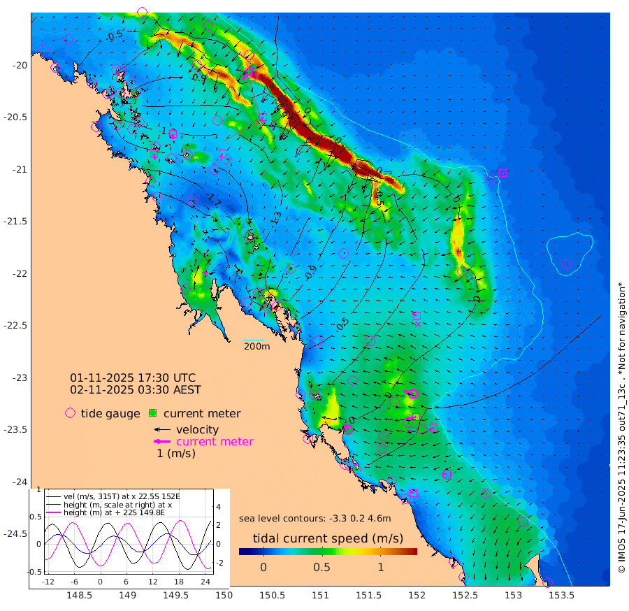 33cm/s 171T +10cm/s rms + 2cm/s 5T. Brampton I 18m 31cm/s 177T +9cm/s rms + 6cm/s 66T. Wigton I 38m 25cm/s -150T +7cm/s rms + 8cm/s 141T. Tern I 47m 48cm/s -155T +7cm/s rms + 12cm/s 54T. N Bugatti Rf 64m 52cm/s -141T +3cm/s rms + 13cm/s 178T. W Bugatti Rf 70m 24cm/s -148T +3cm/s rms + 3cm/s -130T. Creal Rf 69m 58cm/s -73T +7cm/s rms + 4cm/s 2T. North Rf 62m 47cm/s -39T +9cm/s rms + 2cm/s -56T. Cape Capricorn 26m 16cm/s -89T +5cm/s rms + 3cm/s 166T. L Musgrave I 42m 21cm/s -72T +9cm/s rms + 1cm/s -142T. Round Hill Hd 26m 6cm/s -119T +41cm/s rms + 48cm/s 116T. GBRELR 305m 27cm/s -69T +7cm/s rms + 6cm/s 123T. GBRCCH 92m 64cm/s -100T +8cm/s rms + 3cm/s -33T. GBRHIN 45m 38cm/s -92T +4cm/s rms + 2cm/s 41T. GBRHIS 46m 34cm/s -115T +16cm/s rms + 4cm/s -22T. GBROTE 59m -69cm Bell Cay -52cm Holbourne I -141cm Tern I -63cm Bugatti Rf -99cm Creal Rf -38cm White Tip I 12cm North Rf 14cm Rundle I 26cm L Musgrave I 9cm Saumarez Reef -30cm Kennedy Reef -16cm Unnamed Reef No. 2 -48cm Abbot Point -59cm Bowen -86cm Tideway Reef -67cm Hayman Island -122cm Square Reef -67cm Double Bay -103cm Molle Island -99cm Cid Harbour -77cm Hook Island -95cm Border Island -102cm Haslewood Island -99cm Shute Harbour -132cm Thomas Island -125cm Credlin Reef -137cm East Repulse Island -139cm Blacksmith Island -160cm Laguna Quays -137cm Carlisle Island (Off) -149cm St. Bees Island -140cm Scawfell Island -147cm Penrith Island -174cm Mackay Outer Harbour -182cm Hay Point -182cm Prudhoe Island -143cm Middle Island (Percy Isles) -54cm Gannet Cay 13cm Elusive Reef -252cm Mcewin Islet -133cm Mumford Island -153cm Osborn Island -156cm Marquis Island -134cm Reef Point -92cm High Peak Island -53cm Port Clinton -40cm Peaked Island 22cm Karamea Bank -11cm Johnson Patch - NW -14cm Rosslyn Bay -11cm Middle Island (Keppel Isles) -27cm Port Alma 19cm Heron Island 25cm One Tree Islet 20cm Polmaise Reef 7cm Tryon Island 27cm Rock Cod Shoal 6cm Gatcombe Head -3cm Gladstone 8cm South Trees (Storm Surge) 33cm Clews Point 27cm Round Hill Head 29cm Lady Elliot Island 33cm Breaksea Spit 31cm Bundaberg (Burnett Heads) 32cm Elliot Heads 22cm Waddy Point (Fraser Island)
