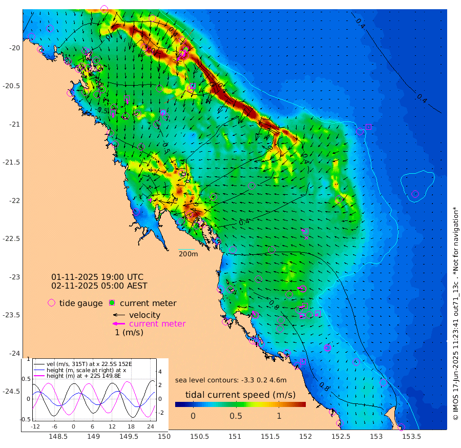 40cm/s 176T +10cm/s rms + 2cm/s 5T. Brampton I 18m 46cm/s 171T +9cm/s rms + 6cm/s 66T. Wigton I 38m 21cm/s -154T +7cm/s rms + 8cm/s 141T. Tern I 47m 62cm/s -164T +7cm/s rms + 12cm/s 54T. N Bugatti Rf 64m 76cm/s -147T +3cm/s rms + 13cm/s 178T. W Bugatti Rf 70m 29cm/s -167T +3cm/s rms + 3cm/s -130T. Creal Rf 69m 47cm/s -77T +7cm/s rms + 4cm/s 2T. North Rf 62m 44cm/s -32T +9cm/s rms + 2cm/s -56T. Cape Capricorn 26m 12cm/s -92T +5cm/s rms + 3cm/s 166T. L Musgrave I 42m 12cm/s -72T +9cm/s rms + 1cm/s -142T. Round Hill Hd 26m 5cm/s -131T +41cm/s rms + 48cm/s 116T. GBRELR 305m 33cm/s -70T +7cm/s rms + 6cm/s 123T. GBRCCH 92m 49cm/s -111T +8cm/s rms + 3cm/s -33T. GBRHIN 45m 25cm/s -95T +4cm/s rms + 2cm/s 41T. GBRHIS 46m 25cm/s -137T +16cm/s rms + 4cm/s -22T. GBROTE 59m 34cm Bell Cay 20cm Holbourne I -12cm Tern I 12cm Bugatti Rf -4cm Creal Rf 24cm White Tip I 74cm North Rf 97cm Rundle I 63cm L Musgrave I 39cm Saumarez Reef 36cm Kennedy Reef 41cm Unnamed Reef No. 2 26cm Abbot Point 19cm Bowen -4cm Tideway Reef 22cm Hayman Island -16cm Square Reef 14cm Double Bay -11cm Molle Island -1cm Cid Harbour 3cm Hook Island -9cm Border Island -12cm Haslewood Island -5cm Shute Harbour -26cm Thomas Island -8cm Credlin Reef -19cm East Repulse Island -23cm Blacksmith Island -45cm Laguna Quays -17cm Carlisle Island (Off) -14cm St. Bees Island -16cm Scawfell Island -11cm Penrith Island -39cm Mackay Outer Harbour -37cm Hay Point -38cm Prudhoe Island 4cm Middle Island (Percy Isles) 39cm Gannet Cay 43cm Elusive Reef -91cm Mcewin Islet 36cm Mumford Island 22cm Osborn Island 24cm Marquis Island 29cm Reef Point 33cm High Peak Island 66cm Port Clinton 78cm Peaked Island 82cm Karamea Bank 77cm Johnson Patch - NW 96cm Rosslyn Bay 100cm Middle Island (Keppel Isles) 98cm Port Alma 76cm Heron Island 84cm One Tree Islet 86cm Polmaise Reef 77cm Tryon Island 93cm Rock Cod Shoal 86cm Gatcombe Head 91cm Gladstone 95cm South Trees (Storm Surge) 89cm Clews Point 77cm Round Hill Head 60cm Lady Elliot Island 62cm Breaksea Spit 82cm Bundaberg (Burnett Heads) 88cm Elliot Heads 45cm Waddy Point (Fraser Island)