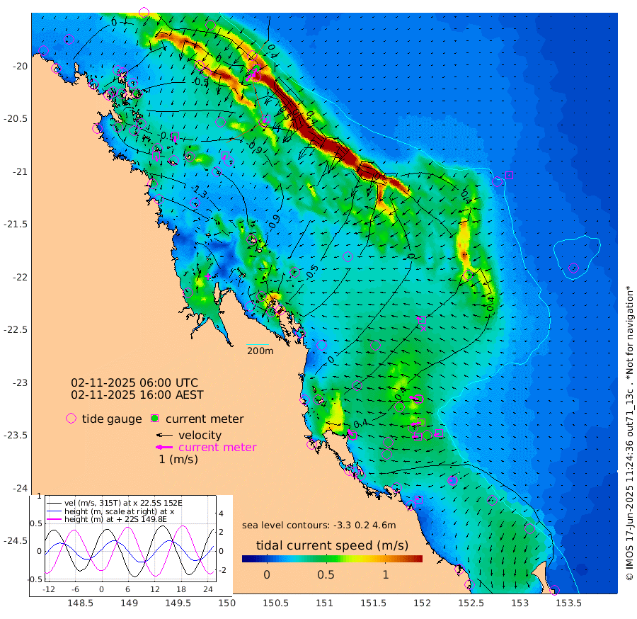 35cm/s 171T +10cm/s rms + 2cm/s 5T. Brampton I 18m 36cm/s 179T +9cm/s rms + 6cm/s 66T. Wigton I 38m 28cm/s -150T +7cm/s rms + 8cm/s 141T. Tern I 47m 56cm/s -155T +7cm/s rms + 12cm/s 54T. N Bugatti Rf 64m 55cm/s -146T +3cm/s rms + 13cm/s 178T. W Bugatti Rf 70m 28cm/s -149T +3cm/s rms + 3cm/s -130T. Creal Rf 69m 55cm/s -77T +7cm/s rms + 4cm/s 2T. North Rf 62m 47cm/s -38T +9cm/s rms + 2cm/s -56T. Cape Capricorn 26m 12cm/s -105T +5cm/s rms + 3cm/s 166T. L Musgrave I 42m 16cm/s -73T +9cm/s rms + 1cm/s -142T. Round Hill Hd 26m 5cm/s -115T +41cm/s rms + 48cm/s 116T. GBRELR 305m 33cm/s -70T +7cm/s rms + 6cm/s 123T. GBRCCH 92m 60cm/s -101T +8cm/s rms + 3cm/s -33T. GBRHIN 45m 38cm/s -93T +4cm/s rms + 2cm/s 41T. GBRHIS 46m 35cm/s -112T +16cm/s rms + 4cm/s -22T. GBROTE 59m -27cm Bell Cay -6cm Holbourne I -95cm Tern I -19cm Bugatti Rf -55cm Creal Rf 7cm White Tip I 50cm North Rf 56cm Rundle I 57cm L Musgrave I 40cm Saumarez Reef 12cm Kennedy Reef 29cm Unnamed Reef No. 2 -1cm Abbot Point -12cm Bowen -41cm Tideway Reef -23cm Hayman Island -67cm Square Reef -20cm Double Bay -34cm Molle Island -56cm Cid Harbour -29cm Hook Island -54cm Border Island -57cm Haslewood Island -53cm Shute Harbour -88cm Thomas Island -78cm Credlin Reef -93cm East Repulse Island -103cm Blacksmith Island -116cm Laguna Quays -90cm Carlisle Island (Off) -120cm St. Bees Island -105cm Scawfell Island -94cm Penrith Island -128cm Mackay Outer Harbour -135cm Hay Point -132cm Prudhoe Island -90cm Middle Island (Percy Isles) -14cm Gannet Cay 49cm Elusive Reef -226cm Mcewin Islet -83cm Mumford Island -110cm Osborn Island -116cm Marquis Island -93cm Reef Point -47cm High Peak Island -2cm Port Clinton 7cm Peaked Island 62cm Karamea Bank 37cm Johnson Patch - NW 33cm Rosslyn Bay 37cm Middle Island (Keppel Isles) 21cm Port Alma 59cm Heron Island 65cm One Tree Islet 58cm Polmaise Reef 47cm Tryon Island 68cm Rock Cod Shoal 50cm Gatcombe Head 38cm Gladstone 50cm South Trees (Storm Surge) 68cm Clews Point 61cm Round Hill Head 60cm Lady Elliot Island 62cm Breaksea Spit 64cm Bundaberg (Burnett Heads) 65cm Elliot Heads 49cm Waddy Point (Fraser Island)