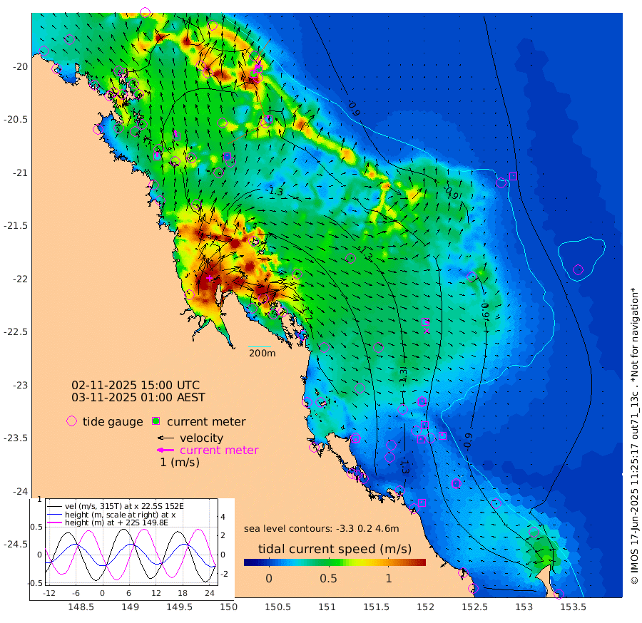 27cm/s 1T +10cm/s rms + 2cm/s 5T. Brampton I 18m 40cm/s -12T +9cm/s rms + 6cm/s 66T. Wigton I 38m 5cm/s 12T +7cm/s rms + 8cm/s 141T. Tern I 47m 46cm/s 7T +7cm/s rms + 12cm/s 54T. N Bugatti Rf 64m 60cm/s 25T +3cm/s rms + 13cm/s 178T. W Bugatti Rf 70m 23cm/s -9T +3cm/s rms + 3cm/s -130T. Creal Rf 69m 8cm/s 46T +7cm/s rms + 4cm/s 2T. North Rf 62m 15cm/s 174T +9cm/s rms + 2cm/s -56T. Cape Capricorn 26m 4cm/s -39T +5cm/s rms + 3cm/s 166T. L Musgrave I 42m 8cm/s -69T +9cm/s rms + 1cm/s -142T. Round Hill Hd 26m 2cm/s -2T +41cm/s rms + 48cm/s 116T. GBRELR 305m 25cm/s 108T +7cm/s rms + 6cm/s 123T. GBRCCH 92m 10cm/s -4T +8cm/s rms + 3cm/s -33T. GBRHIN 45m 7cm/s -63T +4cm/s rms + 2cm/s 41T. GBRHIS 46m 15cm/s -31T +16cm/s rms + 4cm/s -22T. GBROTE 59m -154cm Bell Cay -112cm Holbourne I -165cm Tern I -112cm Bugatti Rf -128cm Creal Rf -104cm White Tip I -122cm North Rf -157cm Rundle I -85cm L Musgrave I -69cm Saumarez Reef -110cm Kennedy Reef -106cm Unnamed Reef No. 2 -118cm Abbot Point -119cm Bowen -115cm Tideway Reef -131cm Hayman Island -139cm Square Reef -126cm Double Bay -133cm Molle Island -133cm Cid Harbour -117cm Hook Island -112cm Border Island -120cm Haslewood Island -127cm Shute Harbour -132cm Thomas Island -152cm Credlin Reef -149cm East Repulse Island -142cm Blacksmith Island -135cm Laguna Quays -153cm Carlisle Island (Off) -168cm St. Bees Island -154cm Scawfell Island -174cm Penrith Island -161cm Mackay Outer Harbour -173cm Hay Point -173cm Prudhoe Island -197cm Middle Island (Percy Isles) -142cm Gannet Cay -71cm Elusive Reef -158cm Mcewin Islet -230cm Mumford Island -227cm Osborn Island -235cm Marquis Island -217cm Reef Point -180cm High Peak Island -190cm Port Clinton -192cm Peaked Island -124cm Karamea Bank -159cm Johnson Patch - NW -190cm Rosslyn Bay -193cm Middle Island (Keppel Isles) -209cm Port Alma -120cm Heron Island -123cm One Tree Islet -132cm Polmaise Reef -135cm Tryon Island -137cm Rock Cod Shoal -150cm Gatcombe Head -168cm Gladstone -161cm South Trees (Storm Surge) -120cm Clews Point -107cm Round Hill Head -78cm Lady Elliot Island -75cm Breaksea Spit -112cm Bundaberg (Burnett Heads) -120cm Elliot Heads -58cm Waddy Point (Fraser Island)