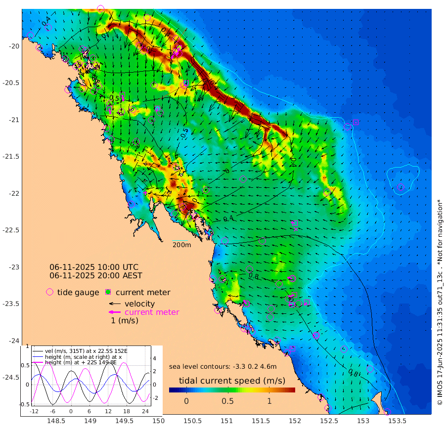 50cm/s 163T +10cm/s rms + 2cm/s 5T. Brampton I 18m 56cm/s 170T +9cm/s rms + 6cm/s 66T. Wigton I 38m 27cm/s -163T +7cm/s rms + 8cm/s 141T. Tern I 47m 70cm/s -161T +7cm/s rms + 12cm/s 54T. N Bugatti Rf 64m 78cm/s -150T +3cm/s rms + 13cm/s 178T. W Bugatti Rf 70m 34cm/s -172T +3cm/s rms + 3cm/s -130T. Creal Rf 69m 43cm/s -77T +7cm/s rms + 4cm/s 2T. North Rf 62m 43cm/s -34T +9cm/s rms + 2cm/s -56T. Cape Capricorn 26m 17cm/s -89T +5cm/s rms + 3cm/s 166T. L Musgrave I 42m 11cm/s -71T +9cm/s rms + 1cm/s -142T. Round Hill Hd 26m 7cm/s -166T +41cm/s rms + 48cm/s 116T. GBRELR 305m 32cm/s -77T +7cm/s rms + 6cm/s 123T. GBRCCH 92m 52cm/s -110T +8cm/s rms + 3cm/s -33T. GBRHIN 45m 30cm/s -97T +4cm/s rms + 2cm/s 41T. GBRHIS 46m 33cm/s -136T +16cm/s rms + 4cm/s -22T. GBROTE 59m 31cm Bell Cay 26cm Holbourne I -20cm Tern I 11cm Bugatti Rf -4cm Creal Rf 25cm White Tip I 74cm North Rf 100cm Rundle I 63cm L Musgrave I 58cm Saumarez Reef 35cm Kennedy Reef 42cm Unnamed Reef No. 2 26cm Abbot Point 17cm Bowen -7cm Tideway Reef 10cm Hayman Island -12cm Square Reef 15cm Double Bay -14cm Molle Island -11cm Cid Harbour 3cm Hook Island -20cm Border Island -17cm Haslewood Island -12cm Shute Harbour -35cm Thomas Island -22cm Credlin Reef -43cm East Repulse Island -43cm Blacksmith Island -58cm Laguna Quays -33cm Carlisle Island (Off) -35cm St. Bees Island -36cm Scawfell Island -27cm Penrith Island -56cm Mackay Outer Harbour -55cm Hay Point -39cm Prudhoe Island 4cm Middle Island (Percy Isles) 32cm Gannet Cay 39cm Elusive Reef -148cm Mcewin Islet 26cm Mumford Island -13cm Osborn Island -11cm Marquis Island -3cm Reef Point 27cm High Peak Island 72cm Port Clinton 92cm Peaked Island 83cm Karamea Bank 86cm Johnson Patch - NW 97cm Rosslyn Bay 103cm Middle Island (Keppel Isles) 100cm Port Alma 80cm Heron Island 87cm One Tree Islet 91cm Polmaise Reef 69cm Tryon Island 91cm Rock Cod Shoal 90cm Gatcombe Head 93cm Gladstone 98cm South Trees (Storm Surge) 91cm Clews Point 79cm Round Hill Head 62cm Lady Elliot Island 54cm Breaksea Spit 88cm Bundaberg (Burnett Heads) 95cm Elliot Heads 39cm Waddy Point (Fraser Island)