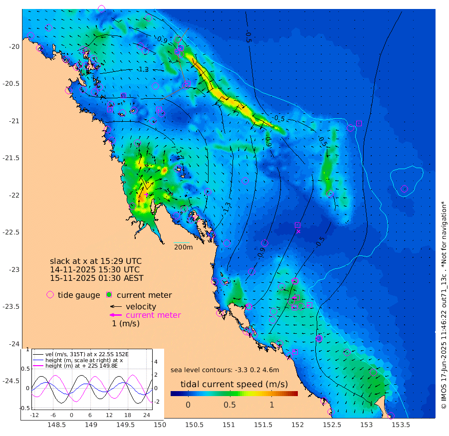 10cm/s 148T +10cm/s rms + 2cm/s 5T. Brampton I 18m 6cm/s -149T +9cm/s rms + 6cm/s 66T. Wigton I 38m 15cm/s -147T +7cm/s rms + 8cm/s 141T. Tern I 47m 10cm/s -117T +7cm/s rms + 12cm/s 54T. N Bugatti Rf 64m 9cm/s -58T +3cm/s rms + 13cm/s 178T. W Bugatti Rf 70m 11cm/s -112T +3cm/s rms + 3cm/s -130T. Creal Rf 69m 32cm/s -68T +7cm/s rms + 4cm/s 2T. North Rf 62m 25cm/s -49T +9cm/s rms + 2cm/s -56T. Cape Capricorn 26m 8cm/s -78T +5cm/s rms + 3cm/s 166T. L Musgrave I 42m 17cm/s -69T +9cm/s rms + 1cm/s -142T. Round Hill Hd 26m 3cm/s -107T +41cm/s rms + 48cm/s 116T. GBRELR 305m 3cm/s -55T +7cm/s rms + 6cm/s 123T. GBRCCH 92m 39cm/s -91T +8cm/s rms + 3cm/s -33T. GBRHIN 45m 27cm/s -89T +4cm/s rms + 2cm/s 41T. GBRHIS 46m 23cm/s -99T +16cm/s rms + 4cm/s -22T. GBROTE 59m -119cm Bell Cay -101cm Holbourne I -174cm Tern I -101cm Bugatti Rf -129cm Creal Rf -82cm White Tip I -53cm North Rf -67cm Rundle I -25cm L Musgrave I -28cm Saumarez Reef -76cm Kennedy Reef -75cm Unnamed Reef No. 2 -103cm Abbot Point -110cm Bowen -124cm Tideway Reef -117cm Hayman Island -150cm Square Reef -135cm Double Bay -142cm Molle Island -132cm Cid Harbour -119cm Hook Island -119cm Border Island -132cm Haslewood Island -136cm Shute Harbour -157cm Thomas Island -161cm Credlin Reef -174cm East Repulse Island -158cm Blacksmith Island -176cm Laguna Quays -174cm Carlisle Island (Off) -187cm St. Bees Island -165cm Scawfell Island -177cm Penrith Island -195cm Mackay Outer Harbour -205cm Hay Point -209cm Prudhoe Island -186cm Middle Island (Percy Isles) -102cm Gannet Cay -34cm Elusive Reef -237cm Mcewin Islet -183cm Mumford Island -194cm Osborn Island -202cm Marquis Island -185cm Reef Point -147cm High Peak Island -128cm Port Clinton -120cm Peaked Island -51cm Karamea Bank -78cm Johnson Patch - NW -100cm Rosslyn Bay -103cm Middle Island (Keppel Isles) -115cm Port Alma -46cm Heron Island -41cm One Tree Islet -49cm Polmaise Reef -57cm Tryon Island -55cm Rock Cod Shoal -66cm Gatcombe Head -79cm Gladstone -70cm South Trees (Storm Surge) -33cm Clews Point -31cm Round Hill Head -20cm Lady Elliot Island -15cm Breaksea Spit -31cm Bundaberg (Burnett Heads) -31cm Elliot Heads -14cm Waddy Point (Fraser Island)