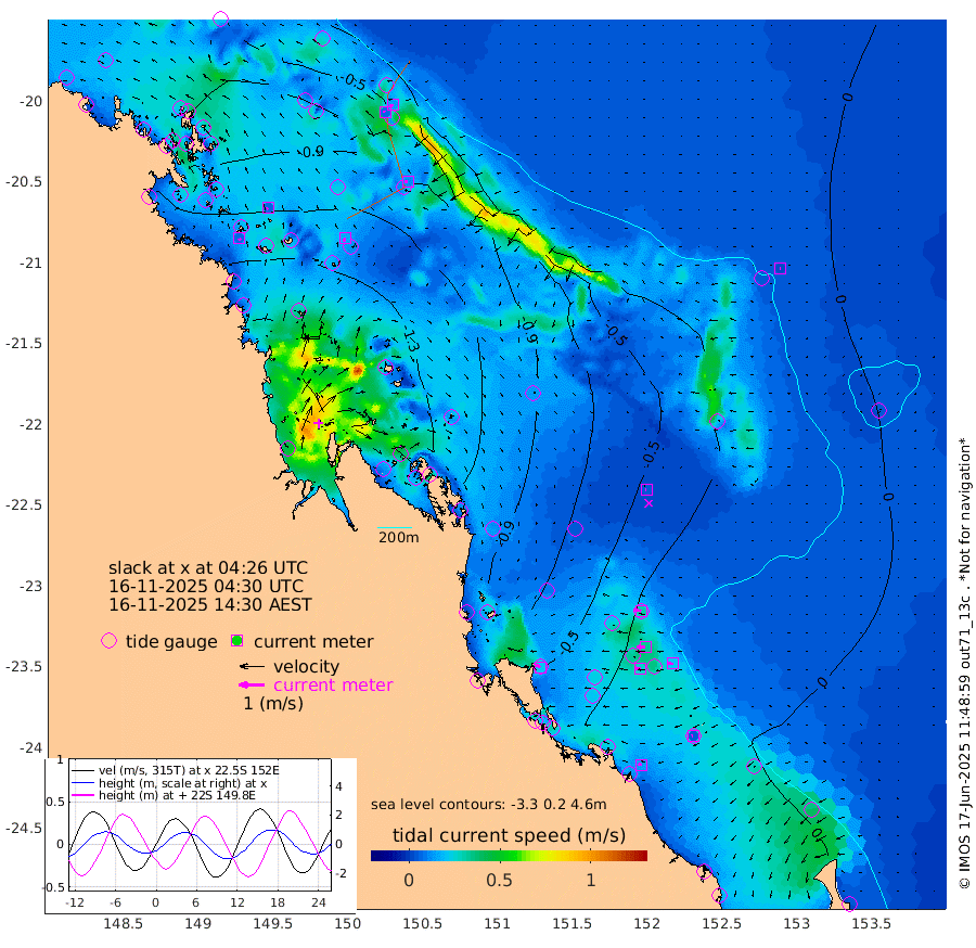 8cm/s 151T +10cm/s rms + 2cm/s 5T. Brampton I 18m 6cm/s -119T +9cm/s rms + 6cm/s 66T. Wigton I 38m 15cm/s -148T +7cm/s rms + 8cm/s 141T. Tern I 47m 15cm/s -118T +7cm/s rms + 12cm/s 54T. N Bugatti Rf 64m 7cm/s -32T +3cm/s rms + 13cm/s 178T. W Bugatti Rf 70m 12cm/s -108T +3cm/s rms + 3cm/s -130T. Creal Rf 69m 30cm/s -70T +7cm/s rms + 4cm/s 2T. North Rf 62m 20cm/s -57T +9cm/s rms + 2cm/s -56T. Cape Capricorn 26m 5cm/s -96T +5cm/s rms + 3cm/s 166T. L Musgrave I 42m 14cm/s -77T +9cm/s rms + 1cm/s -142T. Round Hill Hd 26m 3cm/s -87T +41cm/s rms + 48cm/s 116T. GBRELR 305m 5cm/s -74T +7cm/s rms + 6cm/s 123T. GBRCCH 92m 34cm/s -90T +8cm/s rms + 3cm/s -33T. GBRHIN 45m 25cm/s -90T +4cm/s rms + 2cm/s 41T. GBRHIS 46m 22cm/s -88T +16cm/s rms + 4cm/s -22T. GBROTE 59m -95cm Bell Cay -64cm Holbourne I -141cm Tern I -63cm Bugatti Rf -96cm Creal Rf -42cm White Tip I -30cm North Rf -47cm Rundle I -6cm L Musgrave I -10cm Saumarez Reef -42cm Kennedy Reef -35cm Unnamed Reef No. 2 -59cm Abbot Point -66cm Bowen -82cm Tideway Reef -74cm Hayman Island -105cm Square Reef -89cm Double Bay -74cm Molle Island -87cm Cid Harbour -82cm Hook Island -81cm Border Island -89cm Haslewood Island -94cm Shute Harbour -117cm Thomas Island -123cm Credlin Reef -132cm East Repulse Island -116cm Blacksmith Island -135cm Laguna Quays -134cm Carlisle Island (Off) -158cm St. Bees Island -131cm Scawfell Island -134cm Penrith Island -158cm Mackay Outer Harbour -170cm Hay Point -180cm Prudhoe Island -156cm Middle Island (Percy Isles) -79cm Gannet Cay -3cm Elusive Reef -216cm Mcewin Islet -157cm Mumford Island -166cm Osborn Island -180cm Marquis Island -154cm Reef Point -119cm High Peak Island -109cm Port Clinton -104cm Peaked Island -28cm Karamea Bank -55cm Johnson Patch - NW -78cm Rosslyn Bay -81cm Middle Island (Keppel Isles) -94cm Port Alma -20cm Heron Island -20cm One Tree Islet -29cm Polmaise Reef -28cm Tryon Island -29cm Rock Cod Shoal -43cm Gatcombe Head -61cm Gladstone -50cm South Trees (Storm Surge) -15cm Clews Point -13cm Round Hill Head -2cm Lady Elliot Island 7cm Breaksea Spit -14cm Bundaberg (Burnett Heads) -12cm Elliot Heads 5cm Waddy Point (Fraser Island)