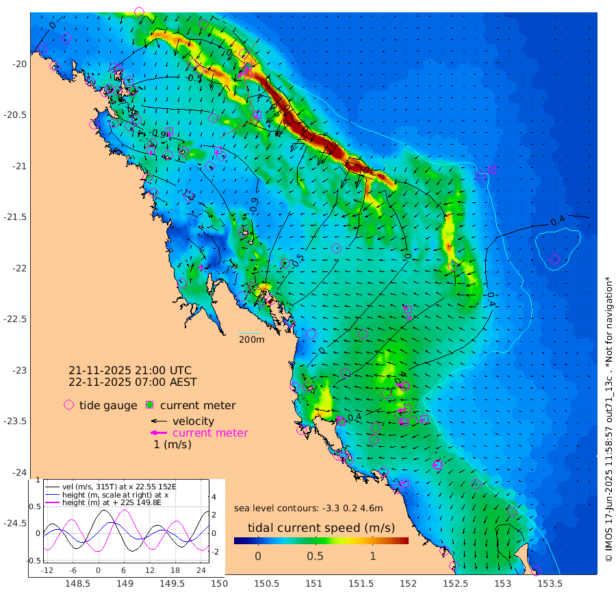 27cm/s 176T +10cm/s rms + 2cm/s 5T. Brampton I 18m 32cm/s 177T +9cm/s rms + 6cm/s 66T. Wigton I 38m 22cm/s -148T +7cm/s rms + 8cm/s 141T. Tern I 47m 47cm/s -157T +7cm/s rms + 12cm/s 54T. N Bugatti Rf 64m 53cm/s -144T +3cm/s rms + 13cm/s 178T. W Bugatti Rf 70m 22cm/s -160T +3cm/s rms + 3cm/s -130T. Creal Rf 69m 57cm/s -75T +7cm/s rms + 4cm/s 2T. North Rf 62m 43cm/s -37T +9cm/s rms + 2cm/s -56T. Cape Capricorn 26m 23cm/s -100T +5cm/s rms + 3cm/s 166T. L Musgrave I 42m 17cm/s -74T +9cm/s rms + 1cm/s -142T. Round Hill Hd 26m 7cm/s -101T +41cm/s rms + 48cm/s 116T. GBRELR 305m 34cm/s -65T +7cm/s rms + 6cm/s 123T. GBRCCH 92m 59cm/s -103T +8cm/s rms + 3cm/s -33T. GBRHIN 45m 35cm/s -92T +4cm/s rms + 2cm/s 41T. GBRHIS 46m 30cm/s -109T +16cm/s rms + 4cm/s -22T. GBROTE 59m -20cm Bell Cay -22cm Holbourne I -79cm Tern I -20cm Bugatti Rf -46cm Creal Rf -1cm White Tip I 49cm North Rf 54cm Rundle I 55cm L Musgrave I 41cm Saumarez Reef -6cm Kennedy Reef 13cm Unnamed Reef No. 2 -11cm Abbot Point -21cm Bowen -41cm Tideway Reef -24cm Hayman Island -58cm Square Reef -39cm Double Bay -56cm Molle Island -42cm Cid Harbour -44cm Hook Island -47cm Border Island -52cm Haslewood Island -51cm Shute Harbour -74cm Thomas Island -62cm Credlin Reef -78cm East Repulse Island -75cm Blacksmith Island -100cm Laguna Quays -80cm Carlisle Island (Off) -84cm St. Bees Island -74cm Scawfell Island -80cm Penrith Island -108cm Mackay Outer Harbour -113cm Hay Point -113cm Prudhoe Island -86cm Middle Island (Percy Isles) -17cm Gannet Cay 36cm Elusive Reef -199cm Mcewin Islet -58cm Mumford Island -77cm Osborn Island -81cm Marquis Island -64cm Reef Point -39cm High Peak Island -10cm Port Clinton 17cm Peaked Island 56cm Karamea Bank 32cm Johnson Patch - NW 32cm Rosslyn Bay 39cm Middle Island (Keppel Isles) 19cm Port Alma 54cm Heron Island 61cm One Tree Islet 55cm Polmaise Reef 53cm Tryon Island 62cm Rock Cod Shoal 41cm Gatcombe Head 33cm Gladstone 44cm South Trees (Storm Surge) 64cm Clews Point 58cm Round Hill Head 57cm Lady Elliot Island 59cm Breaksea Spit 54cm Bundaberg (Burnett Heads) 60cm Elliot Heads 52cm Waddy Point (Fraser Island)