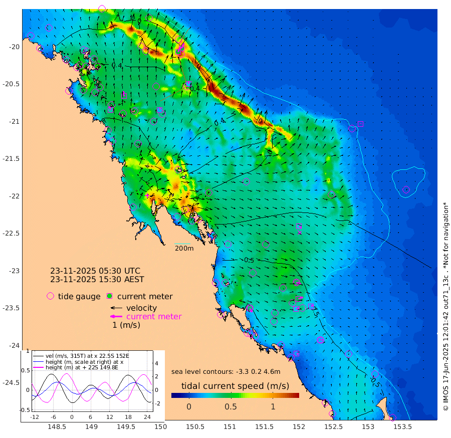31cm/s -12T +10cm/s rms + 2cm/s 5T. Brampton I 18m 42cm/s -8T +9cm/s rms + 6cm/s 66T. Wigton I 38m 16cm/s 17T +7cm/s rms + 8cm/s 141T. Tern I 47m 48cm/s 20T +7cm/s rms + 12cm/s 54T. N Bugatti Rf 64m 50cm/s 31T +3cm/s rms + 13cm/s 178T. W Bugatti Rf 70m 20cm/s 4T +3cm/s rms + 3cm/s -130T. Creal Rf 69m 42cm/s 110T +7cm/s rms + 4cm/s 2T. North Rf 62m 37cm/s 148T +9cm/s rms + 2cm/s -56T. Cape Capricorn 26m 16cm/s 89T +5cm/s rms + 3cm/s 166T. L Musgrave I 42m 15cm/s 121T +9cm/s rms + 1cm/s -142T. Round Hill Hd 26m 4cm/s 44T +41cm/s rms + 48cm/s 116T. GBRELR 305m 26cm/s 117T +7cm/s rms + 6cm/s 123T. GBRCCH 92m 42cm/s 69T +8cm/s rms + 3cm/s -33T. GBRHIN 45m 21cm/s 84T +4cm/s rms + 2cm/s 41T. GBRHIS 46m 19cm/s 49T +16cm/s rms + 4cm/s -22T. GBROTE 59m -15cm Bell Cay 30cm Holbourne I 27cm Tern I 22cm Bugatti Rf 24cm Creal Rf 17cm White Tip I -45cm North Rf -64cm Rundle I -40cm L Musgrave I -23cm Saumarez Reef 14cm Kennedy Reef 10cm Unnamed Reef No. 2 27cm Abbot Point 31cm Bowen 43cm Tideway Reef 29cm Hayman Island 47cm Square Reef 52cm Double Bay 60cm Molle Island 29cm Cid Harbour 44cm Hook Island 39cm Border Island 38cm Haslewood Island 41cm Shute Harbour 45cm Thomas Island 35cm Credlin Reef 47cm East Repulse Island 40cm Blacksmith Island 62cm Laguna Quays 45cm Carlisle Island (Off) 47cm St. Bees Island 35cm Scawfell Island 34cm Penrith Island 50cm Mackay Outer Harbour 47cm Hay Point 48cm Prudhoe Island 10cm Middle Island (Percy Isles) -18cm Gannet Cay -5cm Elusive Reef 88cm Mcewin Islet -17cm Mumford Island -13cm Osborn Island -14cm Marquis Island -16cm Reef Point -14cm High Peak Island -37cm Port Clinton -52cm Peaked Island -51cm Karamea Bank -52cm Johnson Patch - NW -64cm Rosslyn Bay -68cm Middle Island (Keppel Isles) -68cm Port Alma -49cm Heron Island -52cm One Tree Islet -59cm Polmaise Reef -52cm Tryon Island -60cm Rock Cod Shoal -58cm Gatcombe Head -64cm Gladstone -67cm South Trees (Storm Surge) -62cm Clews Point -55cm Round Hill Head -39cm Lady Elliot Island -36cm Breaksea Spit -56cm Bundaberg (Burnett Heads) -63cm Elliot Heads -29cm Waddy Point (Fraser Island)