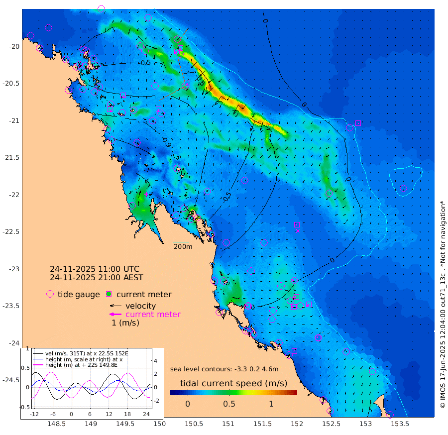 26cm/s 149T +10cm/s rms + 2cm/s 5T. Brampton I 18m 22cm/s 168T +9cm/s rms + 6cm/s 66T. Wigton I 38m 16cm/s -165T +7cm/s rms + 8cm/s 141T. Tern I 47m 23cm/s -155T +7cm/s rms + 12cm/s 54T. N Bugatti Rf 64m 23cm/s -148T +3cm/s rms + 13cm/s 178T. W Bugatti Rf 70m 15cm/s -169T +3cm/s rms + 3cm/s -130T. Creal Rf 69m 19cm/s -70T +7cm/s rms + 4cm/s 2T. North Rf 62m 18cm/s -47T +9cm/s rms + 2cm/s -56T. Cape Capricorn 26m 9cm/s -78T +5cm/s rms + 3cm/s 166T. L Musgrave I 42m 8cm/s -75T +9cm/s rms + 1cm/s -142T. Round Hill Hd 26m 5cm/s 172T +41cm/s rms + 48cm/s 116T. GBRELR 305m 7cm/s -108T +7cm/s rms + 6cm/s 123T. GBRCCH 92m 29cm/s -97T +8cm/s rms + 3cm/s -33T. GBRHIN 45m 18cm/s -96T +4cm/s rms + 2cm/s 41T. GBRHIS 46m 21cm/s -129T +16cm/s rms + 4cm/s -22T. GBROTE 59m -40cm Bell Cay -26cm Holbourne I -75cm Tern I -34cm Bugatti Rf -50cm Creal Rf -22cm White Tip I -4cm North Rf -1cm Rundle I 3cm L Musgrave I 15cm Saumarez Reef -18cm Kennedy Reef -12cm Unnamed Reef No. 2 -21cm Abbot Point -27cm Bowen -44cm Tideway Reef -40cm Hayman Island -55cm Square Reef -40cm Double Bay -59cm Molle Island -44cm Cid Harbour -42cm Hook Island -47cm Border Island -44cm Haslewood Island -50cm Shute Harbour -69cm Thomas Island -63cm Credlin Reef -69cm East Repulse Island -68cm Blacksmith Island -83cm Laguna Quays -66cm Carlisle Island (Off) -63cm St. Bees Island -62cm Scawfell Island -80cm Penrith Island -96cm Mackay Outer Harbour -101cm Hay Point -99cm Prudhoe Island -88cm Middle Island (Percy Isles) -39cm Gannet Cay -5cm Elusive Reef -164cm Mcewin Islet -74cm Mumford Island -89cm Osborn Island -85cm Marquis Island -76cm Reef Point -52cm High Peak Island -38cm Port Clinton -19cm Peaked Island 3cm Karamea Bank -16cm Johnson Patch - NW -15cm Rosslyn Bay -11cm Middle Island (Keppel Isles) -20cm Port Alma 2cm Heron Island -3cm One Tree Islet -1cm Polmaise Reef -10cm Tryon Island 5cm Rock Cod Shoal -5cm Gatcombe Head -8cm Gladstone -2cm South Trees (Storm Surge) 5cm Clews Point 6cm Round Hill Head 6cm Lady Elliot Island -2cm Breaksea Spit 11cm Bundaberg (Burnett Heads) 18cm Elliot Heads -4cm Waddy Point (Fraser Island)