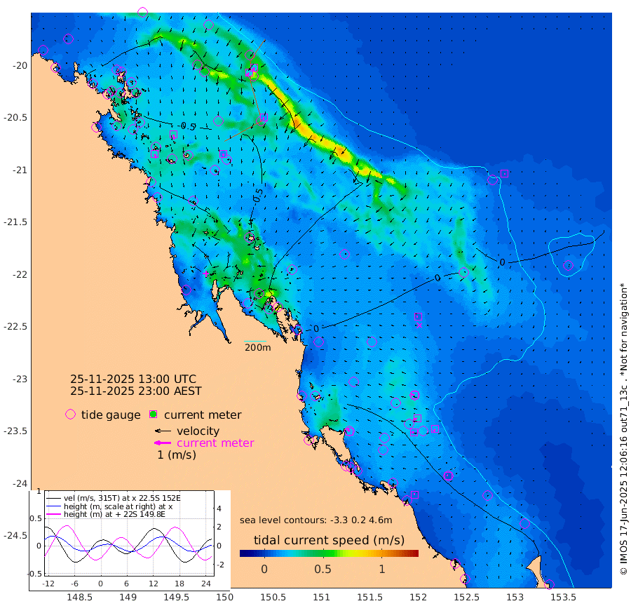 26cm/s 156T +10cm/s rms + 2cm/s 5T. Brampton I 18m 27cm/s 169T +9cm/s rms + 6cm/s 66T. Wigton I 38m 13cm/s -168T +7cm/s rms + 8cm/s 141T. Tern I 47m 24cm/s -157T +7cm/s rms + 12cm/s 54T. N Bugatti Rf 64m 24cm/s -148T +3cm/s rms + 13cm/s 178T. W Bugatti Rf 70m 14cm/s -175T +3cm/s rms + 3cm/s -130T. Creal Rf 69m 19cm/s -69T +7cm/s rms + 4cm/s 2T. North Rf 62m 19cm/s -39T +9cm/s rms + 2cm/s -56T. Cape Capricorn 26m 6cm/s -58T +5cm/s rms + 3cm/s 166T. L Musgrave I 42m 7cm/s -62T +9cm/s rms + 1cm/s -142T. Round Hill Hd 26m 4cm/s 176T +41cm/s rms + 48cm/s 116T. GBRELR 305m 7cm/s -89T +7cm/s rms + 6cm/s 123T. GBRCCH 92m 25cm/s -106T +8cm/s rms + 3cm/s -33T. GBRHIN 45m 14cm/s -97T +4cm/s rms + 2cm/s 41T. GBRHIS 46m 16cm/s -143T +16cm/s rms + 4cm/s -22T. GBROTE 59m -13cm Bell Cay -30cm Holbourne I -44cm Tern I -30cm Bugatti Rf -35cm Creal Rf -25cm White Tip I 9cm North Rf 19cm Rundle I 9cm L Musgrave I 7cm Saumarez Reef -21cm Kennedy Reef -19cm Unnamed Reef No. 2 -29cm Abbot Point -32cm Bowen -44cm Tideway Reef -36cm Hayman Island -51cm Square Reef -42cm Double Bay -59cm Molle Island -36cm Cid Harbour -39cm Hook Island -41cm Border Island -37cm Haslewood Island -43cm Shute Harbour -52cm Thomas Island -45cm Credlin Reef -50cm East Repulse Island -44cm Blacksmith Island -61cm Laguna Quays -45cm Carlisle Island (Off) -36cm St. Bees Island -34cm Scawfell Island -47cm Penrith Island -60cm Mackay Outer Harbour -59cm Hay Point -63cm Prudhoe Island -37cm Middle Island (Percy Isles) -8cm Gannet Cay -11cm Elusive Reef -85cm Mcewin Islet -24cm Mumford Island -27cm Osborn Island -18cm Marquis Island -20cm Reef Point -14cm High Peak Island -1cm Port Clinton 7cm Peaked Island 13cm Karamea Bank 10cm Johnson Patch - NW 17cm Rosslyn Bay 18cm Middle Island (Keppel Isles) 21cm Port Alma 14cm Heron Island 9cm One Tree Islet 16cm Polmaise Reef 8cm Tryon Island 19cm Rock Cod Shoal 19cm Gatcombe Head 23cm Gladstone 25cm South Trees (Storm Surge) 18cm Clews Point 19cm Round Hill Head 10cm Lady Elliot Island 5cm Breaksea Spit 25cm Bundaberg (Burnett Heads) 33cm Elliot Heads -1cm Waddy Point (Fraser Island)