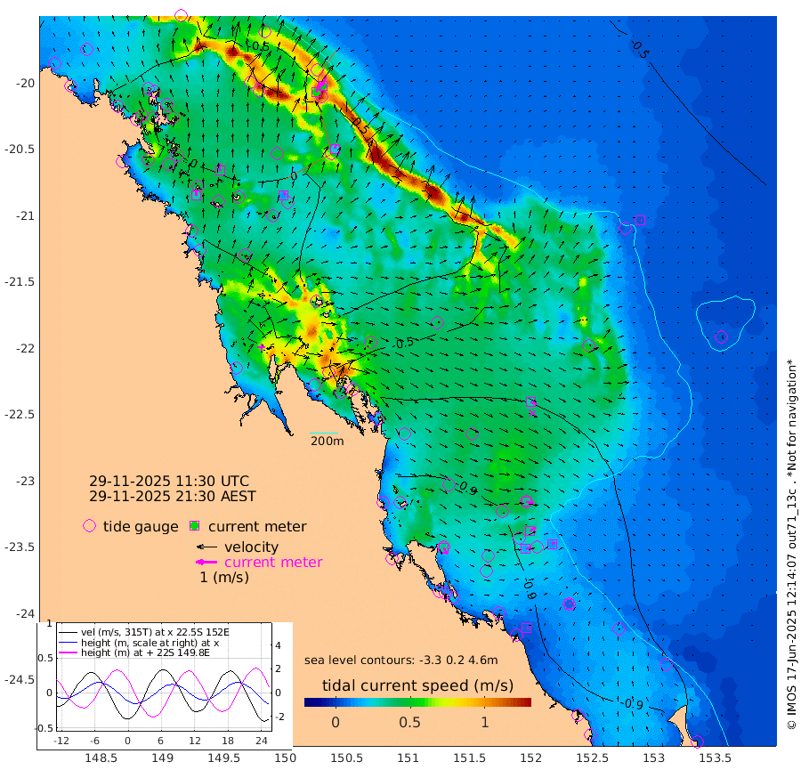 29cm/s 5T +10cm/s rms + 2cm/s 5T. Brampton I 18m 36cm/s -6T +9cm/s rms + 6cm/s 66T. Wigton I 38m 15cm/s 34T +7cm/s rms + 8cm/s 141T. Tern I 47m 50cm/s 16T +7cm/s rms + 12cm/s 54T. N Bugatti Rf 64m 57cm/s 31T +3cm/s rms + 13cm/s 178T. W Bugatti Rf 70m 23cm/s 17T +3cm/s rms + 3cm/s -130T. Creal Rf 69m 35cm/s 99T +7cm/s rms + 4cm/s 2T. North Rf 62m 34cm/s 149T +9cm/s rms + 2cm/s -56T. Cape Capricorn 26m 7cm/s 73T +5cm/s rms + 3cm/s 166T. L Musgrave I 42m 7cm/s 104T +9cm/s rms + 1cm/s -142T. Round Hill Hd 26m 4cm/s 80T +41cm/s rms + 48cm/s 116T. GBRELR 305m 30cm/s 113T +7cm/s rms + 6cm/s 123T. GBRCCH 92m 34cm/s 63T +8cm/s rms + 3cm/s -33T. GBRHIN 45m 16cm/s 83T +4cm/s rms + 2cm/s 41T. GBRHIS 46m 14cm/s 43T +16cm/s rms + 4cm/s -22T. GBROTE 59m -59cm Bell Cay -35cm Holbourne I -25cm Tern I -35cm Bugatti Rf -26cm Creal Rf -43cm White Tip I -86cm North Rf -107cm Rundle I -72cm L Musgrave I -41cm Saumarez Reef -48cm Kennedy Reef -54cm Unnamed Reef No. 2 -38cm Abbot Point -34cm Bowen -20cm Tideway Reef -42cm Hayman Island -14cm Square Reef -38cm Double Bay -30cm Molle Island -24cm Cid Harbour -30cm Hook Island -12cm Border Island -15cm Haslewood Island -22cm Shute Harbour -10cm Thomas Island -24cm Credlin Reef -17cm East Repulse Island -12cm Blacksmith Island 3cm Laguna Quays -19cm Carlisle Island (Off) -21cm St. Bees Island -17cm Scawfell Island -30cm Penrith Island -9cm Mackay Outer Harbour -13cm Hay Point -9cm Prudhoe Island -52cm Middle Island (Percy Isles) -64cm Gannet Cay -55cm Elusive Reef 16cm Mcewin Islet -68cm Mumford Island -61cm Osborn Island -66cm Marquis Island -65cm Reef Point -64cm High Peak Island -93cm Port Clinton -91cm Peaked Island -91cm Karamea Bank -99cm Johnson Patch - NW -111cm Rosslyn Bay -112cm Middle Island (Keppel Isles) -116cm Port Alma -90cm Heron Island -94cm One Tree Islet -95cm Polmaise Reef -95cm Tryon Island -102cm Rock Cod Shoal -100cm Gatcombe Head -105cm Gladstone -107cm South Trees (Storm Surge) -95cm Clews Point -86cm Round Hill Head -70cm Lady Elliot Island -75cm Breaksea Spit -89cm Bundaberg (Burnett Heads) -94cm Elliot Heads -57cm Waddy Point (Fraser Island)