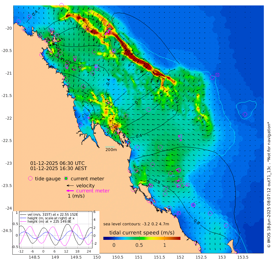 37cm/s 169T +10cm/s rms + 2cm/s 5T. Brampton I 18m 42cm/s 174T +9cm/s rms + 6cm/s 66T. Wigton I 38m 22cm/s -156T +7cm/s rms + 8cm/s 141T. Tern I 47m 57cm/s -160T +7cm/s rms + 12cm/s 54T. N Bugatti Rf 64m 60cm/s -149T +3cm/s rms + 13cm/s 178T. W Bugatti Rf 70m 28cm/s -164T +3cm/s rms + 3cm/s -130T. Creal Rf 69m 39cm/s -80T +7cm/s rms + 4cm/s 2T. North Rf 62m 38cm/s -35T +9cm/s rms + 2cm/s -56T. Cape Capricorn 26m 8cm/s -106T +5cm/s rms + 3cm/s 166T. L Musgrave I 42m 9cm/s -77T +9cm/s rms + 1cm/s -142T. Round Hill Hd 26m 4cm/s -144T +41cm/s rms + 48cm/s 116T. GBRELR 305m 29cm/s -73T +7cm/s rms + 6cm/s 123T. GBRCCH 92m 43cm/s -107T +8cm/s rms + 3cm/s -33T. GBRHIN 45m 26cm/s -96T +4cm/s rms + 2cm/s 41T. GBRHIS 46m 26cm/s -127T +16cm/s rms + 4cm/s -22T. GBROTE 59m 30cm Bell Cay 30cm Holbourne I -17cm Tern I 20cm Bugatti Rf 0cm Creal Rf 34cm White Tip I 73cm North Rf 92cm Rundle I 65cm L Musgrave I 50cm Saumarez Reef 40cm Kennedy Reef 50cm Unnamed Reef No. 2 34cm Abbot Point 26cm Bowen 4cm Tideway Reef 22cm Hayman Island -7cm Square Reef 26cm Double Bay 14cm Molle Island -2cm Cid Harbour 15cm Hook Island -7cm Border Island -4cm Haslewood Island -1cm Shute Harbour -26cm Thomas Island -11cm Credlin Reef -24cm East Repulse Island -33cm Blacksmith Island -43cm Laguna Quays -16cm Carlisle Island (Off) -33cm St. Bees Island -29cm Scawfell Island -13cm Penrith Island -43cm Mackay Outer Harbour -44cm Hay Point -40cm Prudhoe Island 2cm Middle Island (Percy Isles) 37cm Gannet Cay 52cm Elusive Reef -111cm Mcewin Islet 15cm Mumford Island -7cm Osborn Island -6cm Marquis Island 2cm Reef Point 26cm High Peak Island 64cm Port Clinton 69cm Peaked Island 82cm Karamea Bank 78cm Johnson Patch - NW 87cm Rosslyn Bay 90cm Middle Island (Keppel Isles) 88cm Port Alma 79cm Heron Island 82cm One Tree Islet 83cm Polmaise Reef 71cm Tryon Island 92cm Rock Cod Shoal 86cm Gatcombe Head 85cm Gladstone 90cm South Trees (Storm Surge) 85cm Clews Point 77cm Round Hill Head 64cm Lady Elliot Island 61cm Breaksea Spit 83cm Bundaberg (Burnett Heads) 87cm Elliot Heads 46cm Waddy Point (Fraser Island)