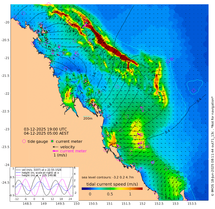 33cm/s 176T +10cm/s rms + 2cm/s 5T. Brampton I 18m 36cm/s -180T +9cm/s rms + 6cm/s 66T. Wigton I 38m 31cm/s -145T +7cm/s rms + 8cm/s 141T. Tern I 47m 59cm/s -156T +7cm/s rms + 12cm/s 54T. N Bugatti Rf 64m 65cm/s -142T +3cm/s rms + 13cm/s 178T. W Bugatti Rf 70m 29cm/s -146T +3cm/s rms + 3cm/s -130T. Creal Rf 69m 76cm/s -75T +7cm/s rms + 4cm/s 2T. North Rf 62m 62cm/s -37T +9cm/s rms + 2cm/s -56T. Cape Capricorn 26m 27cm/s -99T +5cm/s rms + 3cm/s 166T. L Musgrave I 42m 27cm/s -72T +9cm/s rms + 1cm/s -142T. Round Hill Hd 26m 9cm/s -97T +41cm/s rms + 48cm/s 116T. GBRELR 305m 42cm/s -65T +7cm/s rms + 6cm/s 123T. GBRCCH 92m 83cm/s -100T +8cm/s rms + 3cm/s -33T. GBRHIN 45m 52cm/s -92T +4cm/s rms + 2cm/s 41T. GBRHIS 46m 46cm/s -107T +16cm/s rms + 4cm/s -22T. GBROTE 59m -73cm Bell Cay -53cm Holbourne I -162cm Tern I -63cm Bugatti Rf -106cm Creal Rf -31cm White Tip I 34cm North Rf 34cm Rundle I 52cm L Musgrave I 33cm Saumarez Reef -26cm Kennedy Reef -8cm Unnamed Reef No. 2 -51cm Abbot Point -66cm Bowen -93cm Tideway Reef -75cm Hayman Island -128cm Square Reef -81cm Double Bay -116cm Molle Island -118cm Cid Harbour -84cm Hook Island -108cm Border Island -123cm Haslewood Island -114cm Shute Harbour -151cm Thomas Island -143cm Credlin Reef -171cm East Repulse Island -173cm Blacksmith Island -191cm Laguna Quays -169cm Carlisle Island (Off) -193cm St. Bees Island -179cm Scawfell Island -174cm Penrith Island -206cm Mackay Outer Harbour -216cm Hay Point -202cm Prudhoe Island -161cm Middle Island (Percy Isles) -60cm Gannet Cay 35cm Elusive Reef -322cm Mcewin Islet -150cm Mumford Island -190cm Osborn Island -201cm Marquis Island -172cm Reef Point -109cm High Peak Island -50cm Port Clinton -25cm Peaked Island 45cm Karamea Bank 10cm Johnson Patch - NW -5cm Rosslyn Bay 1cm Middle Island (Keppel Isles) -27cm Port Alma 40cm Heron Island 60cm One Tree Islet 45cm Polmaise Reef 29cm Tryon Island 46cm Rock Cod Shoal 20cm Gatcombe Head 4cm Gladstone 20cm South Trees (Storm Surge) 61cm Clews Point 51cm Round Hill Head 57cm Lady Elliot Island 63cm Breaksea Spit 49cm Bundaberg (Burnett Heads) 45cm Elliot Heads 52cm Waddy Point (Fraser Island)