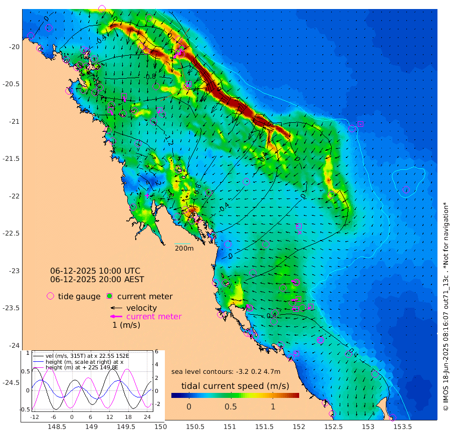 46cm/s 158T +10cm/s rms + 2cm/s 5T. Brampton I 18m 46cm/s 170T +9cm/s rms + 6cm/s 66T. Wigton I 38m 29cm/s -161T +7cm/s rms + 8cm/s 141T. Tern I 47m 60cm/s -158T +7cm/s rms + 12cm/s 54T. N Bugatti Rf 64m 62cm/s -147T +3cm/s rms + 13cm/s 178T. W Bugatti Rf 70m 28cm/s -164T +3cm/s rms + 3cm/s -130T. Creal Rf 69m 44cm/s -72T +7cm/s rms + 4cm/s 2T. North Rf 62m 42cm/s -38T +9cm/s rms + 2cm/s -56T. Cape Capricorn 26m 15cm/s -87T +5cm/s rms + 3cm/s 166T. L Musgrave I 42m 15cm/s -74T +9cm/s rms + 1cm/s -142T. Round Hill Hd 26m 7cm/s -166T +41cm/s rms + 48cm/s 116T. GBRELR 305m 23cm/s -82T +7cm/s rms + 6cm/s 123T. GBRCCH 92m 57cm/s -104T +8cm/s rms + 3cm/s -33T. GBRHIN 45m 35cm/s -95T +4cm/s rms + 2cm/s 41T. GBRHIS 46m 35cm/s -126T +16cm/s rms + 4cm/s -22T. GBROTE 59m -34cm Bell Cay -17cm Holbourne I -94cm Tern I -34cm Bugatti Rf -60cm Creal Rf -14cm White Tip I 26cm North Rf 39cm Rundle I 30cm L Musgrave I 32cm Saumarez Reef 2cm Kennedy Reef 4cm Unnamed Reef No. 2 -17cm Abbot Point -28cm Bowen -55cm Tideway Reef -43cm Hayman Island -72cm Square Reef -38cm Double Bay -69cm Molle Island -64cm Cid Harbour -46cm Hook Island -64cm Border Island -70cm Haslewood Island -65cm Shute Harbour -95cm Thomas Island -89cm Credlin Reef -112cm East Repulse Island -103cm Blacksmith Island -122cm Laguna Quays -105cm Carlisle Island (Off) -112cm St. Bees Island -104cm Scawfell Island -106cm Penrith Island -133cm Mackay Outer Harbour -138cm Hay Point -124cm Prudhoe Island -84cm Middle Island (Percy Isles) -27cm Gannet Cay 14cm Elusive Reef -235cm Mcewin Islet -67cm Mumford Island -107cm Osborn Island -114cm Marquis Island -94cm Reef Point -51cm High Peak Island -8cm Port Clinton 14cm Peaked Island 35cm Karamea Bank 23cm Johnson Patch - NW 22cm Rosslyn Bay 26cm Middle Island (Keppel Isles) 17cm Port Alma 33cm Heron Island 41cm One Tree Islet 42cm Polmaise Reef 19cm Tryon Island 37cm Rock Cod Shoal 31cm Gatcombe Head 28cm Gladstone 37cm South Trees (Storm Surge) 49cm Clews Point 39cm Round Hill Head 31cm Lady Elliot Island 26cm Breaksea Spit 47cm Bundaberg (Burnett Heads) 52cm Elliot Heads 14cm Waddy Point (Fraser Island)