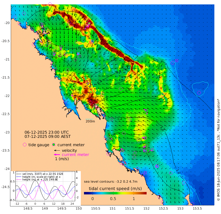 39cm/s -180T +10cm/s rms + 2cm/s 5T. Brampton I 18m 53cm/s 173T +9cm/s rms + 6cm/s 66T. Wigton I 38m 24cm/s -143T +7cm/s rms + 8cm/s 141T. Tern I 47m 65cm/s -164T +7cm/s rms + 12cm/s 54T. N Bugatti Rf 64m 82cm/s -148T +3cm/s rms + 13cm/s 178T. W Bugatti Rf 70m 30cm/s -163T +3cm/s rms + 3cm/s -130T. Creal Rf 69m 54cm/s -83T +7cm/s rms + 4cm/s 2T. North Rf 62m 51cm/s -30T +9cm/s rms + 2cm/s -56T. Cape Capricorn 26m 17cm/s -126T +5cm/s rms + 3cm/s 166T. L Musgrave I 42m 9cm/s -86T +9cm/s rms + 1cm/s -142T. Round Hill Hd 26m 8cm/s -101T +41cm/s rms + 48cm/s 116T. GBRELR 305m 50cm/s -67T +7cm/s rms + 6cm/s 123T. GBRCCH 92m 57cm/s -113T +8cm/s rms + 3cm/s -33T. GBRHIN 45m 33cm/s -95T +4cm/s rms + 2cm/s 41T. GBRHIS 46m 32cm/s -121T +16cm/s rms + 4cm/s -22T. GBROTE 59m 90cm Bell Cay 66cm Holbourne I 38cm Tern I 60cm Bugatti Rf 47cm Creal Rf 73cm White Tip I 139cm North Rf 165cm Rundle I 122cm L Musgrave I 98cm Saumarez Reef 75cm Kennedy Reef 88cm Unnamed Reef No. 2 61cm Abbot Point 54cm Bowen 38cm Tideway Reef 53cm Hayman Island 40cm Square Reef 58cm Double Bay 33cm Molle Island 29cm Cid Harbour 49cm Hook Island 24cm Border Island 18cm Haslewood Island 32cm Shute Harbour 15cm Thomas Island 35cm Credlin Reef 5cm East Repulse Island 2cm Blacksmith Island -10cm Laguna Quays 15cm Carlisle Island (Off) 11cm St. Bees Island 10cm Scawfell Island 26cm Penrith Island 3cm Mackay Outer Harbour 7cm Hay Point 27cm Prudhoe Island 75cm Middle Island (Percy Isles) 86cm Gannet Cay 94cm Elusive Reef -76cm Mcewin Islet 94cm Mumford Island 57cm Osborn Island 58cm Marquis Island 59cm Reef Point 84cm High Peak Island 142cm Port Clinton 159cm Peaked Island 146cm Karamea Bank 158cm Johnson Patch - NW 165cm Rosslyn Bay 171cm Middle Island (Keppel Isles) 166cm Port Alma 142cm Heron Island 163cm One Tree Islet 156cm Polmaise Reef 144cm Tryon Island 155cm Rock Cod Shoal 148cm Gatcombe Head 155cm Gladstone 159cm South Trees (Storm Surge) 155cm Clews Point 140cm Round Hill Head 122cm Lady Elliot Island 122cm Breaksea Spit 141cm Bundaberg (Burnett Heads) 142cm Elliot Heads 101cm Waddy Point (Fraser Island)