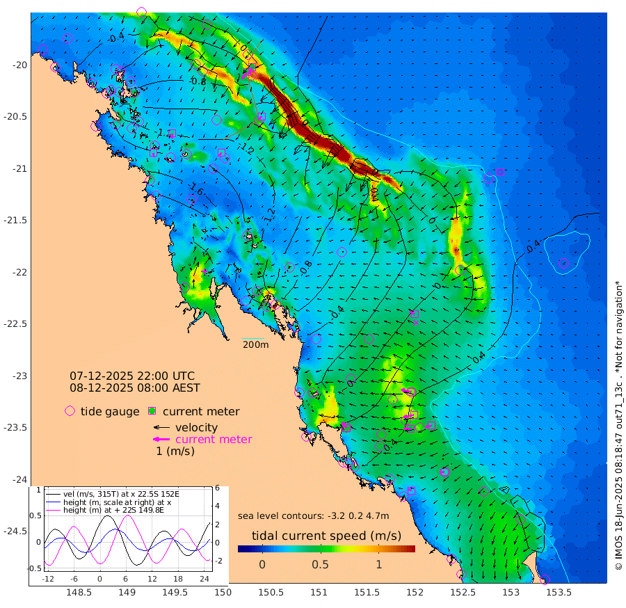 26cm/s 173T +10cm/s rms + 2cm/s 5T. Brampton I 18m 31cm/s -179T +9cm/s rms + 6cm/s 66T. Wigton I 38m 27cm/s -143T +7cm/s rms + 8cm/s 141T. Tern I 47m 49cm/s -154T +7cm/s rms + 12cm/s 54T. N Bugatti Rf 64m 50cm/s -144T +3cm/s rms + 13cm/s 178T. W Bugatti Rf 70m 23cm/s -144T +3cm/s rms + 3cm/s -130T. Creal Rf 69m 63cm/s -76T +7cm/s rms + 4cm/s 2T. North Rf 62m 49cm/s -38T +9cm/s rms + 2cm/s -56T. Cape Capricorn 26m 27cm/s -102T +5cm/s rms + 3cm/s 166T. L Musgrave I 42m 21cm/s -74T +9cm/s rms + 1cm/s -142T. Round Hill Hd 26m 8cm/s -92T +41cm/s rms + 48cm/s 116T. GBRELR 305m 34cm/s -63T +7cm/s rms + 6cm/s 123T. GBRCCH 92m 66cm/s -101T +8cm/s rms + 3cm/s -33T. GBRHIN 45m 43cm/s -91T +4cm/s rms + 2cm/s 41T. GBRHIS 46m 36cm/s -101T +16cm/s rms + 4cm/s -22T. GBROTE 59m -51cm Bell Cay -39cm Holbourne I -124cm Tern I -43cm Bugatti Rf -76cm Creal Rf -17cm White Tip I 37cm North Rf 35cm Rundle I 52cm L Musgrave I 38cm Saumarez Reef -19cm Kennedy Reef -3cm Unnamed Reef No. 2 -39cm Abbot Point -51cm Bowen -73cm Tideway Reef -59cm Hayman Island -92cm Square Reef -66cm Double Bay -86cm Molle Island -88cm Cid Harbour -66cm Hook Island -84cm Border Island -95cm Haslewood Island -89cm Shute Harbour -116cm Thomas Island -113cm Credlin Reef -141cm East Repulse Island -131cm Blacksmith Island -150cm Laguna Quays -140cm Carlisle Island (Off) -151cm St. Bees Island -130cm Scawfell Island -136cm Penrith Island -163cm Mackay Outer Harbour -171cm Hay Point -156cm Prudhoe Island -122cm Middle Island (Percy Isles) -45cm Gannet Cay 32cm Elusive Reef -275cm Mcewin Islet -107cm Mumford Island -149cm Osborn Island -160cm Marquis Island -137cm Reef Point -85cm High Peak Island -36cm Port Clinton -9cm Peaked Island 42cm Karamea Bank 20cm Johnson Patch - NW 2cm Rosslyn Bay 6cm Middle Island (Keppel Isles) -18cm Port Alma 44cm Heron Island 61cm One Tree Islet 47cm Polmaise Reef 36cm Tryon Island 40cm Rock Cod Shoal 23cm Gatcombe Head 8cm Gladstone 22cm South Trees (Storm Surge) 60cm Clews Point 52cm Round Hill Head 56cm Lady Elliot Island 62cm Breaksea Spit 46cm Bundaberg (Burnett Heads) 47cm Elliot Heads 55cm Waddy Point (Fraser Island)