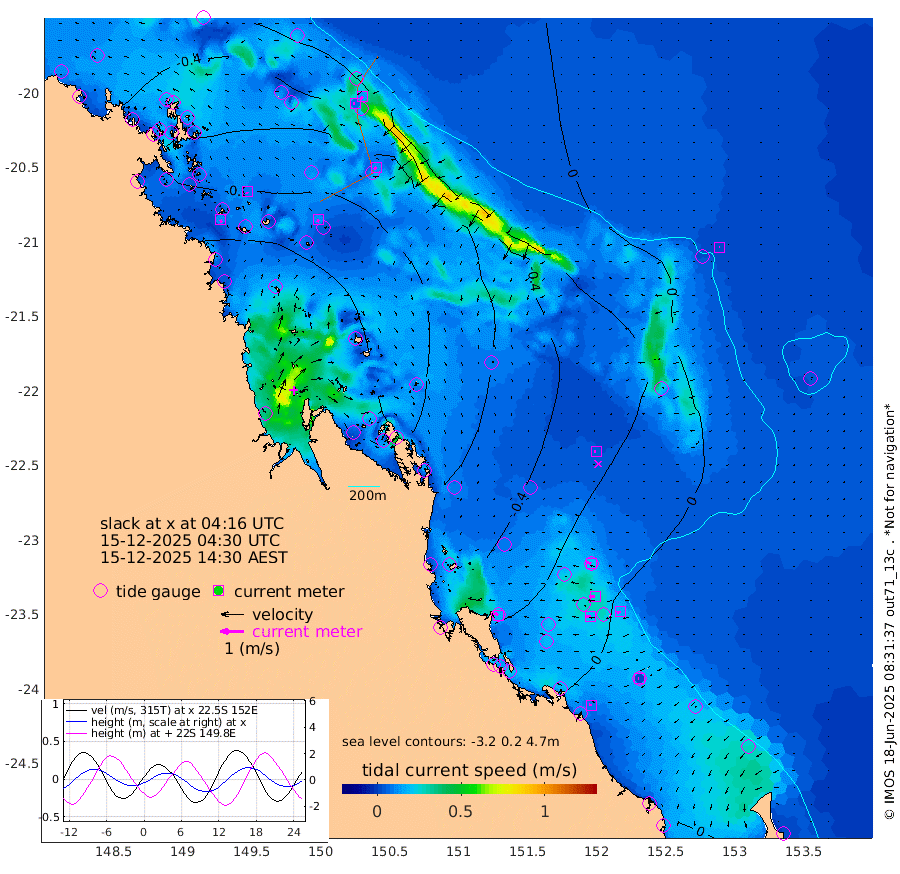 11cm/s 154T +10cm/s rms + 2cm/s 5T. Brampton I 18m 8cm/s -164T +9cm/s rms + 6cm/s 66T. Wigton I 38m 12cm/s -156T +7cm/s rms + 8cm/s 141T. Tern I 47m 14cm/s -137T +7cm/s rms + 12cm/s 54T. N Bugatti Rf 64m 6cm/s -87T +3cm/s rms + 13cm/s 178T. W Bugatti Rf 70m 12cm/s -135T +3cm/s rms + 3cm/s -130T. Creal Rf 69m 21cm/s -73T +7cm/s rms + 4cm/s 2T. North Rf 62m 17cm/s -58T +9cm/s rms + 2cm/s -56T. Cape Capricorn 26m 3cm/s -110T +5cm/s rms + 3cm/s 166T. L Musgrave I 42m 10cm/s -83T +9cm/s rms + 1cm/s -142T. Round Hill Hd 26m 2cm/s -118T +41cm/s rms + 48cm/s 116T. GBRELR 305m 5cm/s -90T +7cm/s rms + 6cm/s 123T. GBRCCH 92m 27cm/s -90T +8cm/s rms + 3cm/s -33T. GBRHIN 45m 20cm/s -92T +4cm/s rms + 2cm/s 41T. GBRHIS 46m 17cm/s -100T +16cm/s rms + 4cm/s -22T. GBROTE 59m -59cm Bell Cay -39cm Holbourne I -96cm Tern I -38cm Bugatti Rf -62cm Creal Rf -22cm White Tip I -10cm North Rf -20cm Rundle I 5cm L Musgrave I 4cm Saumarez Reef -19cm Kennedy Reef -17cm Unnamed Reef No. 2 -34cm Abbot Point -40cm Bowen -52cm Tideway Reef -44cm Hayman Island -67cm Square Reef -63cm Double Bay -44cm Molle Island -53cm Cid Harbour -54cm Hook Island -51cm Border Island -57cm Haslewood Island -62cm Shute Harbour -81cm Thomas Island -81cm Credlin Reef -91cm East Repulse Island -76cm Blacksmith Island -95cm Laguna Quays -91cm Carlisle Island (Off) -110cm St. Bees Island -91cm Scawfell Island -87cm Penrith Island -111cm Mackay Outer Harbour -119cm Hay Point -129cm Prudhoe Island -103cm Middle Island (Percy Isles) -46cm Gannet Cay 5cm Elusive Reef -159cm Mcewin Islet -101cm Mumford Island -107cm Osborn Island -118cm Marquis Island -98cm Reef Point -74cm High Peak Island -66cm Port Clinton -62cm Peaked Island -8cm Karamea Bank -24cm Johnson Patch - NW -40cm Rosslyn Bay -43cm Middle Island (Keppel Isles) -49cm Port Alma -2cm Heron Island -3cm One Tree Islet -7cm Polmaise Reef -7cm Tryon Island -7cm Rock Cod Shoal -16cm Gatcombe Head -26cm Gladstone -20cm South Trees (Storm Surge) 2cm Clews Point 3cm Round Hill Head 7cm Lady Elliot Island 12cm Breaksea Spit 5cm Bundaberg (Burnett Heads) 9cm Elliot Heads 8cm Waddy Point (Fraser Island)