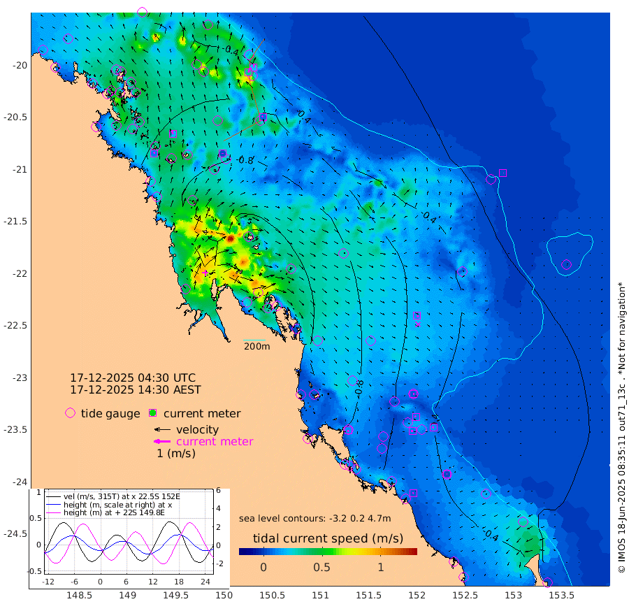 9cm/s 15T +10cm/s rms + 2cm/s 5T. Brampton I 18m 19cm/s -17T +9cm/s rms + 6cm/s 66T. Wigton I 38m 2cm/s -158T +7cm/s rms + 8cm/s 141T. Tern I 47m 20cm/s 6T +7cm/s rms + 12cm/s 54T. N Bugatti Rf 64m 33cm/s 26T +3cm/s rms + 13cm/s 178T. W Bugatti Rf 70m 7cm/s -53T +3cm/s rms + 3cm/s -130T. Creal Rf 69m 5cm/s 85T +7cm/s rms + 4cm/s 2T. North Rf 62m 11cm/s -166T +9cm/s rms + 2cm/s -56T. Cape Capricorn 26m 3cm/s 81T +5cm/s rms + 3cm/s 166T. L Musgrave I 42m 5cm/s -107T +9cm/s rms + 1cm/s -142T. Round Hill Hd 26m 1cm/s 82T +41cm/s rms + 48cm/s 116T. GBRELR 305m 13cm/s 125T +7cm/s rms + 6cm/s 123T. GBRCCH 92m 9cm/s -42T +8cm/s rms + 3cm/s -33T. GBRHIN 45m 9cm/s -89T +4cm/s rms + 2cm/s 41T. GBRHIS 46m 10cm/s -66T +16cm/s rms + 4cm/s -22T. GBROTE 59m -84cm Bell Cay -45cm Holbourne I -97cm Tern I -43cm Bugatti Rf -65cm Creal Rf -33cm White Tip I -53cm North Rf -76cm Rundle I -32cm L Musgrave I -19cm Saumarez Reef -34cm Kennedy Reef -30cm Unnamed Reef No. 2 -36cm Abbot Point -39cm Bowen -45cm Tideway Reef -47cm Hayman Island -61cm Square Reef -57cm Double Bay -38cm Molle Island -49cm Cid Harbour -47cm Hook Island -44cm Border Island -45cm Haslewood Island -54cm Shute Harbour -68cm Thomas Island -73cm Credlin Reef -67cm East Repulse Island -67cm Blacksmith Island -73cm Laguna Quays -72cm Carlisle Island (Off) -87cm St. Bees Island -81cm Scawfell Island -89cm Penrith Island -98cm Mackay Outer Harbour -108cm Hay Point -122cm Prudhoe Island -130cm Middle Island (Percy Isles) -76cm Gannet Cay -13cm Elusive Reef -127cm Mcewin Islet -142cm Mumford Island -133cm Osborn Island -138cm Marquis Island -121cm Reef Point -99cm High Peak Island -112cm Port Clinton -111cm Peaked Island -50cm Karamea Bank -81cm Johnson Patch - NW -98cm Rosslyn Bay -99cm Middle Island (Keppel Isles) -110cm Port Alma -47cm Heron Island -59cm One Tree Islet -63cm Polmaise Reef -53cm Tryon Island -53cm Rock Cod Shoal -69cm Gatcombe Head -82cm Gladstone -77cm South Trees (Storm Surge) -53cm Clews Point -44cm Round Hill Head -27cm Lady Elliot Island -25cm Breaksea Spit -44cm Bundaberg (Burnett Heads) -43cm Elliot Heads -20cm Waddy Point (Fraser Island)