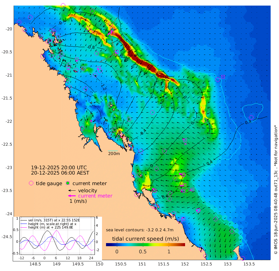 25cm/s -179T +10cm/s rms + 2cm/s 5T. Brampton I 18m 30cm/s 180T +9cm/s rms + 6cm/s 66T. Wigton I 38m 23cm/s -145T +7cm/s rms + 8cm/s 141T. Tern I 47m 45cm/s -155T +7cm/s rms + 12cm/s 54T. N Bugatti Rf 64m 51cm/s -142T +3cm/s rms + 13cm/s 178T. W Bugatti Rf 70m 22cm/s -153T +3cm/s rms + 3cm/s -130T. Creal Rf 69m 61cm/s -74T +7cm/s rms + 4cm/s 2T. North Rf 62m 45cm/s -37T +9cm/s rms + 2cm/s -56T. Cape Capricorn 26m 23cm/s -98T +5cm/s rms + 3cm/s 166T. L Musgrave I 42m 19cm/s -70T +9cm/s rms + 1cm/s -142T. Round Hill Hd 26m 8cm/s -91T +41cm/s rms + 48cm/s 116T. GBRELR 305m 34cm/s -64T +7cm/s rms + 6cm/s 123T. GBRCCH 92m 62cm/s -102T +8cm/s rms + 3cm/s -33T. GBRHIN 45m 38cm/s -92T +4cm/s rms + 2cm/s 41T. GBRHIS 46m 32cm/s -106T +16cm/s rms + 4cm/s -22T. GBROTE 59m -35cm Bell Cay -34cm Holbourne I -99cm Tern I -33cm Bugatti Rf -63cm Creal Rf -11cm White Tip I 42cm North Rf 44cm Rundle I 52cm L Musgrave I 31cm Saumarez Reef -14cm Kennedy Reef 5cm Unnamed Reef No. 2 -24cm Abbot Point -34cm Bowen -57cm Tideway Reef -38cm Hayman Island -80cm Square Reef -53cm Double Bay -67cm Molle Island -59cm Cid Harbour -56cm Hook Island -61cm Border Island -68cm Haslewood Island -67cm Shute Harbour -92cm Thomas Island -82cm Credlin Reef -96cm East Repulse Island -94cm Blacksmith Island -119cm Laguna Quays -99cm Carlisle Island (Off) -110cm St. Bees Island -96cm Scawfell Island -102cm Penrith Island -128cm Mackay Outer Harbour -134cm Hay Point -138cm Prudhoe Island -105cm Middle Island (Percy Isles) -28cm Gannet Cay 34cm Elusive Reef -213cm Mcewin Islet -83cm Mumford Island -98cm Osborn Island -103cm Marquis Island -84cm Reef Point -57cm High Peak Island -26cm Port Clinton -5cm Peaked Island 48cm Karamea Bank 20cm Johnson Patch - NW 18cm Rosslyn Bay 22cm Middle Island (Keppel Isles) 3cm Port Alma 47cm Heron Island 55cm One Tree Islet 46cm Polmaise Reef 45cm Tryon Island 54cm Rock Cod Shoal 31cm Gatcombe Head 22cm Gladstone 33cm South Trees (Storm Surge) 58cm Clews Point 52cm Round Hill Head 53cm Lady Elliot Island 59cm Breaksea Spit 49cm Bundaberg (Burnett Heads) 53cm Elliot Heads 50cm Waddy Point (Fraser Island)