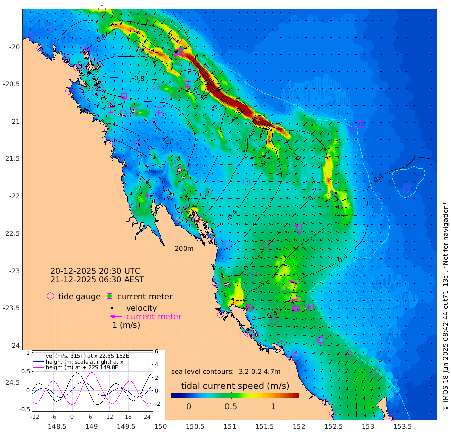 25cm/s -179T +10cm/s rms + 2cm/s 5T. Brampton I 18m 29cm/s 180T +9cm/s rms + 6cm/s 66T. Wigton I 38m 23cm/s -146T +7cm/s rms + 8cm/s 141T. Tern I 47m 46cm/s -155T +7cm/s rms + 12cm/s 54T. N Bugatti Rf 64m 51cm/s -144T +3cm/s rms + 13cm/s 178T. W Bugatti Rf 70m 21cm/s -151T +3cm/s rms + 3cm/s -130T. Creal Rf 69m 61cm/s -74T +7cm/s rms + 4cm/s 2T. North Rf 62m 45cm/s -37T +9cm/s rms + 2cm/s -56T. Cape Capricorn 26m 24cm/s -99T +5cm/s rms + 3cm/s 166T. L Musgrave I 42m 20cm/s -70T +9cm/s rms + 1cm/s -142T. Round Hill Hd 26m 7cm/s -93T +41cm/s rms + 48cm/s 116T. GBRELR 305m 34cm/s -64T +7cm/s rms + 6cm/s 123T. GBRCCH 92m 61cm/s -101T +8cm/s rms + 3cm/s -33T. GBRHIN 45m 38cm/s -92T +4cm/s rms + 2cm/s 41T. GBRHIS 46m 32cm/s -105T +16cm/s rms + 4cm/s -22T. GBROTE 59m -36cm Bell Cay -31cm Holbourne I -100cm Tern I -32cm Bugatti Rf -63cm Creal Rf -10cm White Tip I 41cm North Rf 43cm Rundle I 52cm L Musgrave I 33cm Saumarez Reef -13cm Kennedy Reef 8cm Unnamed Reef No. 2 -21cm Abbot Point -31cm Bowen -55cm Tideway Reef -38cm Hayman Island -79cm Square Reef -49cm Double Bay -65cm Molle Island -59cm Cid Harbour -54cm Hook Island -62cm Border Island -66cm Haslewood Island -66cm Shute Harbour -91cm Thomas Island -82cm Credlin Reef -95cm East Repulse Island -97cm Blacksmith Island -119cm Laguna Quays -99cm Carlisle Island (Off) -114cm St. Bees Island -101cm Scawfell Island -106cm Penrith Island -130cm Mackay Outer Harbour -137cm Hay Point -138cm Prudhoe Island -109cm Middle Island (Percy Isles) -31cm Gannet Cay 36cm Elusive Reef -223cm Mcewin Islet -91cm Mumford Island -107cm Osborn Island -113cm Marquis Island -90cm Reef Point -60cm High Peak Island -27cm Port Clinton -5cm Peaked Island 50cm Karamea Bank 18cm Johnson Patch - NW 16cm Rosslyn Bay 22cm Middle Island (Keppel Isles) 0cm Port Alma 46cm Heron Island 54cm One Tree Islet 45cm Polmaise Reef 44cm Tryon Island 56cm Rock Cod Shoal 30cm Gatcombe Head 19cm Gladstone 32cm South Trees (Storm Surge) 57cm Clews Point 52cm Round Hill Head 54cm Lady Elliot Island 59cm Breaksea Spit 48cm Bundaberg (Burnett Heads) 51cm Elliot Heads 51cm Waddy Point (Fraser Island)