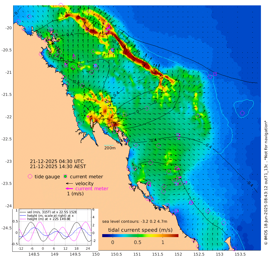 37cm/s -11T +10cm/s rms + 2cm/s 5T. Brampton I 18m 49cm/s -8T +9cm/s rms + 6cm/s 66T. Wigton I 38m 21cm/s 21T +7cm/s rms + 8cm/s 141T. Tern I 47m 60cm/s 20T +7cm/s rms + 12cm/s 54T. N Bugatti Rf 64m 65cm/s 31T +3cm/s rms + 13cm/s 178T. W Bugatti Rf 70m 25cm/s 9T +3cm/s rms + 3cm/s -130T. Creal Rf 69m 52cm/s 108T +7cm/s rms + 4cm/s 2T. North Rf 62m 46cm/s 148T +9cm/s rms + 2cm/s -56T. Cape Capricorn 26m 17cm/s 89T +5cm/s rms + 3cm/s 166T. L Musgrave I 42m 17cm/s 123T +9cm/s rms + 1cm/s -142T. Round Hill Hd 26m 5cm/s 47T +41cm/s rms + 48cm/s 116T. GBRELR 305m 32cm/s 116T +7cm/s rms + 6cm/s 123T. GBRCCH 92m 53cm/s 70T +8cm/s rms + 3cm/s -33T. GBRHIN 45m 27cm/s 84T +4cm/s rms + 2cm/s 41T. GBRHIS 46m 24cm/s 53T +16cm/s rms + 4cm/s -22T. GBROTE 59m -12cm Bell Cay 25cm Holbourne I 39cm Tern I 23cm Bugatti Rf 32cm Creal Rf 13cm White Tip I -53cm North Rf -74cm Rundle I -47cm L Musgrave I -26cm Saumarez Reef 6cm Kennedy Reef 1cm Unnamed Reef No. 2 21cm Abbot Point 27cm Bowen 46cm Tideway Reef 27cm Hayman Island 54cm Square Reef 50cm Double Bay 61cm Molle Island 33cm Cid Harbour 44cm Hook Island 44cm Border Island 45cm Haslewood Island 45cm Shute Harbour 56cm Thomas Island 44cm Credlin Reef 57cm East Repulse Island 52cm Blacksmith Island 77cm Laguna Quays 56cm Carlisle Island (Off) 64cm St. Bees Island 48cm Scawfell Island 45cm Penrith Island 67cm Mackay Outer Harbour 64cm Hay Point 65cm Prudhoe Island 23cm Middle Island (Percy Isles) -17cm Gannet Cay -13cm Elusive Reef 123cm Mcewin Islet -11cm Mumford Island -2cm Osborn Island 1cm Marquis Island -5cm Reef Point -8cm High Peak Island -38cm Port Clinton -55cm Peaked Island -60cm Karamea Bank -56cm Johnson Patch - NW -71cm Rosslyn Bay -75cm Middle Island (Keppel Isles) -72cm Port Alma -56cm Heron Island -63cm One Tree Islet -67cm Polmaise Reef -59cm Tryon Island -69cm Rock Cod Shoal -65cm Gatcombe Head -69cm Gladstone -74cm South Trees (Storm Surge) -73cm Clews Point -63cm Round Hill Head -46cm Lady Elliot Island -44cm Breaksea Spit -64cm Bundaberg (Burnett Heads) -70cm Elliot Heads -35cm Waddy Point (Fraser Island)