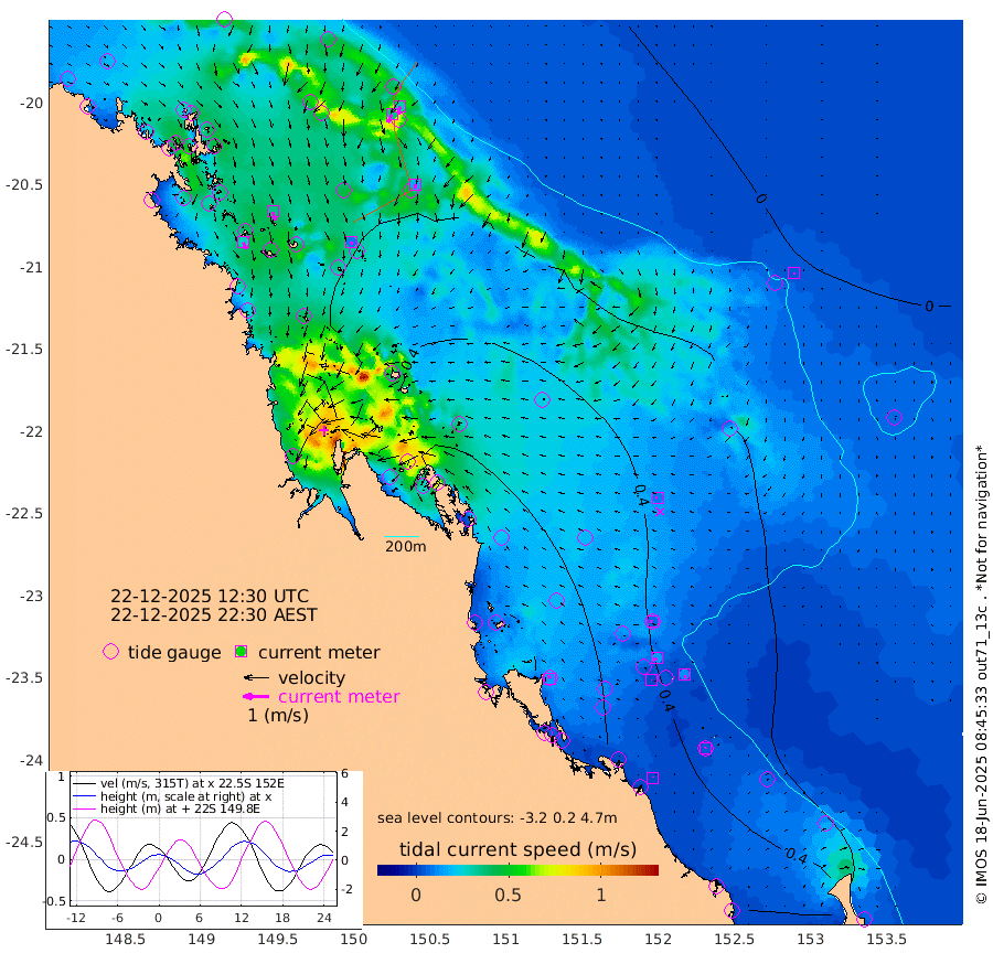 27cm/s 159T +10cm/s rms + 2cm/s 5T. Brampton I 18m 35cm/s 167T +9cm/s rms + 6cm/s 66T. Wigton I 38m 9cm/s 174T +7cm/s rms + 8cm/s 141T. Tern I 47m 31cm/s -167T +7cm/s rms + 12cm/s 54T. N Bugatti Rf 64m 35cm/s -154T +3cm/s rms + 13cm/s 178T. W Bugatti Rf 70m 16cm/s 168T +3cm/s rms + 3cm/s -130T. Creal Rf 69m 8cm/s -76T +7cm/s rms + 4cm/s 2T. North Rf 62m 15cm/s -23T +9cm/s rms + 2cm/s -56T. Cape Capricorn 26m 4cm/s 42T +5cm/s rms + 3cm/s 166T. L Musgrave I 42m 3cm/s 5T +9cm/s rms + 1cm/s -142T. Round Hill Hd 26m 5cm/s 158T +41cm/s rms + 48cm/s 116T. GBRELR 305m 9cm/s -80T +7cm/s rms + 6cm/s 123T. GBRCCH 92m 14cm/s -135T +8cm/s rms + 3cm/s -33T. GBRHIN 45m 2cm/s -130T +4cm/s rms + 2cm/s 41T. GBRHIS 46m 13cm/s 171T +16cm/s rms + 4cm/s -22T. GBROTE 59m 50cm Bell Cay 7cm Holbourne I 41cm Tern I 10cm Bugatti Rf 22cm Creal Rf 4cm White Tip I 36cm North Rf 60cm Rundle I 20cm L Musgrave I 13cm Saumarez Reef 14cm Kennedy Reef 4cm Unnamed Reef No. 2 6cm Abbot Point 7cm Bowen 2cm Tideway Reef 12cm Hayman Island 13cm Square Reef -2cm Double Bay -6cm Molle Island 21cm Cid Harbour 5cm Hook Island 10cm Border Island 14cm Haslewood Island 12cm Shute Harbour 15cm Thomas Island 26cm Credlin Reef 21cm East Repulse Island 29cm Blacksmith Island 15cm Laguna Quays 27cm Carlisle Island (Off) 41cm St. Bees Island 43cm Scawfell Island 43cm Penrith Island 32cm Mackay Outer Harbour 40cm Hay Point 37cm Prudhoe Island 64cm Middle Island (Percy Isles) 51cm Gannet Cay -5cm Elusive Reef 39cm Mcewin Islet 92cm Mumford Island 94cm Osborn Island 101cm Marquis Island 87cm Reef Point 66cm High Peak Island 72cm Port Clinton 75cm Peaked Island 38cm Karamea Bank 59cm Johnson Patch - NW 79cm Rosslyn Bay 79cm Middle Island (Keppel Isles) 94cm Port Alma 38cm Heron Island 36cm One Tree Islet 49cm Polmaise Reef 41cm Tryon Island 45cm Rock Cod Shoal 60cm Gatcombe Head 75cm Gladstone 70cm South Trees (Storm Surge) 45cm Clews Point 39cm Round Hill Head 17cm Lady Elliot Island 10cm Breaksea Spit 46cm Bundaberg (Burnett Heads) 55cm Elliot Heads 3cm Waddy Point (Fraser Island)