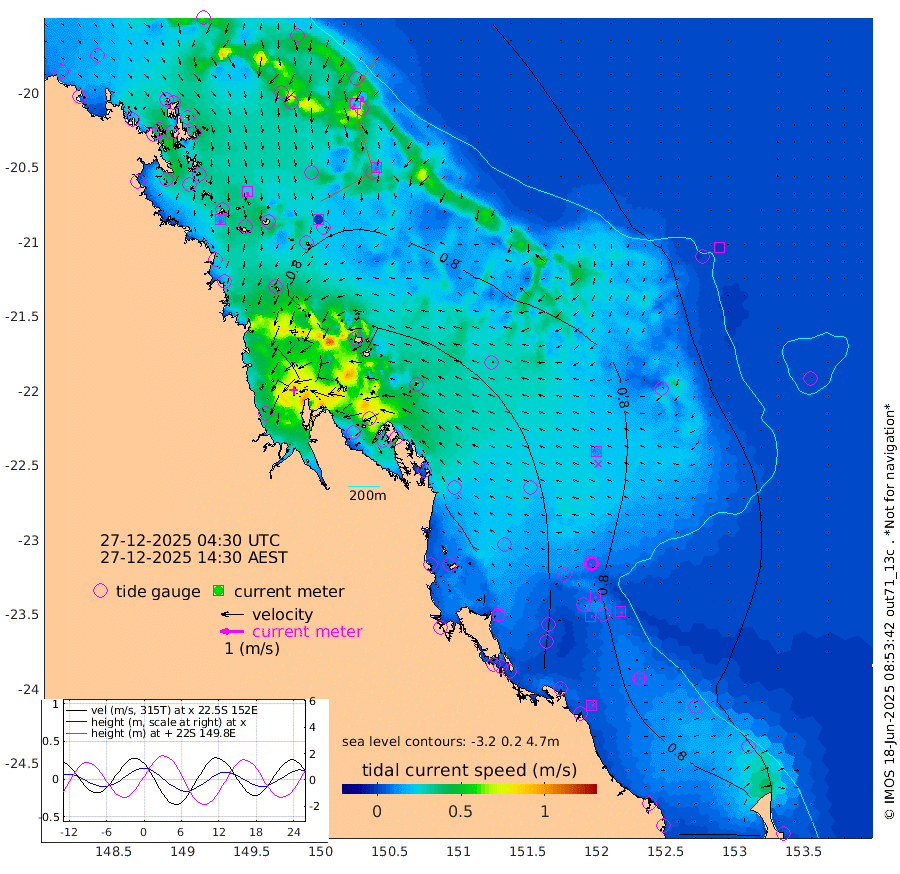 15cm/s -174T +10cm/s rms + 2cm/s 5T. Brampton I 18m 23cm/s 171T +9cm/s rms + 6cm/s 66T. Wigton I 38m 1cm/s 145T +7cm/s rms + 8cm/s 141T. Tern I 47m 21cm/s -174T +7cm/s rms + 12cm/s 54T. N Bugatti Rf 64m 25cm/s -152T +3cm/s rms + 13cm/s 178T. W Bugatti Rf 70m 13cm/s 173T +3cm/s rms + 3cm/s -130T. Creal Rf 69m 6cm/s -159T +7cm/s rms + 4cm/s 2T. North Rf 62m 9cm/s -13T +9cm/s rms + 2cm/s -56T. Cape Capricorn 26m 9cm/s 116T +5cm/s rms + 3cm/s 166T. L Musgrave I 42m 6cm/s 122T +9cm/s rms + 1cm/s -142T. Round Hill Hd 26m 0cm/s 173T +41cm/s rms + 48cm/s 116T. GBRELR 305m 14cm/s -71T +7cm/s rms + 6cm/s 123T. GBRCCH 92m 7cm/s 139T +8cm/s rms + 3cm/s -33T. GBRHIN 45m 5cm/s 104T +4cm/s rms + 2cm/s 41T. GBRHIS 46m 7cm/s 138T +16cm/s rms + 4cm/s -22T. GBROTE 59m 104cm Bell Cay 70cm Holbourne I 107cm Tern I 75cm Bugatti Rf 85cm Creal Rf 68cm White Tip I 87cm North Rf 109cm Rundle I 64cm L Musgrave I 49cm Saumarez Reef 65cm Kennedy Reef 67cm Unnamed Reef No. 2 70cm Abbot Point 72cm Bowen 72cm Tideway Reef 82cm Hayman Island 87cm Square Reef 78cm Double Bay 94cm Molle Island 84cm Cid Harbour 76cm Hook Island 74cm Border Island 81cm Haslewood Island 81cm Shute Harbour 83cm Thomas Island 100cm Credlin Reef 98cm East Repulse Island 90cm Blacksmith Island 89cm Laguna Quays 106cm Carlisle Island (Off) 100cm St. Bees Island 94cm Scawfell Island 119cm Penrith Island 108cm Mackay Outer Harbour 116cm Hay Point 109cm Prudhoe Island 137cm Middle Island (Percy Isles) 104cm Gannet Cay 53cm Elusive Reef 129cm Mcewin Islet 143cm Mumford Island 152cm Osborn Island 161cm Marquis Island 147cm Reef Point 126cm High Peak Island 132cm Port Clinton 119cm Peaked Island 88cm Karamea Bank 113cm Johnson Patch - NW 131cm Rosslyn Bay 130cm Middle Island (Keppel Isles) 148cm Port Alma 89cm Heron Island 85cm One Tree Islet 92cm Polmaise Reef 94cm Tryon Island 101cm Rock Cod Shoal 109cm Gatcombe Head 123cm Gladstone 116cm South Trees (Storm Surge) 83cm Clews Point 80cm Round Hill Head 60cm Lady Elliot Island 56cm Breaksea Spit 86cm Bundaberg (Burnett Heads) 90cm Elliot Heads 45cm Waddy Point (Fraser Island)