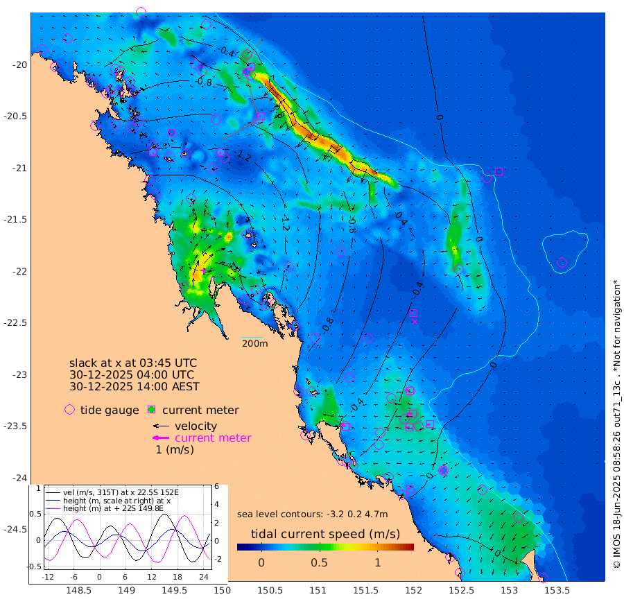 15cm/s 152T +10cm/s rms + 2cm/s 5T. Brampton I 18m 8cm/s -166T +9cm/s rms + 6cm/s 66T. Wigton I 38m 16cm/s -152T +7cm/s rms + 8cm/s 141T. Tern I 47m 19cm/s -139T +7cm/s rms + 12cm/s 54T. N Bugatti Rf 64m 8cm/s -118T +3cm/s rms + 13cm/s 178T. W Bugatti Rf 70m 14cm/s -128T +3cm/s rms + 3cm/s -130T. Creal Rf 69m 27cm/s -73T +7cm/s rms + 4cm/s 2T. North Rf 62m 22cm/s -55T +9cm/s rms + 2cm/s -56T. Cape Capricorn 26m 10cm/s -91T +5cm/s rms + 3cm/s 166T. L Musgrave I 42m 13cm/s -87T +9cm/s rms + 1cm/s -142T. Round Hill Hd 26m 2cm/s -124T +41cm/s rms + 48cm/s 116T. GBRELR 305m 8cm/s -89T +7cm/s rms + 6cm/s 123T. GBRCCH 92m 36cm/s -93T +8cm/s rms + 3cm/s -33T. GBRHIN 45m 27cm/s -92T +4cm/s rms + 2cm/s 41T. GBRHIS 46m 24cm/s -101T +16cm/s rms + 4cm/s -22T. GBROTE 59m -82cm Bell Cay -47cm Holbourne I -131cm Tern I -54cm Bugatti Rf -84cm Creal Rf -33cm White Tip I -18cm North Rf -30cm Rundle I 2cm L Musgrave I 4cm Saumarez Reef -32cm Kennedy Reef -24cm Unnamed Reef No. 2 -49cm Abbot Point -57cm Bowen -71cm Tideway Reef -66cm Hayman Island -94cm Square Reef -58cm Double Bay -72cm Molle Island -91cm Cid Harbour -63cm Hook Island -84cm Border Island -87cm Haslewood Island -87cm Shute Harbour -112cm Thomas Island -116cm Credlin Reef -131cm East Repulse Island -124cm Blacksmith Island -132cm Laguna Quays -127cm Carlisle Island (Off) -139cm St. Bees Island -131cm Scawfell Island -133cm Penrith Island -153cm Mackay Outer Harbour -163cm Hay Point -157cm Prudhoe Island -133cm Middle Island (Percy Isles) -69cm Gannet Cay 3cm Elusive Reef -221cm Mcewin Islet -149cm Mumford Island -176cm Osborn Island -181cm Marquis Island -160cm Reef Point -106cm High Peak Island -79cm Port Clinton -73cm Peaked Island -13cm Karamea Bank -34cm Johnson Patch - NW -59cm Rosslyn Bay -60cm Middle Island (Keppel Isles) -73cm Port Alma -8cm Heron Island -8cm One Tree Islet -14cm Polmaise Reef -24cm Tryon Island -17cm Rock Cod Shoal -28cm Gatcombe Head -43cm Gladstone -33cm South Trees (Storm Surge) -5cm Clews Point -4cm Round Hill Head 7cm Lady Elliot Island 10cm Breaksea Spit -1cm Bundaberg (Burnett Heads) -1cm Elliot Heads 6cm Waddy Point (Fraser Island)