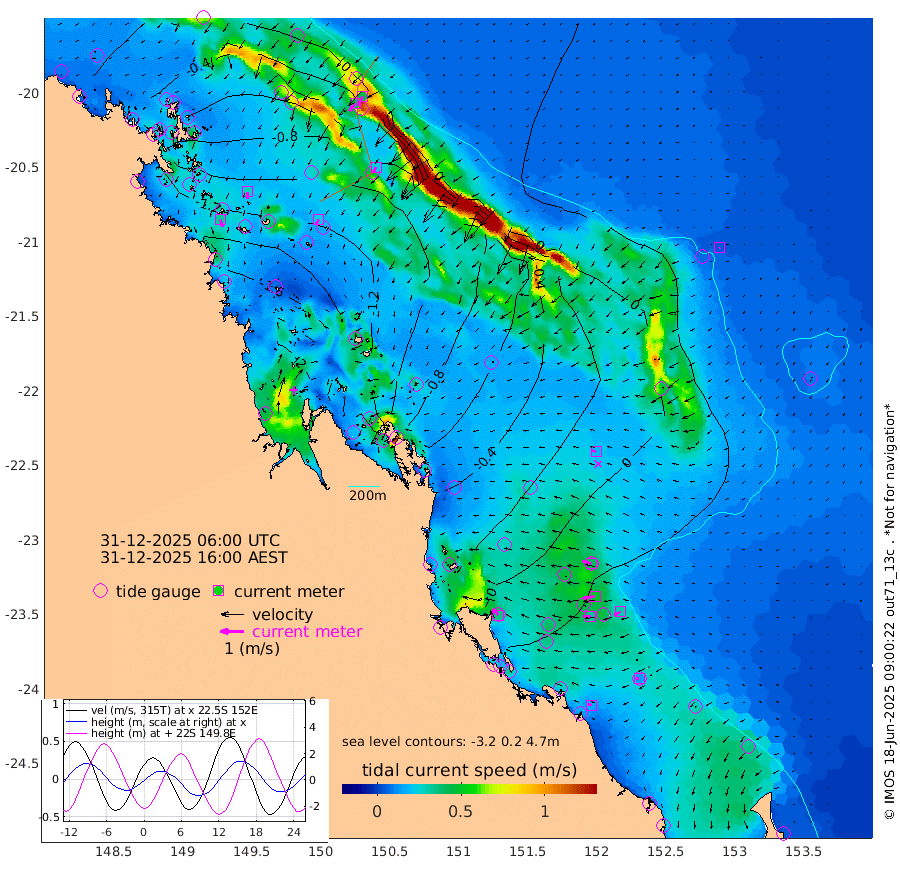 32cm/s 161T +10cm/s rms + 2cm/s 5T. Brampton I 18m 28cm/s 176T +9cm/s rms + 6cm/s 66T. Wigton I 38m 24cm/s -155T +7cm/s rms + 8cm/s 141T. Tern I 47m 44cm/s -153T +7cm/s rms + 12cm/s 54T. N Bugatti Rf 64m 39cm/s -143T +3cm/s rms + 13cm/s 178T. W Bugatti Rf 70m 23cm/s -150T +3cm/s rms + 3cm/s -130T. Creal Rf 69m 40cm/s -73T +7cm/s rms + 4cm/s 2T. North Rf 62m 36cm/s -43T +9cm/s rms + 2cm/s -56T. Cape Capricorn 26m 13cm/s -90T +5cm/s rms + 3cm/s 166T. L Musgrave I 42m 15cm/s -81T +9cm/s rms + 1cm/s -142T. Round Hill Hd 26m 4cm/s -142T +41cm/s rms + 48cm/s 116T. GBRELR 305m 18cm/s -80T +7cm/s rms + 6cm/s 123T. GBRCCH 92m 50cm/s -98T +8cm/s rms + 3cm/s -33T. GBRHIN 45m 33cm/s -93T +4cm/s rms + 2cm/s 41T. GBRHIS 46m 30cm/s -115T +16cm/s rms + 4cm/s -22T. GBROTE 59m -57cm Bell Cay -28cm Holbourne I -116cm Tern I -41cm Bugatti Rf -73cm Creal Rf -19cm White Tip I 12cm North Rf 14cm Rundle I 23cm L Musgrave I 16cm Saumarez Reef -11cm Kennedy Reef -3cm Unnamed Reef No. 2 -28cm Abbot Point -39cm Bowen -63cm Tideway Reef -50cm Hayman Island -89cm Square Reef -39cm Double Bay -62cm Molle Island -79cm Cid Harbour -51cm Hook Island -76cm Border Island -78cm Haslewood Island -76cm Shute Harbour -108cm Thomas Island -106cm Credlin Reef -121cm East Repulse Island -119cm Blacksmith Island -131cm Laguna Quays -115cm Carlisle Island (Off) -130cm St. Bees Island -122cm Scawfell Island -121cm Penrith Island -147cm Mackay Outer Harbour -155cm Hay Point -149cm Prudhoe Island -109cm Middle Island (Percy Isles) -42cm Gannet Cay 16cm Elusive Reef -228cm Mcewin Islet -112cm Mumford Island -143cm Osborn Island -147cm Marquis Island -126cm Reef Point -77cm High Peak Island -37cm Port Clinton -30cm Peaked Island 19cm Karamea Bank 1cm Johnson Patch - NW -11cm Rosslyn Bay -11cm Middle Island (Keppel Isles) -21cm Port Alma 21cm Heron Island 23cm One Tree Islet 20cm Polmaise Reef 4cm Tryon Island 21cm Rock Cod Shoal 11cm Gatcombe Head 0cm Gladstone 10cm South Trees (Storm Surge) 29cm Clews Point 25cm Round Hill Head 25cm Lady Elliot Island 26cm Breaksea Spit 31cm Bundaberg (Burnett Heads) 32cm Elliot Heads 16cm Waddy Point (Fraser Island)