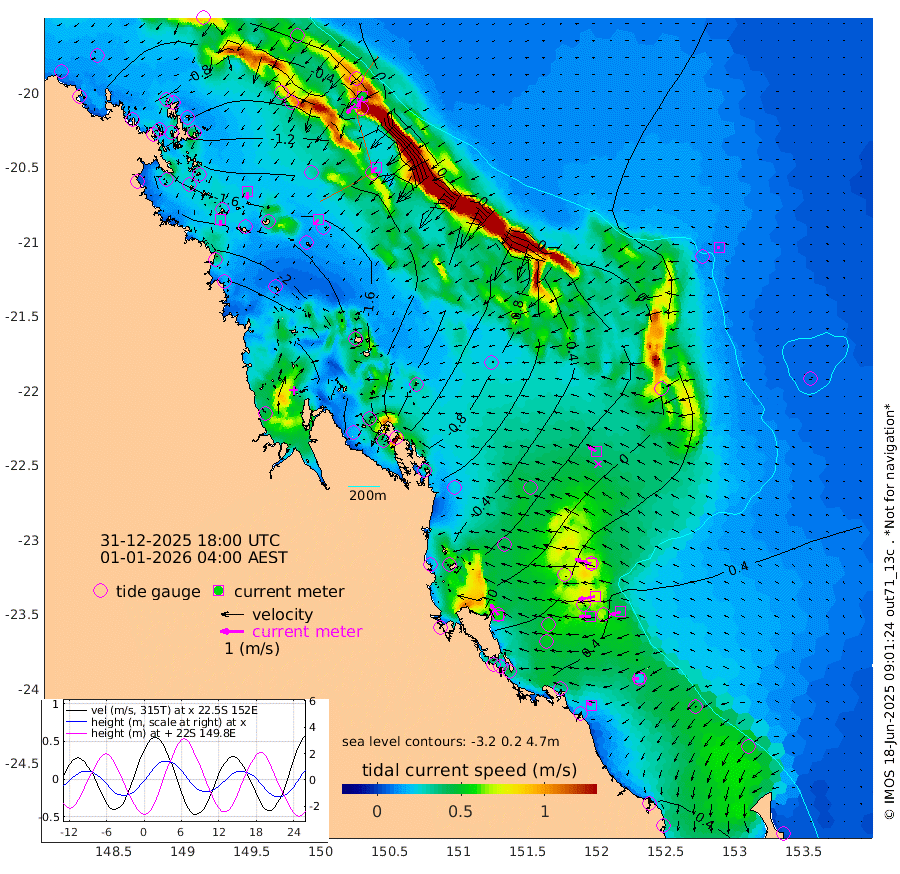 27cm/s -179T +10cm/s rms + 2cm/s 5T. Brampton I 18m 31cm/s -177T +9cm/s rms + 6cm/s 66T. Wigton I 38m 28cm/s -143T +7cm/s rms + 8cm/s 141T. Tern I 47m 50cm/s -153T +7cm/s rms + 12cm/s 54T. N Bugatti Rf 64m 53cm/s -140T +3cm/s rms + 13cm/s 178T. W Bugatti Rf 70m 25cm/s -143T +3cm/s rms + 3cm/s -130T. Creal Rf 69m 70cm/s -74T +7cm/s rms + 4cm/s 2T. North Rf 62m 56cm/s -36T +9cm/s rms + 2cm/s -56T. Cape Capricorn 26m 24cm/s -99T +5cm/s rms + 3cm/s 166T. L Musgrave I 42m 24cm/s -70T +9cm/s rms + 1cm/s -142T. Round Hill Hd 26m 9cm/s -89T +41cm/s rms + 48cm/s 116T. GBRELR 305m 38cm/s -63T +7cm/s rms + 6cm/s 123T. GBRCCH 92m 75cm/s -100T +8cm/s rms + 3cm/s -33T. GBRHIN 45m 47cm/s -91T +4cm/s rms + 2cm/s 41T. GBRHIS 46m 41cm/s -105T +16cm/s rms + 4cm/s -22T. GBROTE 59m -67cm Bell Cay -58cm Holbourne I -151cm Tern I -63cm Bugatti Rf -100cm Creal Rf -35cm White Tip I 30cm North Rf 30cm Rundle I 47cm L Musgrave I 24cm Saumarez Reef -33cm Kennedy Reef -15cm Unnamed Reef No. 2 -59cm Abbot Point -71cm Bowen -94cm Tideway Reef -78cm Hayman Island -127cm Square Reef -82cm Double Bay -114cm Molle Island -116cm Cid Harbour -82cm Hook Island -106cm Border Island -119cm Haslewood Island -112cm Shute Harbour -142cm Thomas Island -136cm Credlin Reef -161cm East Repulse Island -162cm Blacksmith Island -177cm Laguna Quays -158cm Carlisle Island (Off) -179cm St. Bees Island -168cm Scawfell Island -161cm Penrith Island -188cm Mackay Outer Harbour -196cm Hay Point -185cm Prudhoe Island -142cm Middle Island (Percy Isles) -52cm Gannet Cay 29cm Elusive Reef -275cm Mcewin Islet -139cm Mumford Island -171cm Osborn Island -179cm Marquis Island -155cm Reef Point -98cm High Peak Island -43cm Port Clinton -27cm Peaked Island 39cm Karamea Bank 11cm Johnson Patch - NW -5cm Rosslyn Bay -2cm Middle Island (Keppel Isles) -24cm Port Alma 36cm Heron Island 53cm One Tree Islet 40cm Polmaise Reef 26cm Tryon Island 40cm Rock Cod Shoal 18cm Gatcombe Head 5cm Gladstone 19cm South Trees (Storm Surge) 55cm Clews Point 47cm Round Hill Head 52cm Lady Elliot Island 59cm Breaksea Spit 45cm Bundaberg (Burnett Heads) 41cm Elliot Heads 49cm Waddy Point (Fraser Island)