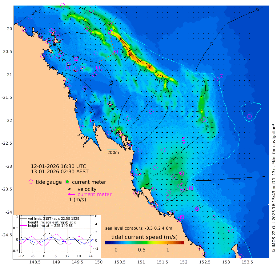 15cm/s -175T +10cm/s rms + 2cm/s 5T. Brampton I 18m 20cm/s -177T +9cm/s rms + 6cm/s 66T. Wigton I 38m 14cm/s -138T +7cm/s rms + 8cm/s 141T. Tern I 47m 24cm/s -151T +7cm/s rms + 12cm/s 54T. N Bugatti Rf 64m 24cm/s -131T +3cm/s rms + 13cm/s 178T. W Bugatti Rf 70m 12cm/s -150T +3cm/s rms + 3cm/s -130T. Creal Rf 69m 38cm/s -75T +7cm/s rms + 4cm/s 2T. North Rf 62m 31cm/s -35T +9cm/s rms + 2cm/s -56T. Cape Capricorn 26m 10cm/s -91T +5cm/s rms + 3cm/s 166T. L Musgrave I 42m 12cm/s -66T +9cm/s rms + 1cm/s -142T. Round Hill Hd 26m 5cm/s -79T +41cm/s rms + 48cm/s 116T. GBRELR 305m 20cm/s -60T +7cm/s rms + 6cm/s 123T. GBRCCH 92m 38cm/s -102T +8cm/s rms + 3cm/s -33T. GBRHIN 45m 22cm/s -92T +4cm/s rms + 2cm/s 41T. GBRHIS 46m 19cm/s -109T +16cm/s rms + 4cm/s -22T. GBROTE 59m -30cm Bell Cay -52cm Holbourne I -80cm Tern I -42cm Bugatti Rf -56cm Creal Rf -31cm White Tip I 17cm North Rf 20cm Rundle I 25cm L Musgrave I 5cm Saumarez Reef -32cm Kennedy Reef -28cm Unnamed Reef No. 2 -53cm Abbot Point -58cm Bowen -66cm Tideway Reef -52cm Hayman Island -78cm Square Reef -70cm Double Bay -80cm Molle Island -66cm Cid Harbour -61cm Hook Island -62cm Border Island -71cm Haslewood Island -71cm Shute Harbour -82cm Thomas Island -76cm Credlin Reef -92cm East Repulse Island -77cm Blacksmith Island -96cm Laguna Quays -88cm Carlisle Island (Off) -84cm St. Bees Island -74cm Scawfell Island -74cm Penrith Island -94cm Mackay Outer Harbour -96cm Hay Point -99cm Prudhoe Island -63cm Middle Island (Percy Isles) -18cm Gannet Cay 3cm Elusive Reef -110cm Mcewin Islet -49cm Mumford Island -58cm Osborn Island -58cm Marquis Island -57cm Reef Point -42cm High Peak Island -18cm Port Clinton -12cm Peaked Island 17cm Karamea Bank 15cm Johnson Patch - NW 5cm Rosslyn Bay 3cm Middle Island (Keppel Isles) 0cm Port Alma 22cm Heron Island 31cm One Tree Islet 26cm Polmaise Reef 20cm Tryon Island 18cm Rock Cod Shoal 17cm Gatcombe Head 14cm Gladstone 19cm South Trees (Storm Surge) 33cm Clews Point 29cm Round Hill Head 27cm Lady Elliot Island 34cm Breaksea Spit 28cm Bundaberg (Burnett Heads) 33cm Elliot Heads 27cm Waddy Point (Fraser Island)