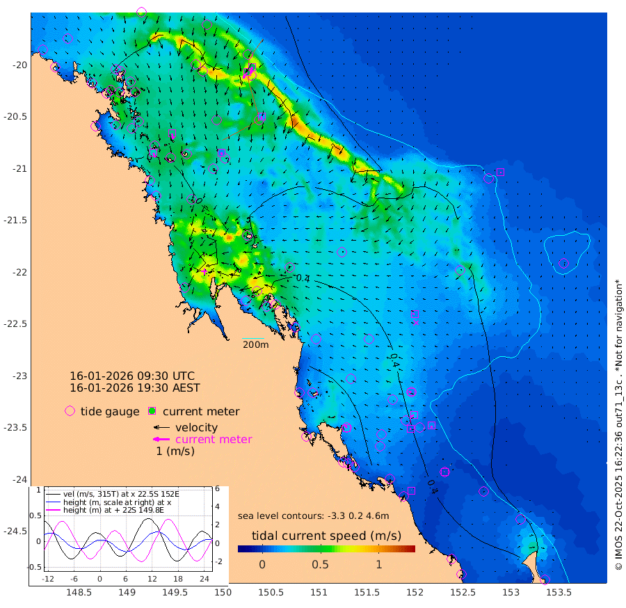 29cm/s 159T +10cm/s rms + 2cm/s 5T. Brampton I 18m 35cm/s 168T +9cm/s rms + 6cm/s 66T. Wigton I 38m 13cm/s -172T +7cm/s rms + 8cm/s 141T. Tern I 47m 41cm/s -165T +7cm/s rms + 12cm/s 54T. N Bugatti Rf 64m 44cm/s -152T +3cm/s rms + 13cm/s 178T. W Bugatti Rf 70m 17cm/s -177T +3cm/s rms + 3cm/s -130T. Creal Rf 69m 12cm/s -74T +7cm/s rms + 4cm/s 2T. North Rf 62m 19cm/s -27T +9cm/s rms + 2cm/s -56T. Cape Capricorn 26m 1cm/s 57T +5cm/s rms + 3cm/s 166T. L Musgrave I 42m 4cm/s -44T +9cm/s rms + 1cm/s -142T. Round Hill Hd 26m 5cm/s 168T +41cm/s rms + 48cm/s 116T. GBRELR 305m 11cm/s -79T +7cm/s rms + 6cm/s 123T. GBRCCH 92m 19cm/s -122T +8cm/s rms + 3cm/s -33T. GBRHIN 45m 7cm/s -96T +4cm/s rms + 2cm/s 41T. GBRHIS 46m 11cm/s -161T +16cm/s rms + 4cm/s -22T. GBROTE 59m 33cm Bell Cay 18cm Holbourne I 21cm Tern I 11cm Bugatti Rf 12cm Creal Rf 11cm White Tip I 30cm North Rf 51cm Rundle I 18cm L Musgrave I 13cm Saumarez Reef 28cm Kennedy Reef 17cm Unnamed Reef No. 2 18cm Abbot Point 16cm Bowen 4cm Tideway Reef 14cm Hayman Island 9cm Square Reef 3cm Double Bay 6cm Molle Island 14cm Cid Harbour 7cm Hook Island 9cm Border Island 6cm Haslewood Island 9cm Shute Harbour 2cm Thomas Island 9cm Credlin Reef 1cm East Repulse Island 7cm Blacksmith Island -2cm Laguna Quays 6cm Carlisle Island (Off) 0cm St. Bees Island 12cm Scawfell Island 19cm Penrith Island 5cm Mackay Outer Harbour 9cm Hay Point 11cm Prudhoe Island 37cm Middle Island (Percy Isles) 34cm Gannet Cay 4cm Elusive Reef -18cm Mcewin Islet 66cm Mumford Island 56cm Osborn Island 50cm Marquis Island 49cm Reef Point 39cm High Peak Island 53cm Port Clinton 58cm Peaked Island 33cm Karamea Bank 45cm Johnson Patch - NW 62cm Rosslyn Bay 62cm Middle Island (Keppel Isles) 71cm Port Alma 31cm Heron Island 36cm One Tree Islet 43cm Polmaise Reef 31cm Tryon Island 38cm Rock Cod Shoal 49cm Gatcombe Head 57cm Gladstone 56cm South Trees (Storm Surge) 43cm Clews Point 33cm Round Hill Head 13cm Lady Elliot Island 9cm Breaksea Spit 38cm Bundaberg (Burnett Heads) 42cm Elliot Heads 2cm Waddy Point (Fraser Island)