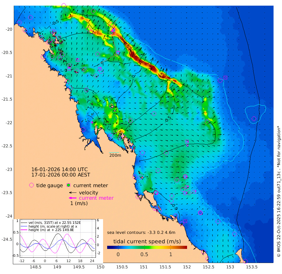 25cm/s -3T +10cm/s rms + 2cm/s 5T. Brampton I 18m 28cm/s -7T +9cm/s rms + 6cm/s 66T. Wigton I 38m 18cm/s 38T +7cm/s rms + 8cm/s 141T. Tern I 47m 34cm/s 14T +7cm/s rms + 12cm/s 54T. N Bugatti Rf 64m 48cm/s 36T +3cm/s rms + 13cm/s 178T. W Bugatti Rf 70m 22cm/s 22T +3cm/s rms + 3cm/s -130T. Creal Rf 69m 24cm/s 88T +7cm/s rms + 4cm/s 2T. North Rf 62m 24cm/s 142T +9cm/s rms + 2cm/s -56T. Cape Capricorn 26m 7cm/s 30T +5cm/s rms + 3cm/s 166T. L Musgrave I 42m 5cm/s 59T +9cm/s rms + 1cm/s -142T. Round Hill Hd 26m 4cm/s 70T +41cm/s rms + 48cm/s 116T. GBRELR 305m 25cm/s 102T +7cm/s rms + 6cm/s 123T. GBRCCH 92m 31cm/s 72T +8cm/s rms + 3cm/s -33T. GBRHIN 45m 20cm/s 82T +4cm/s rms + 2cm/s 41T. GBRHIS 46m 22cm/s 62T +16cm/s rms + 4cm/s -22T. GBROTE 59m -42cm Bell Cay -58cm Holbourne I -11cm Tern I -46cm Bugatti Rf -27cm Creal Rf -60cm White Tip I -78cm North Rf -88cm Rundle I -71cm L Musgrave I -59cm Saumarez Reef -68cm Kennedy Reef -71cm Unnamed Reef No. 2 -61cm Abbot Point -55cm Bowen -35cm Tideway Reef -52cm Hayman Island -32cm Square Reef -44cm Double Bay -52cm Molle Island -39cm Cid Harbour -41cm Hook Island -35cm Border Island -27cm Haslewood Island -32cm Shute Harbour -8cm Thomas Island -22cm Credlin Reef -11cm East Repulse Island -16cm Blacksmith Island 4cm Laguna Quays -14cm Carlisle Island (Off) -11cm St. Bees Island -17cm Scawfell Island -16cm Penrith Island 9cm Mackay Outer Harbour 12cm Hay Point 19cm Prudhoe Island -14cm Middle Island (Percy Isles) -40cm Gannet Cay -68cm Elusive Reef 72cm Mcewin Islet -41cm Mumford Island -26cm Osborn Island -23cm Marquis Island -28cm Reef Point -34cm High Peak Island -57cm Port Clinton -65cm Peaked Island -78cm Karamea Bank -77cm Johnson Patch - NW -82cm Rosslyn Bay -83cm Middle Island (Keppel Isles) -80cm Port Alma -81cm Heron Island -89cm One Tree Islet -82cm Polmaise Reef -82cm Tryon Island -86cm Rock Cod Shoal -78cm Gatcombe Head -80cm Gladstone -84cm South Trees (Storm Surge) -85cm Clews Point -78cm Round Hill Head -68cm Lady Elliot Island -73cm Breaksea Spit -82cm Bundaberg (Burnett Heads) -89cm Elliot Heads -55cm Waddy Point (Fraser Island)